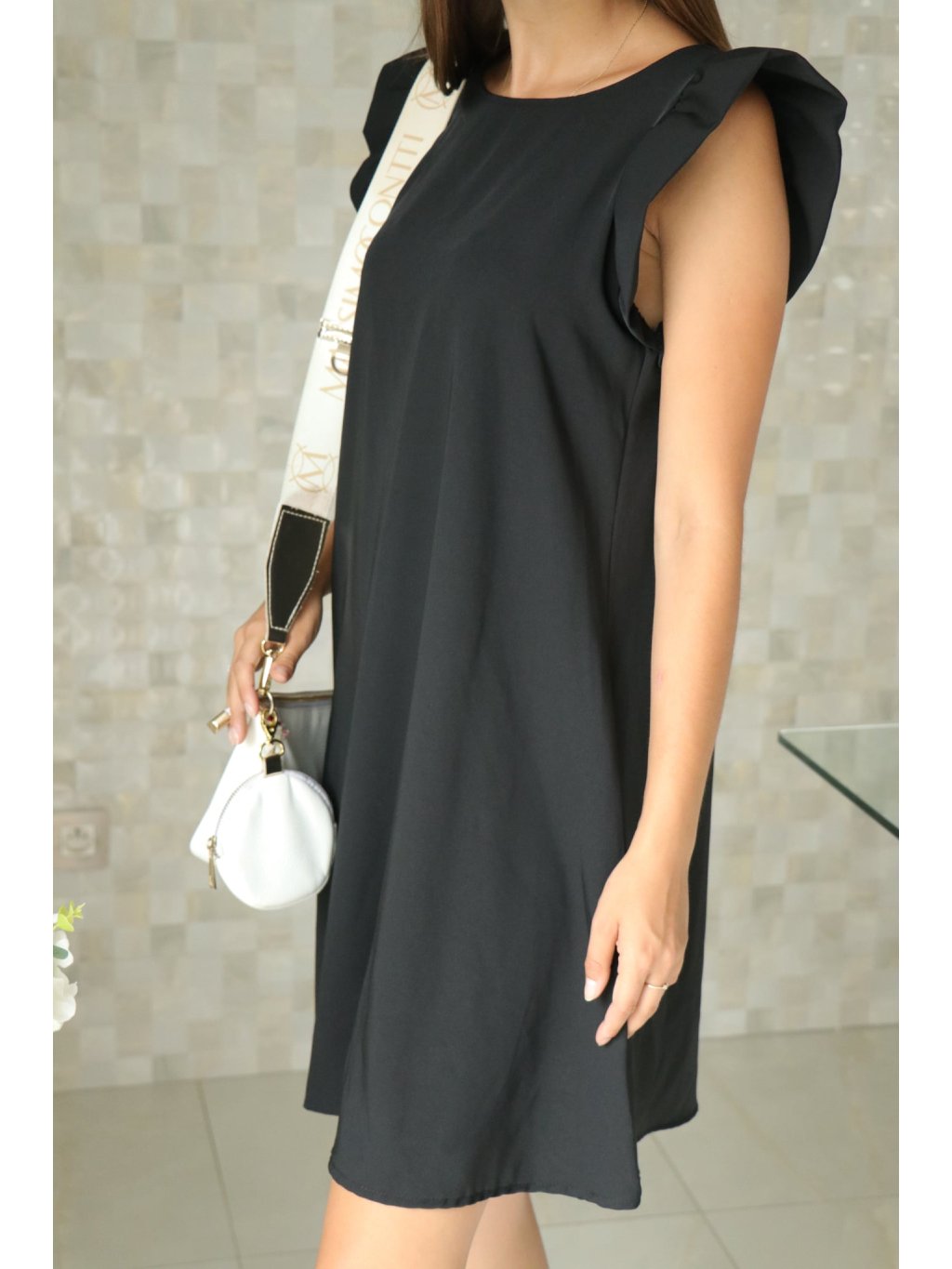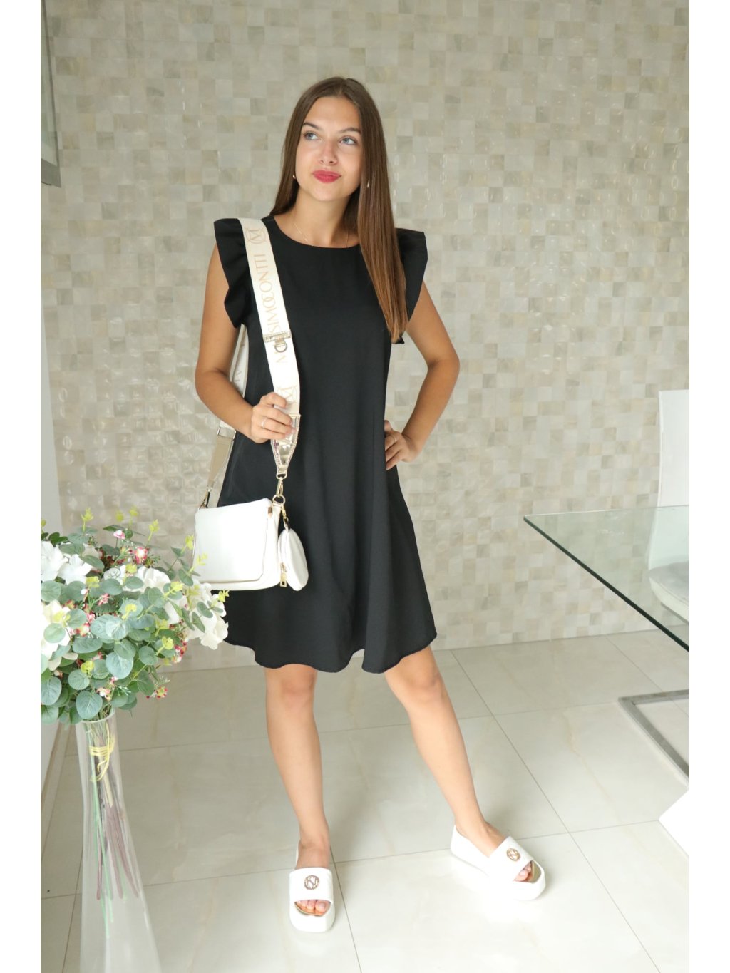 Áčkové šaty s volánkem na rukávu v černé barvě vel. UNI