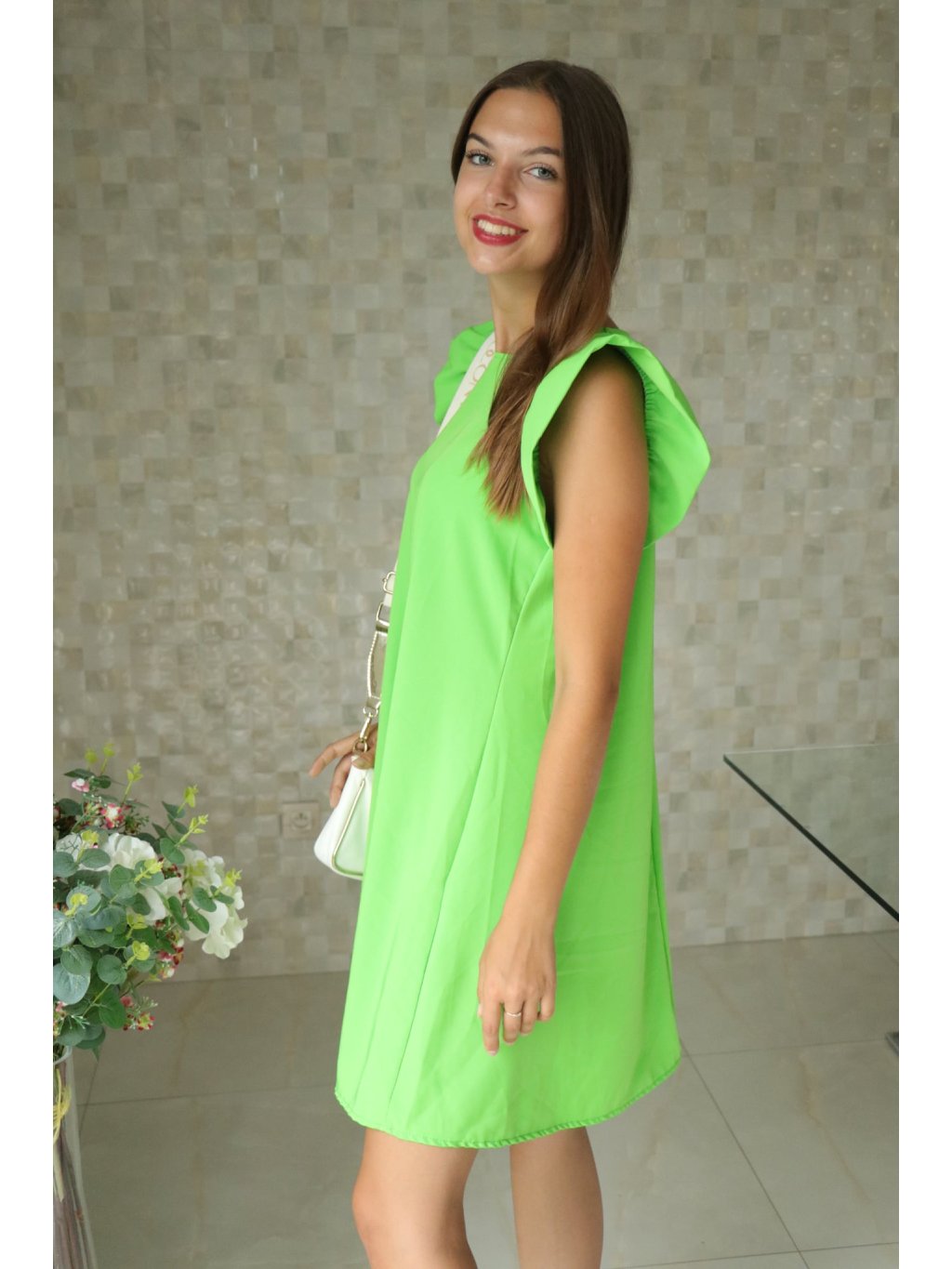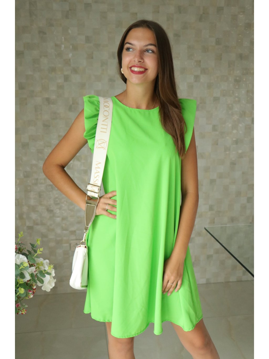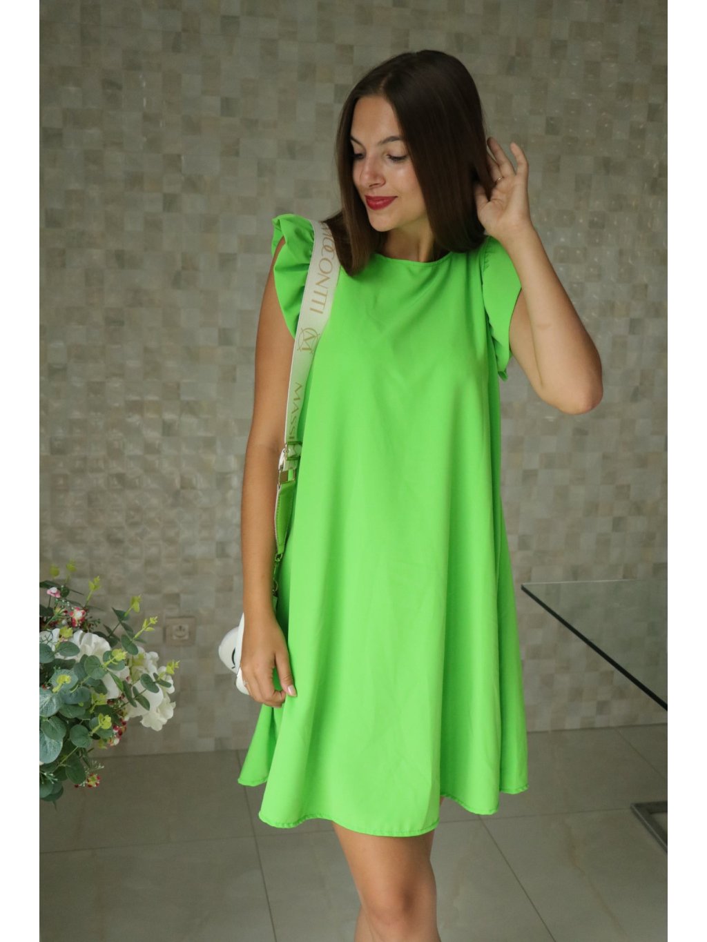 Áčkové šaty s volánkem na rukávu v zelené barvě vel. UNI
