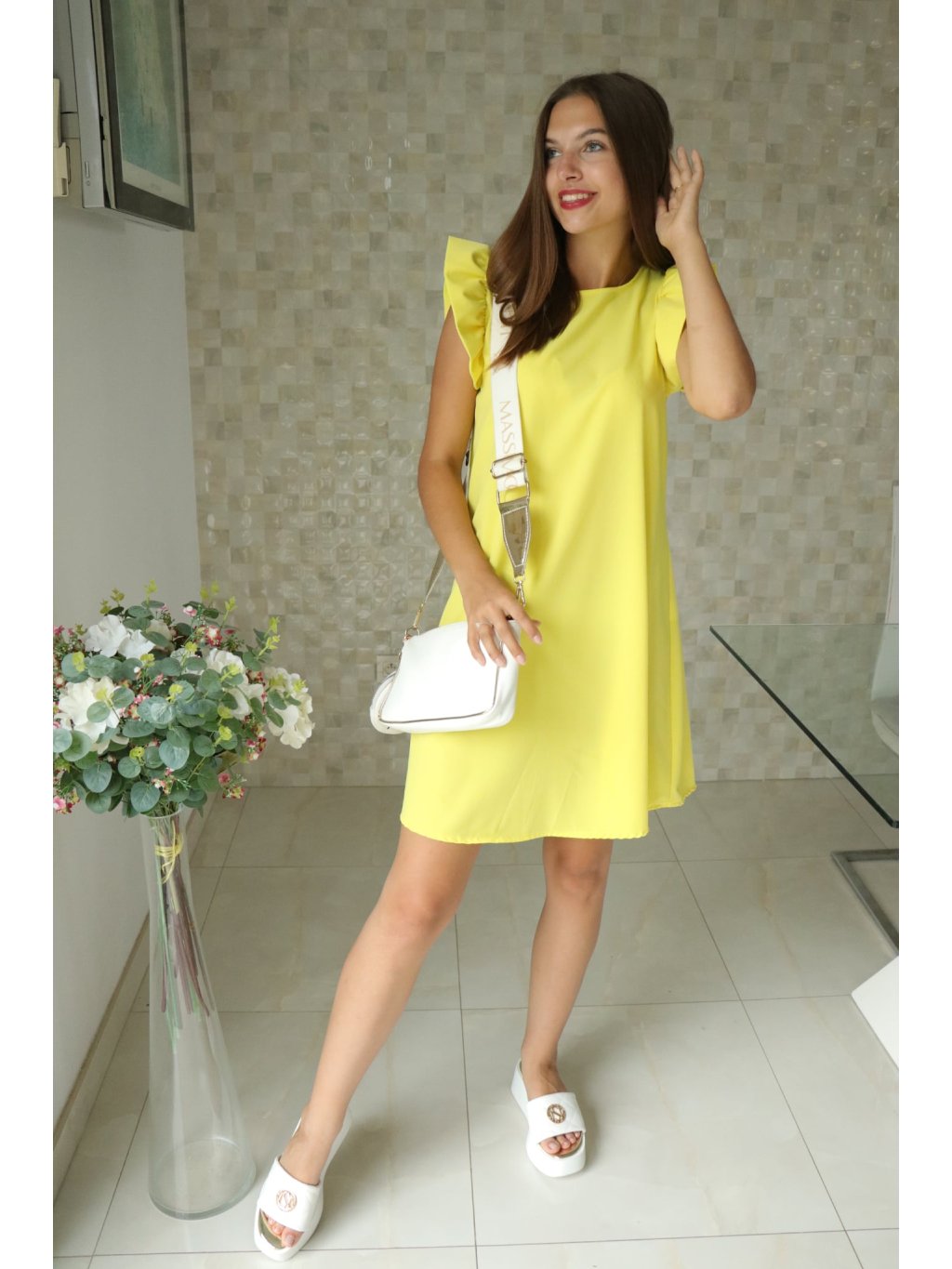 👗 **Áčkové šaty s volánkem na rukávu ve žluté barvě**