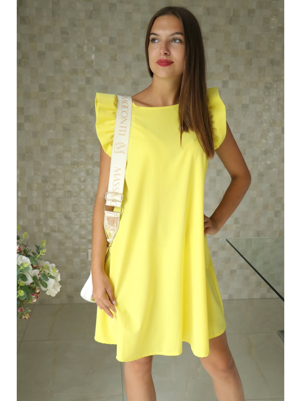 Áčkové šaty s volánkem na rukávu v žluté barvě vel. UNI