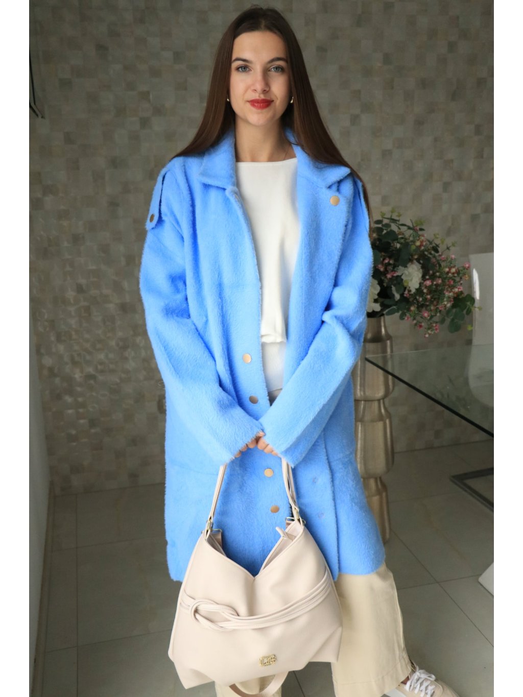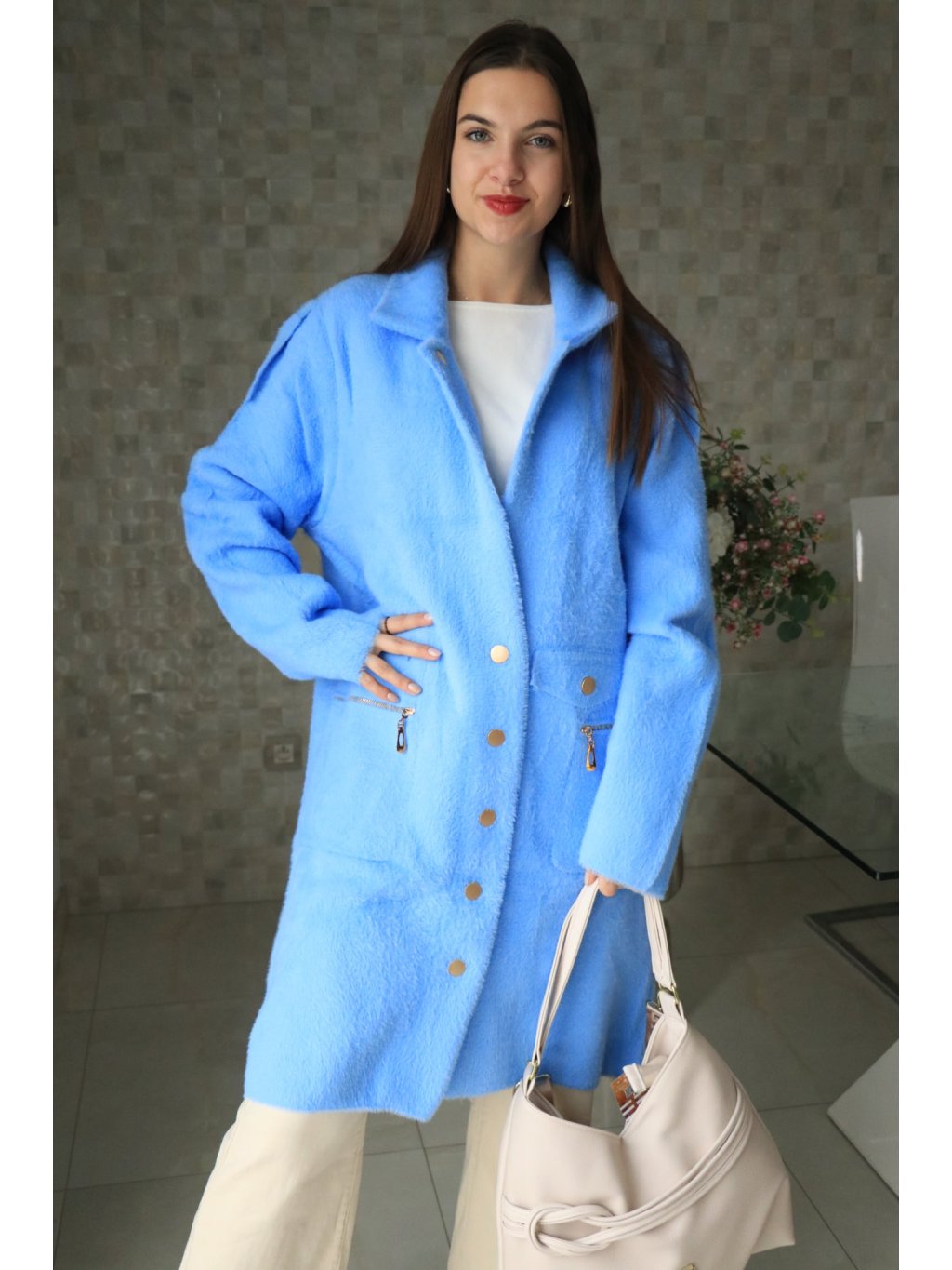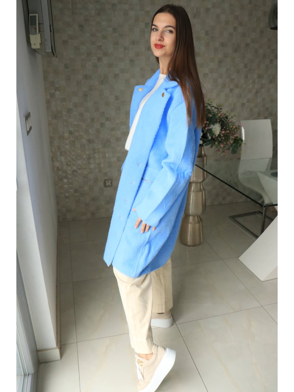 💙 Alpakový modrý delší kabátek – jarní kolekce 💙