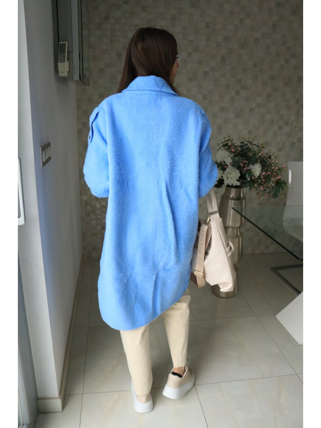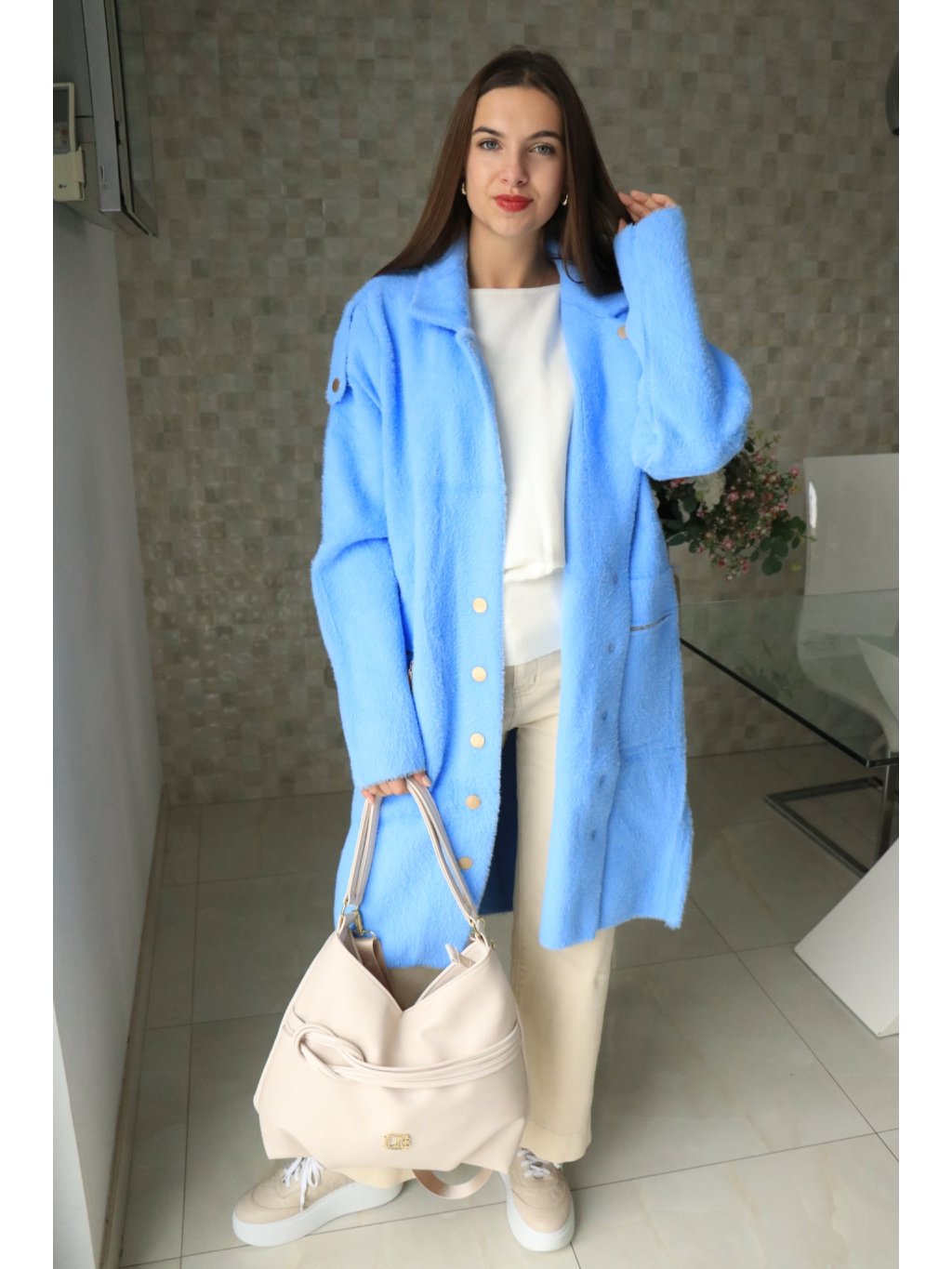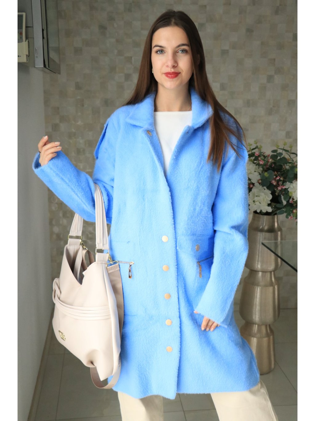 💙 Alpakový modrý delší kabátek – jarní kolekce 💙