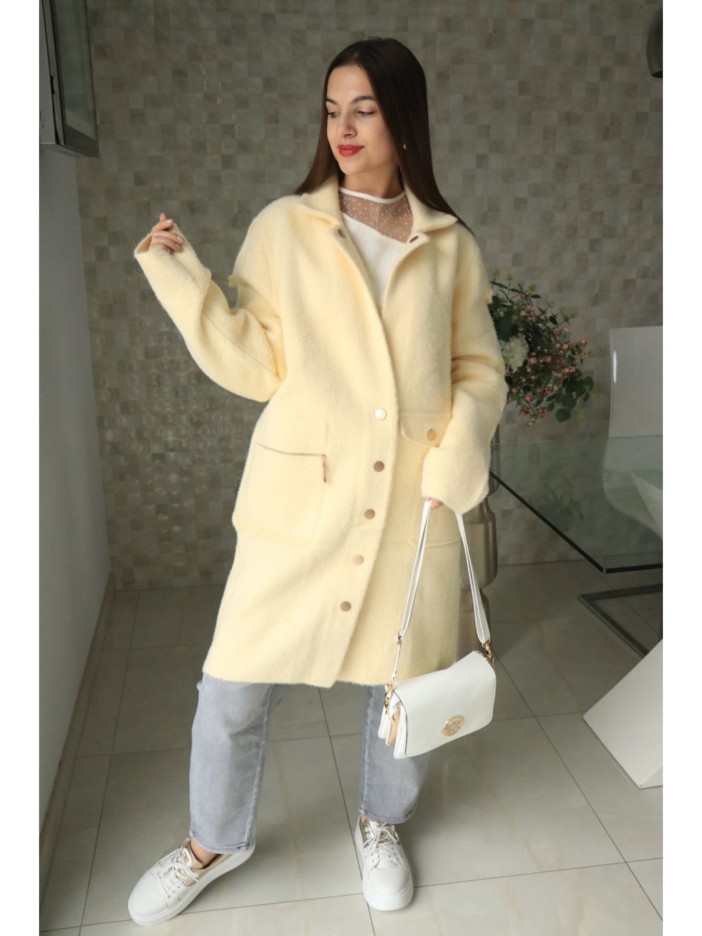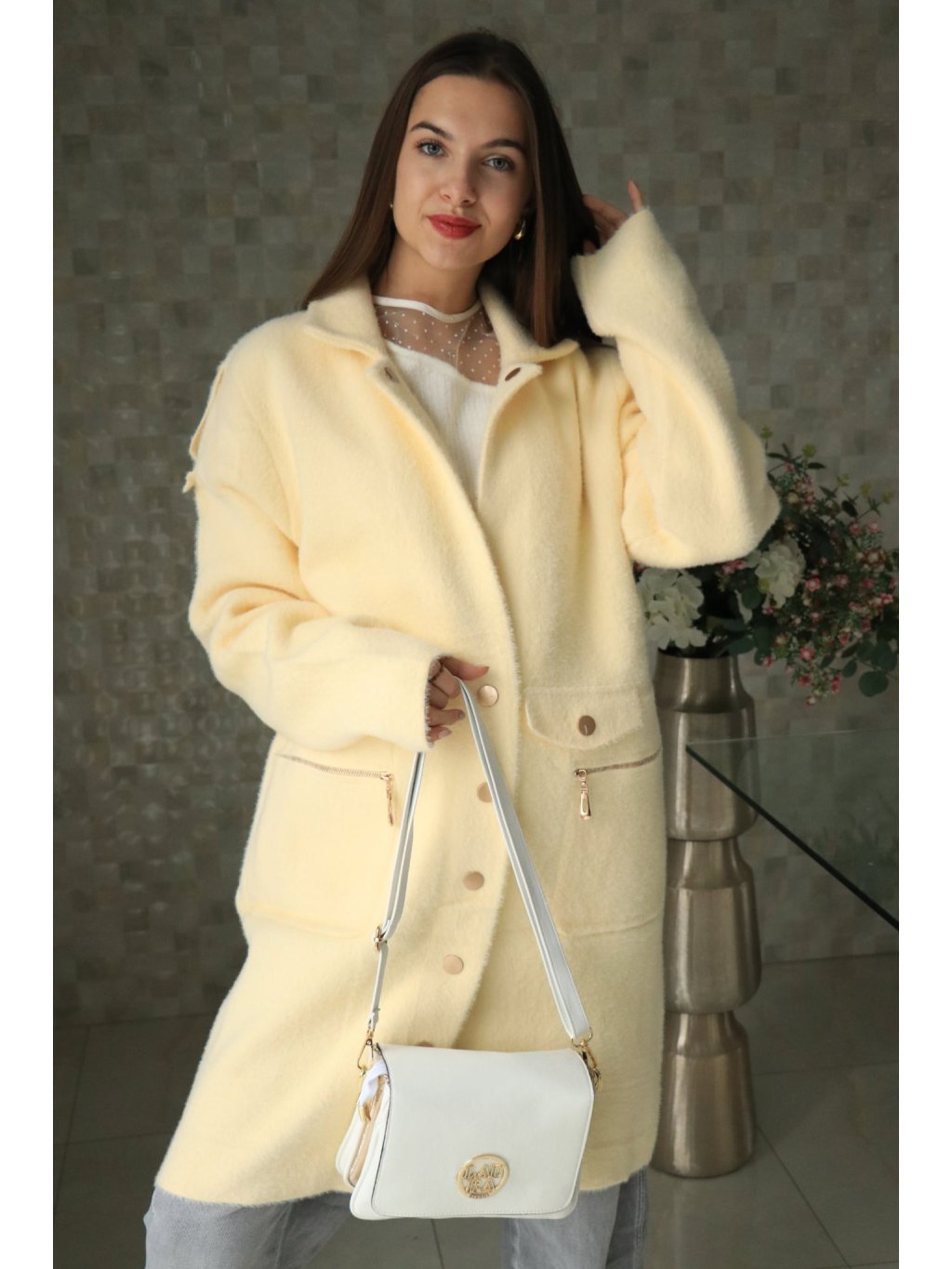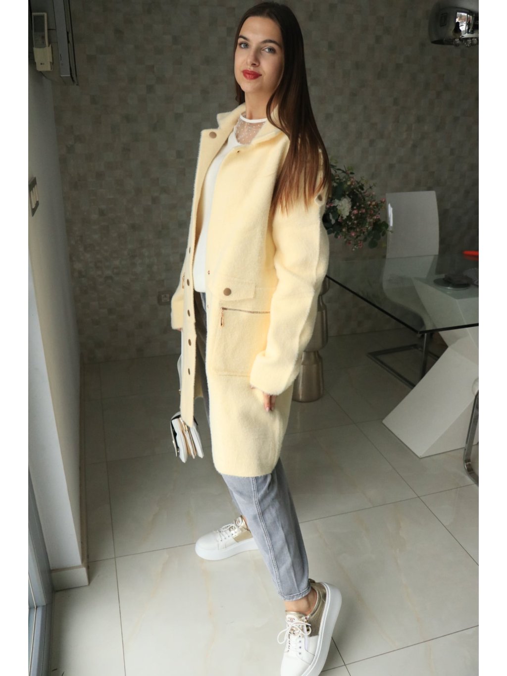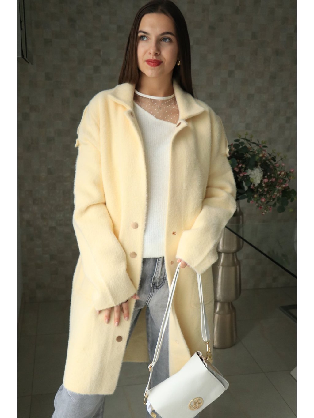 💛 Alpakový žlutý delší kabátek – jarní kolekce 💛