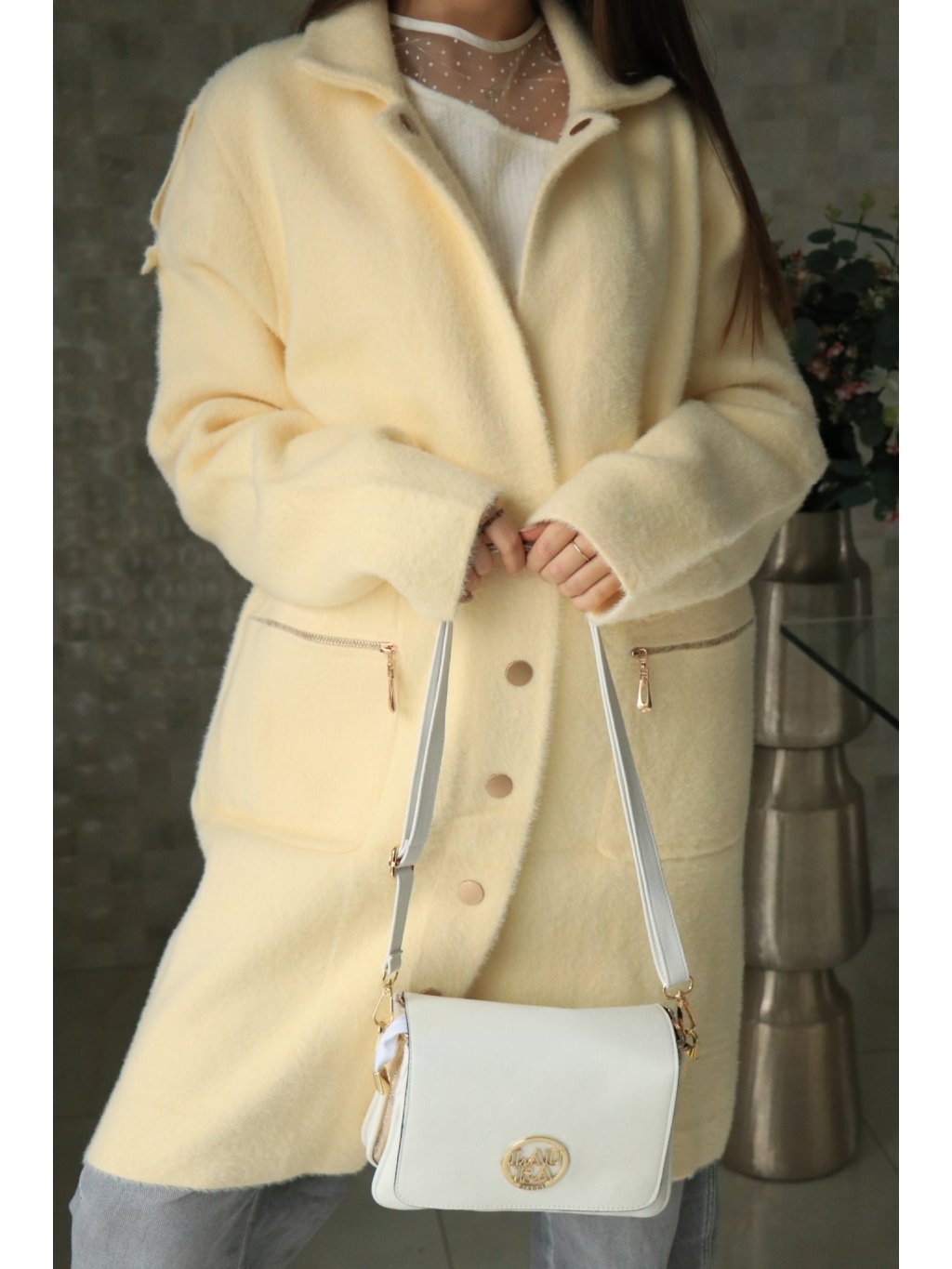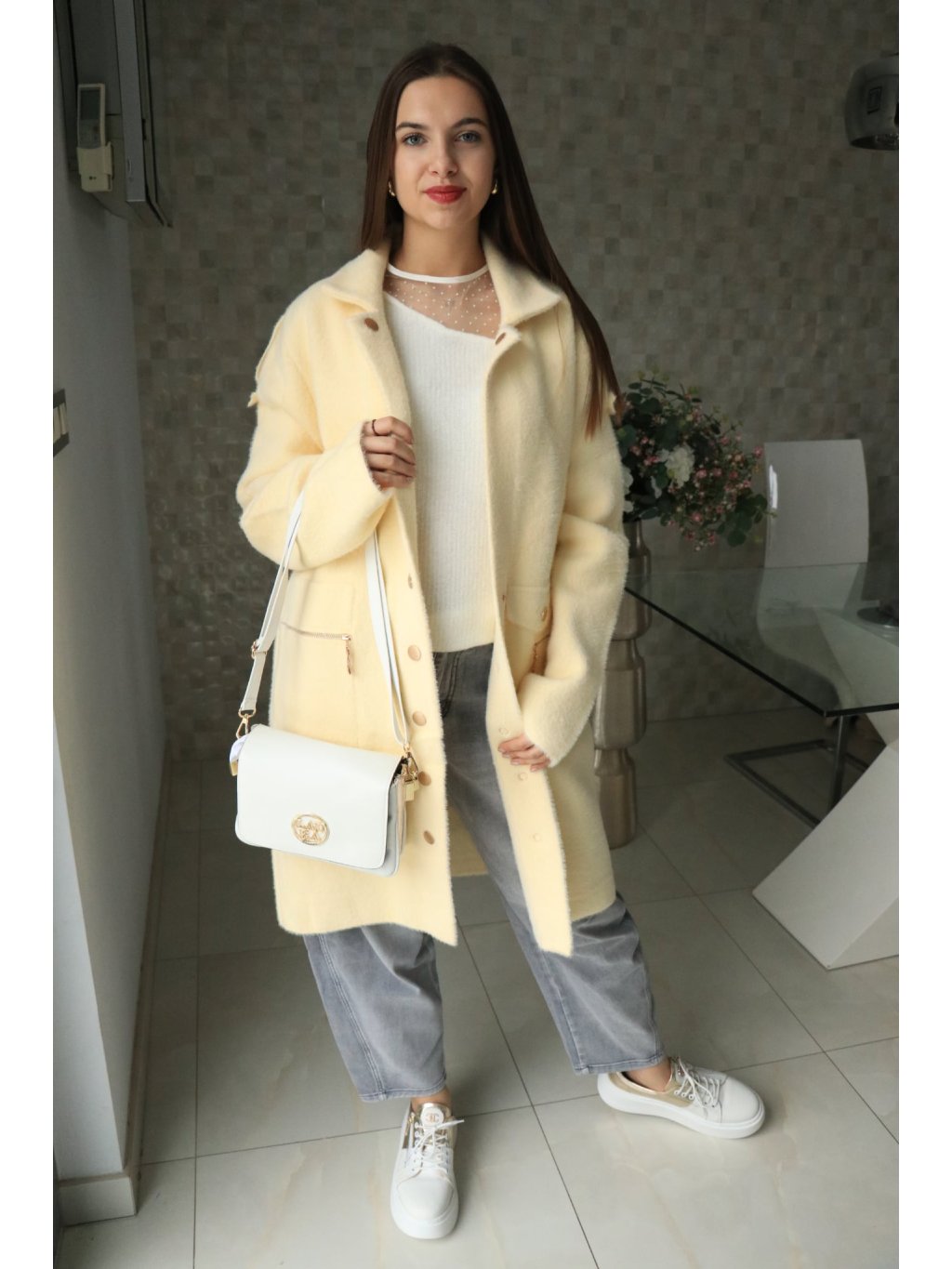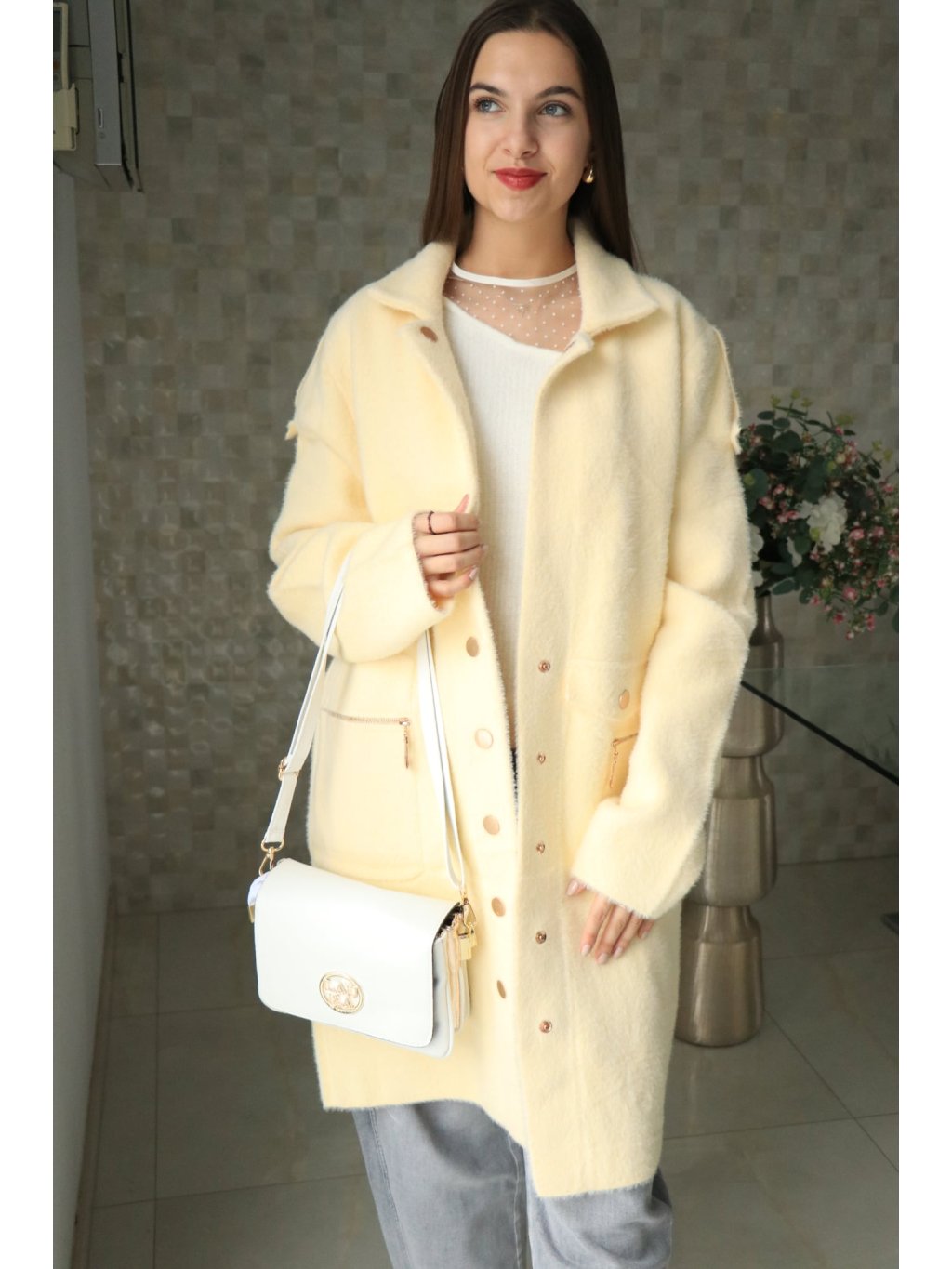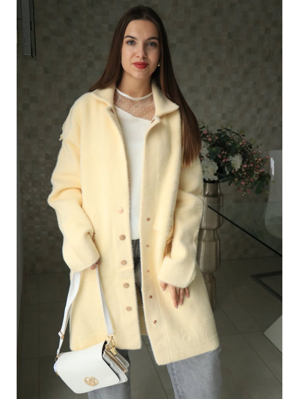 💛 Alpakový žlutý delší kabátek – jarní kolekce 💛
