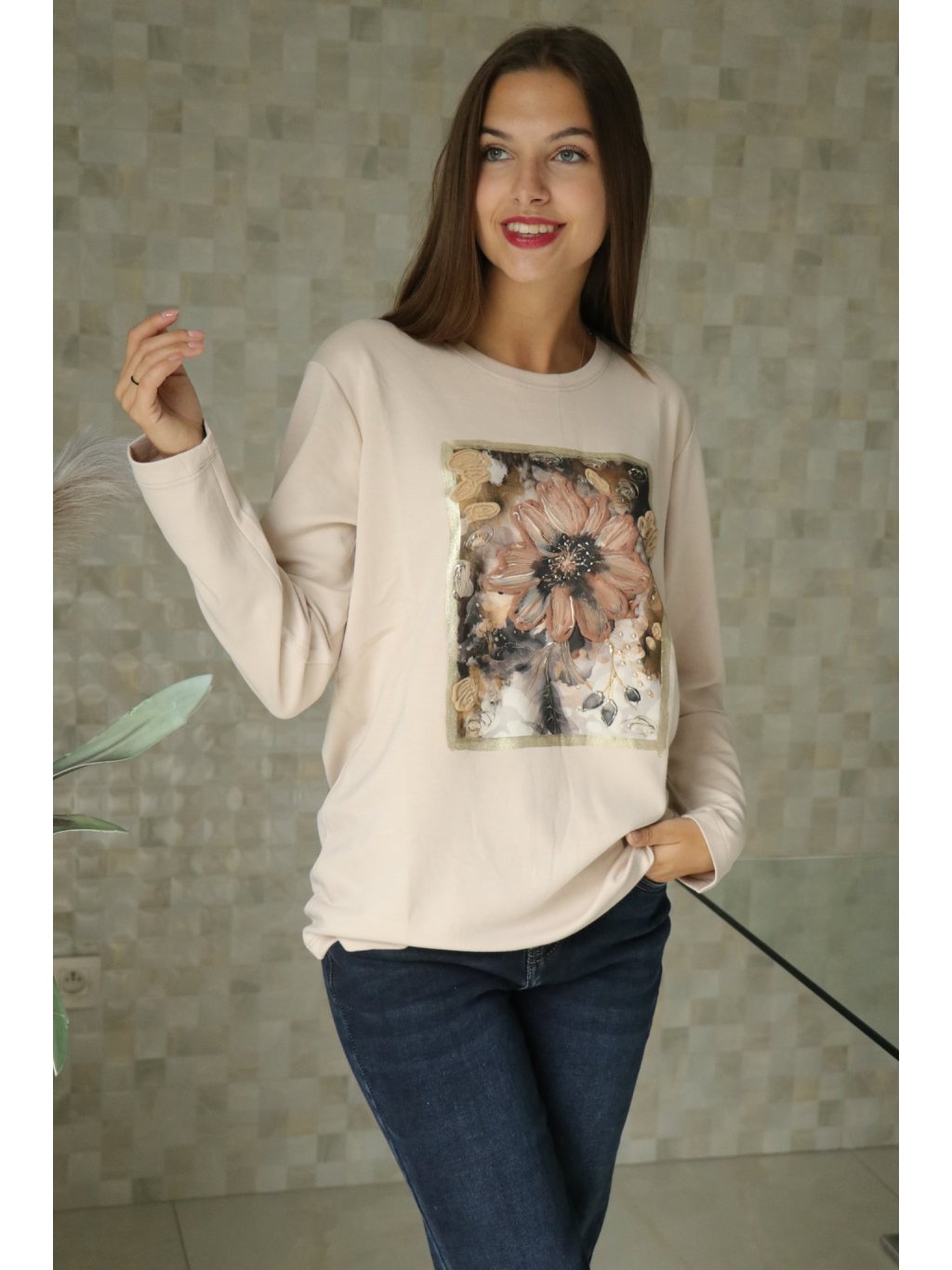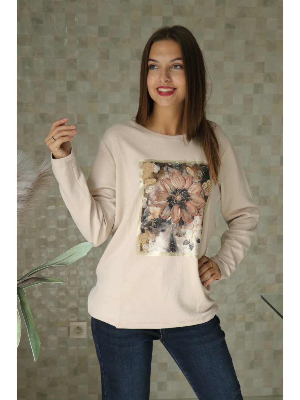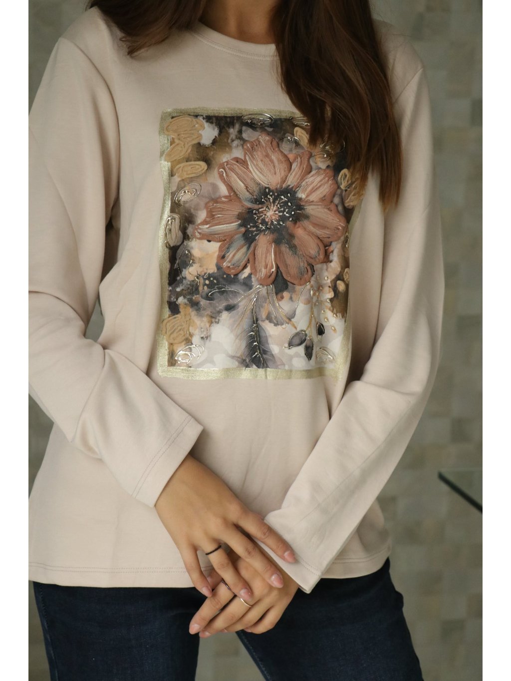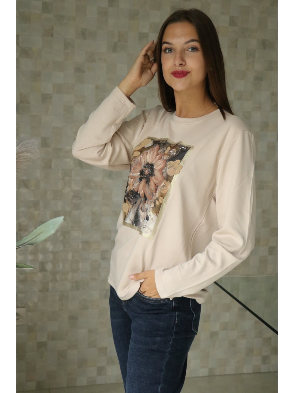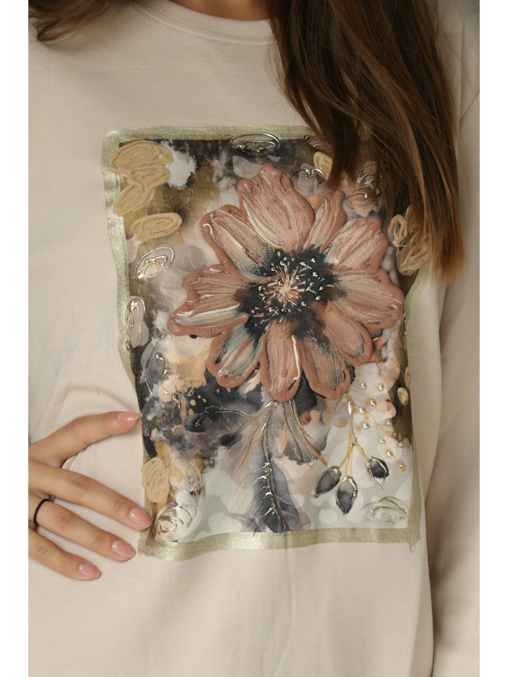 Béžová halenka s 3D kytkou od vel. S-L