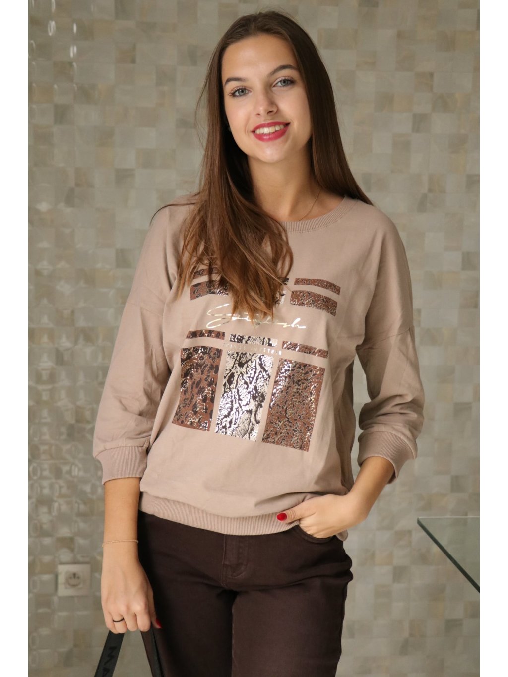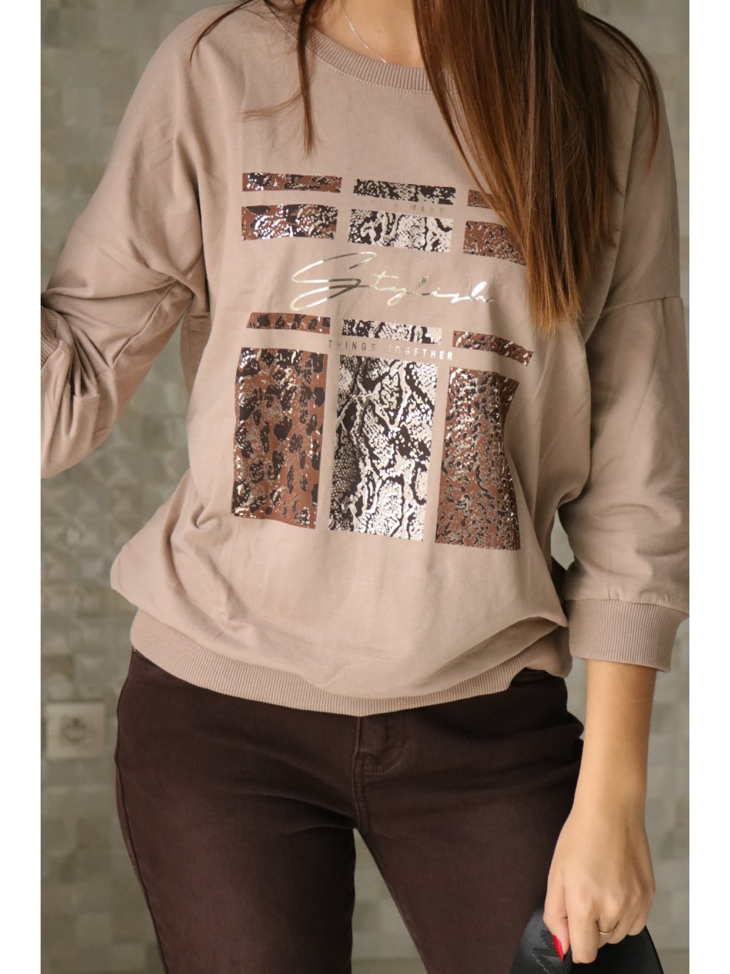 #🤎☕ Béžová halenka s hnědým leopardím vzorem
