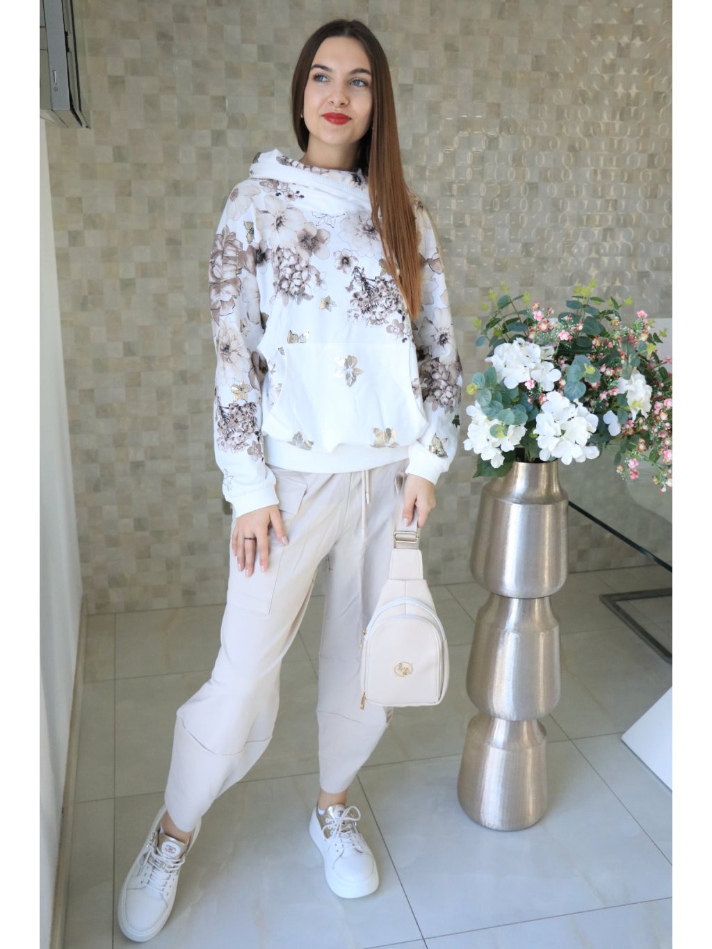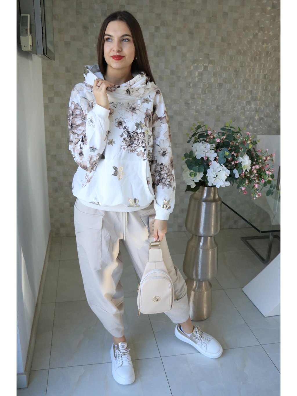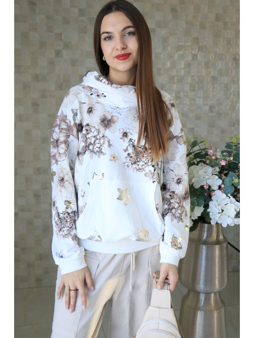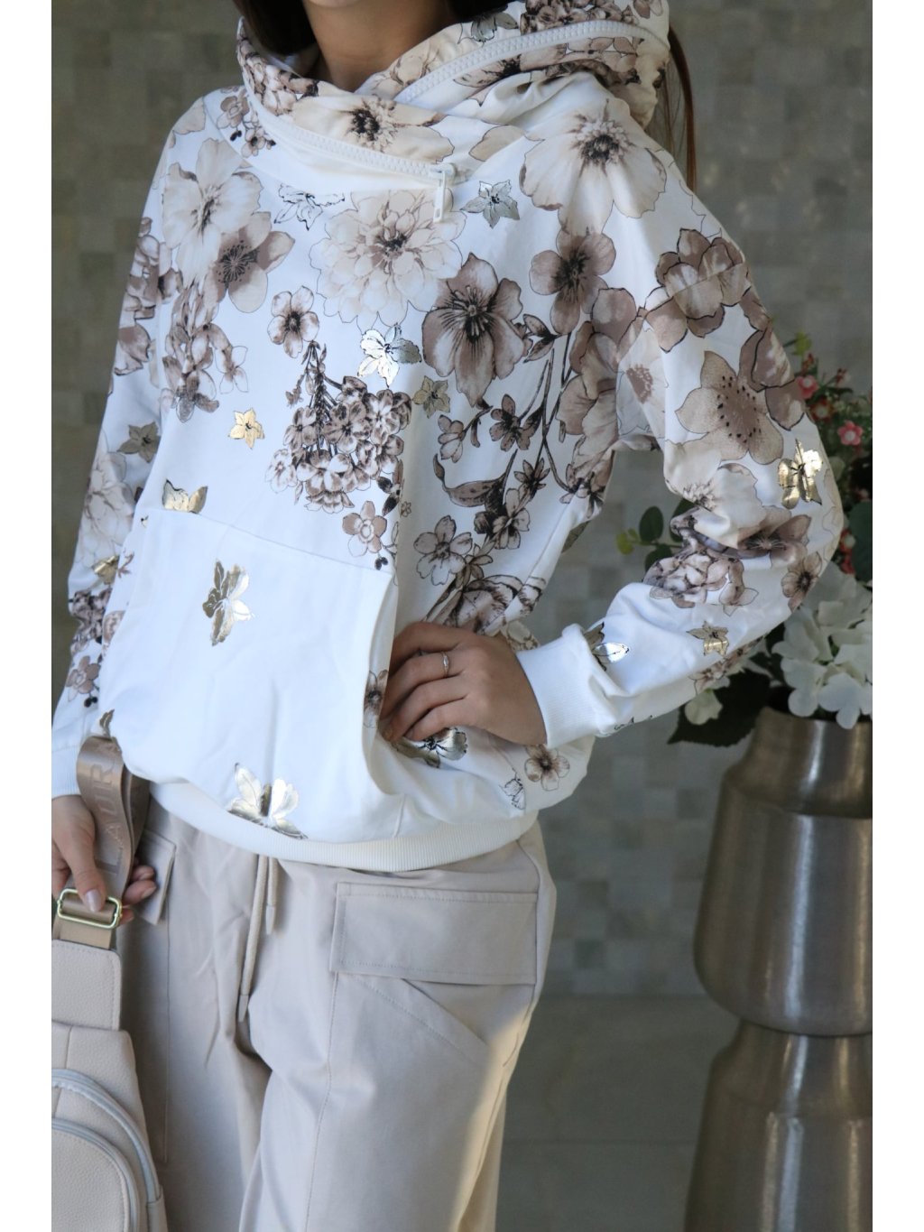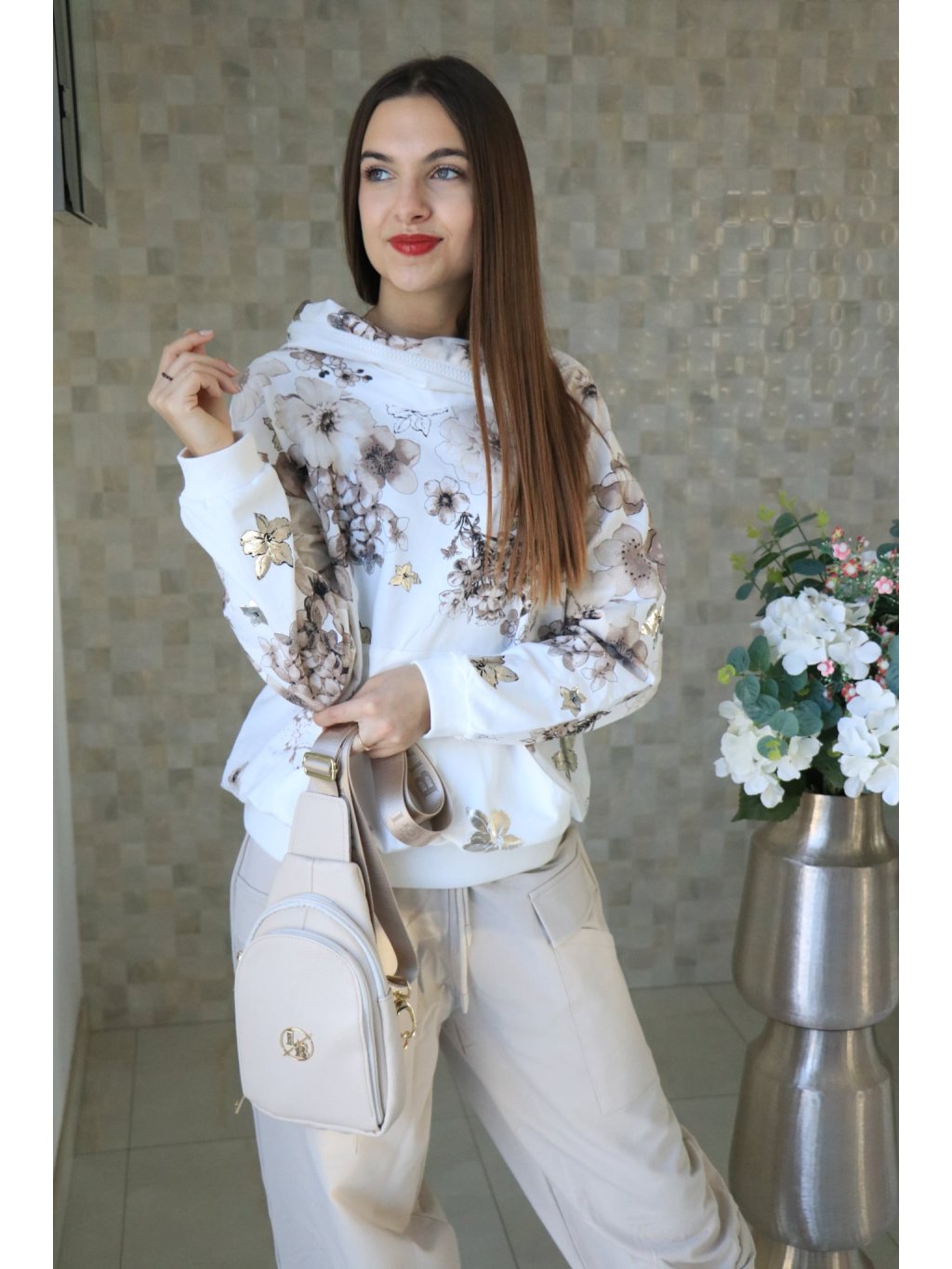 Béžová mikina s kapucí a květy vel. S/M, L/XL