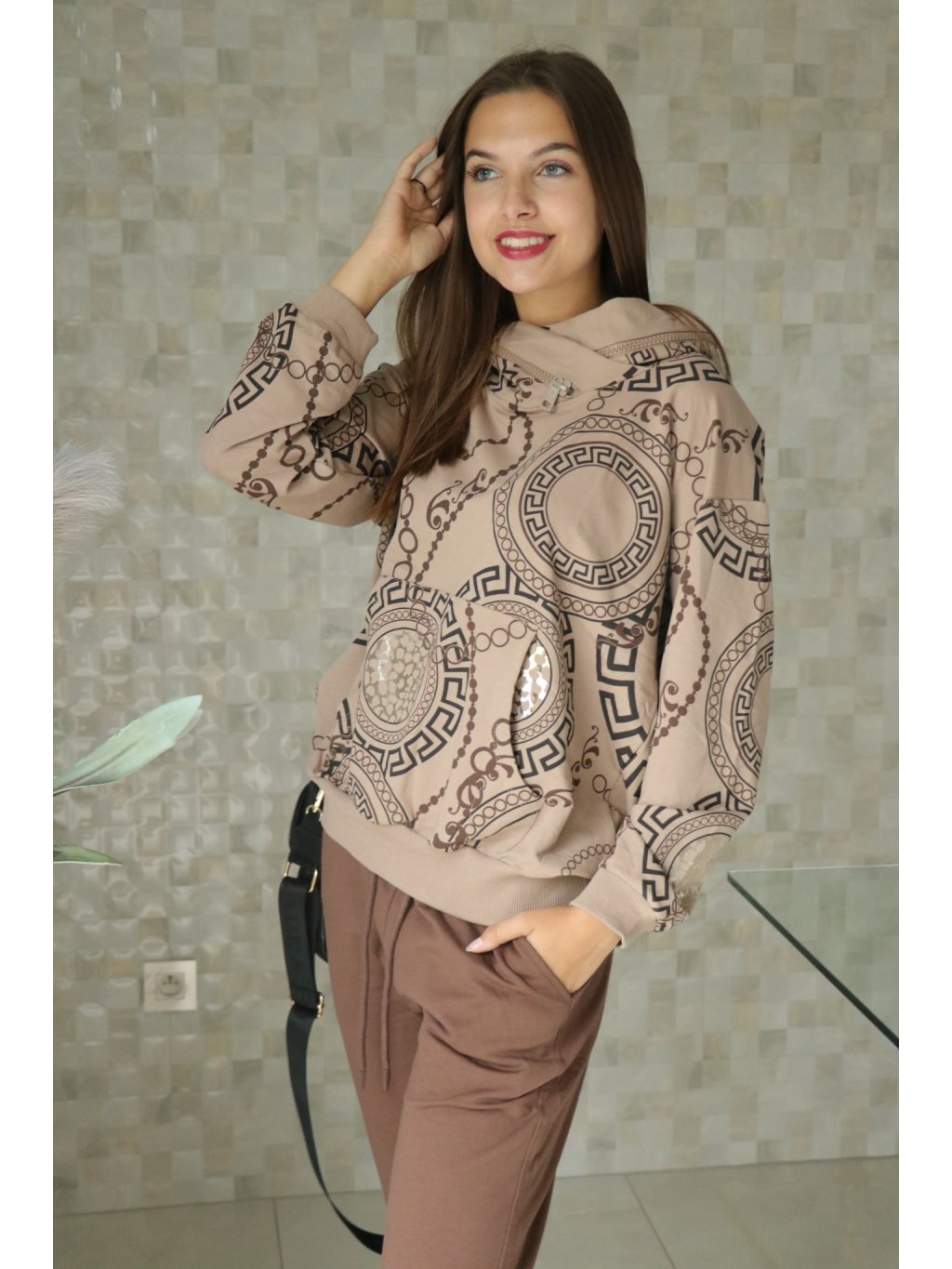 Elegantní mikina s kapucí a zipem zdobená ornamenty