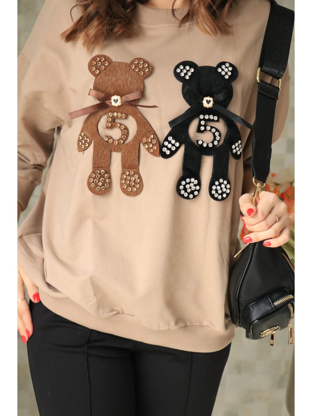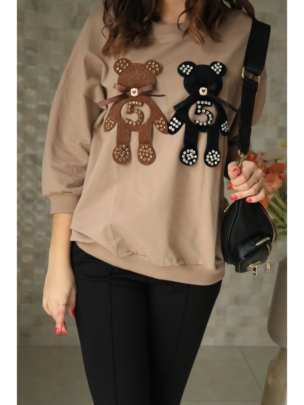 🧸 Stylová bavlněná mikina s hravým medvídkovým motivem a třpytivými kamínky pro jedinečný look