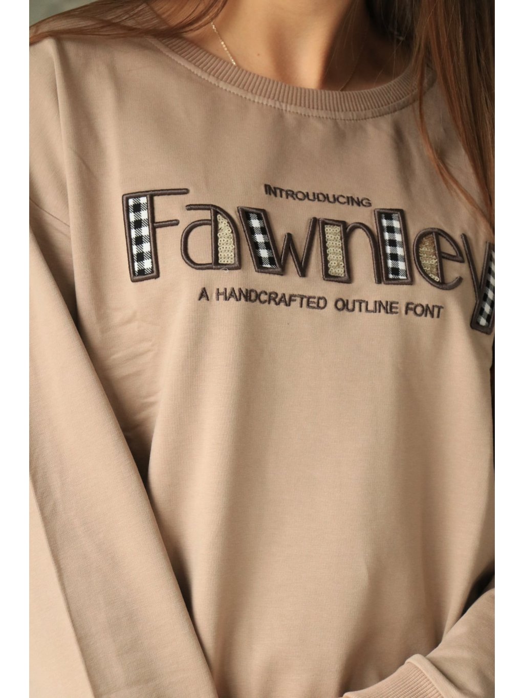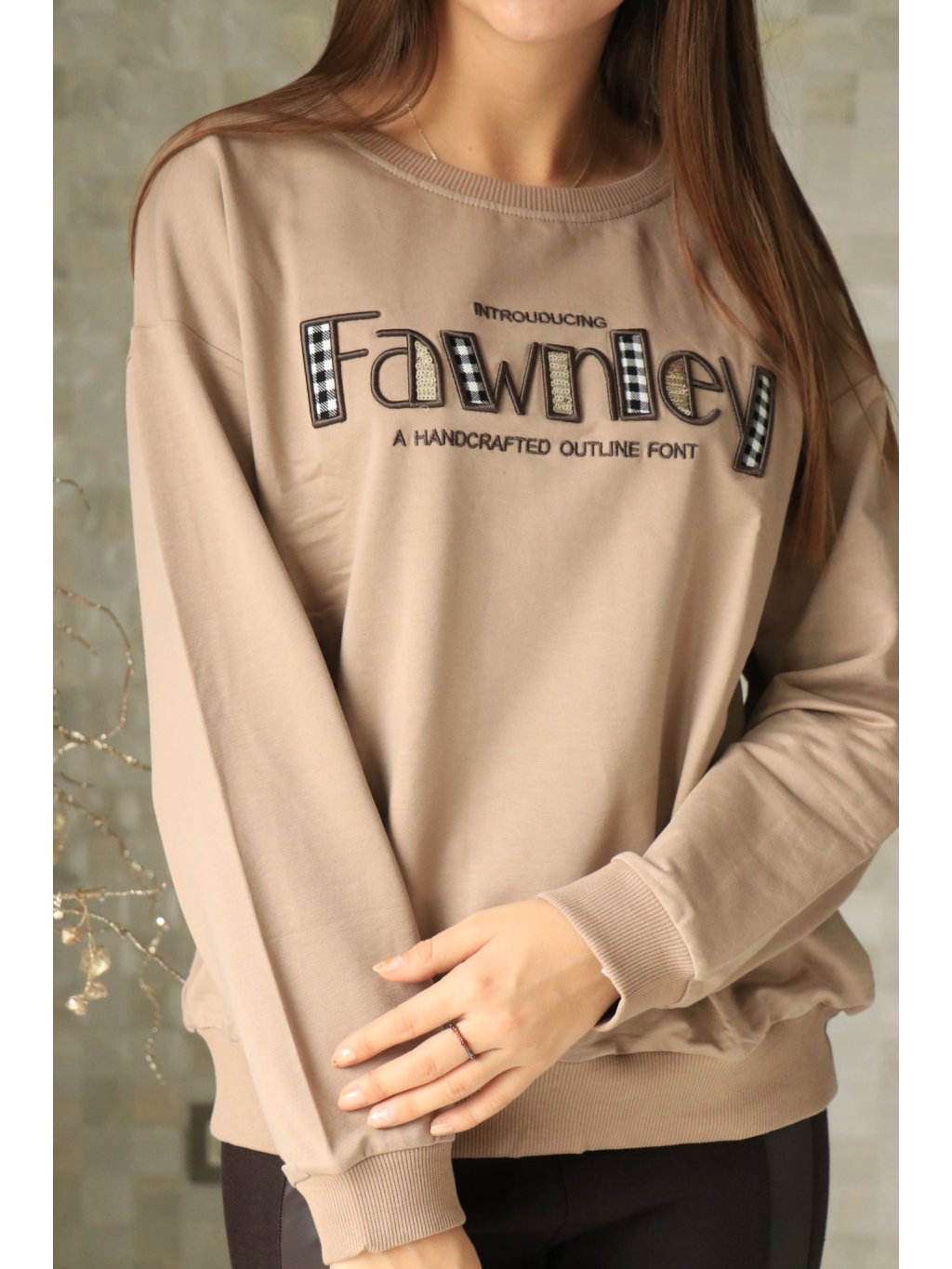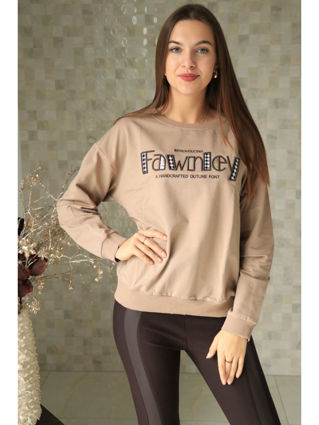 # Béžová mikina s nápisem a flitry