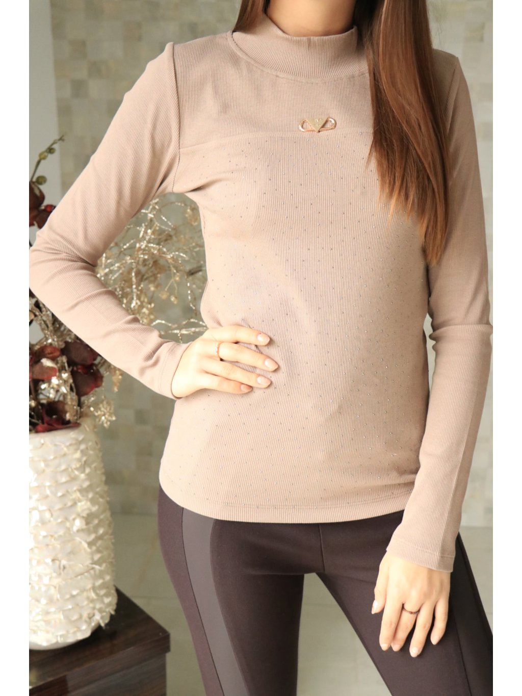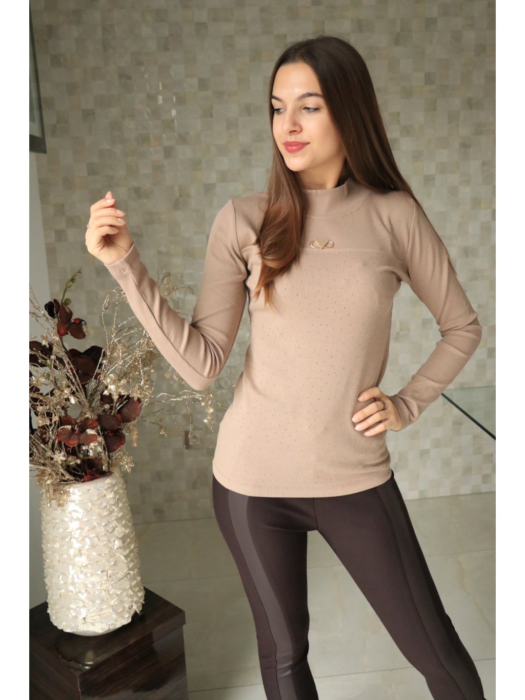 Objevte dokonalé spojení pohodlí a elegance s naším béžovým bavlněným tričkem zdobeným třpytivými kamínky. Tento všestranný kousek s luxusními detaily promění každodenní základní tričko v stylový a rafinovaný outfit pro každou příležitost.