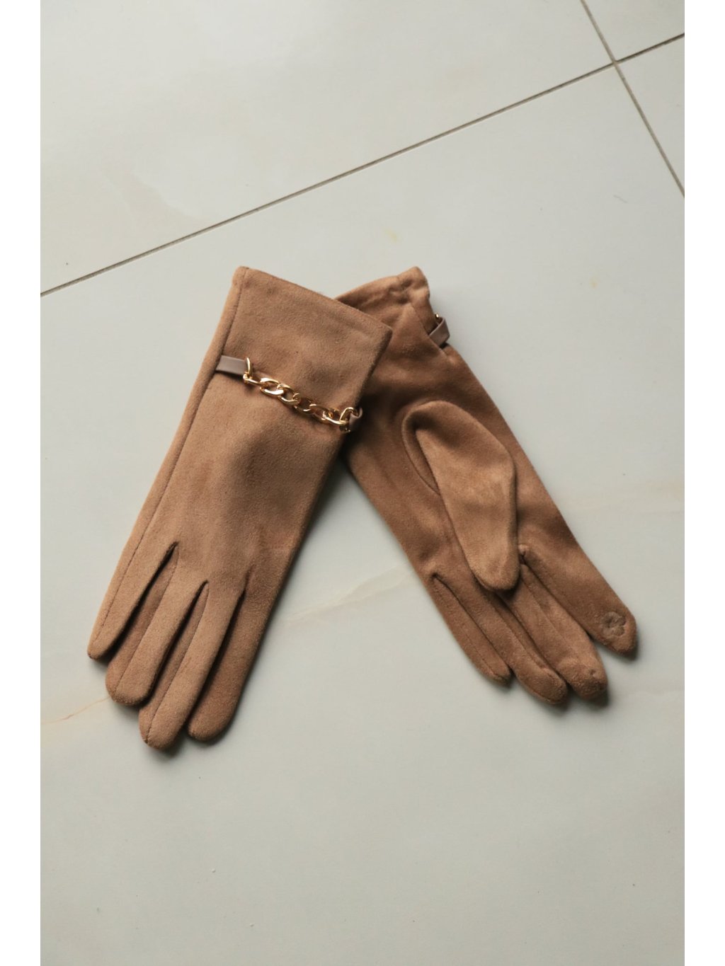 # Béžové rukavice s řetízkem