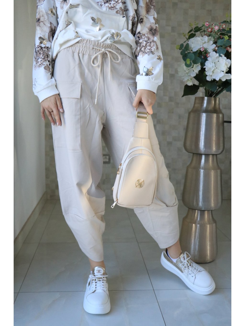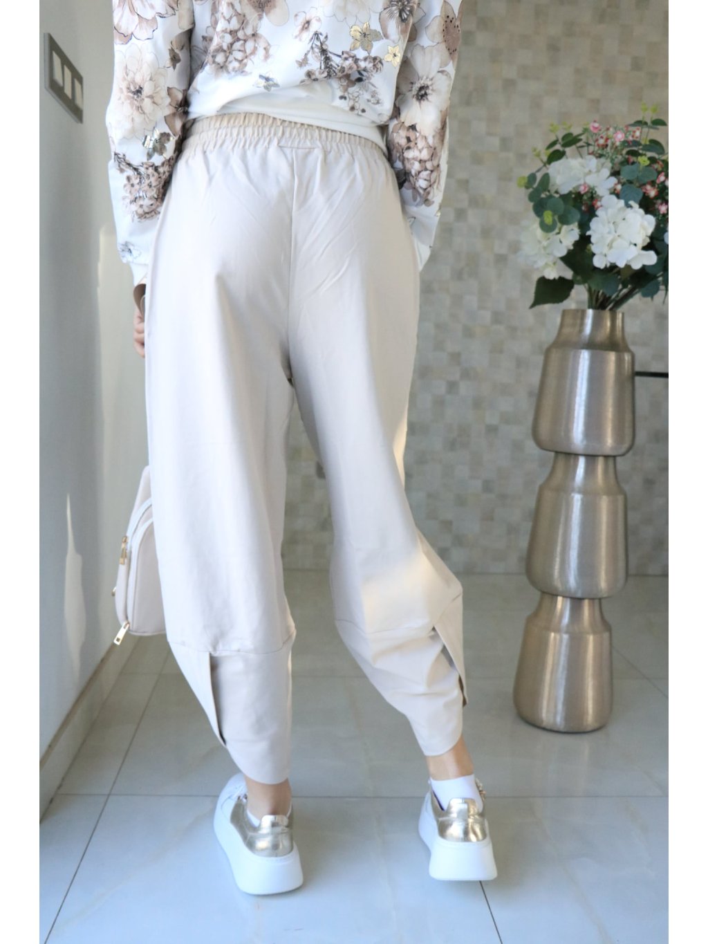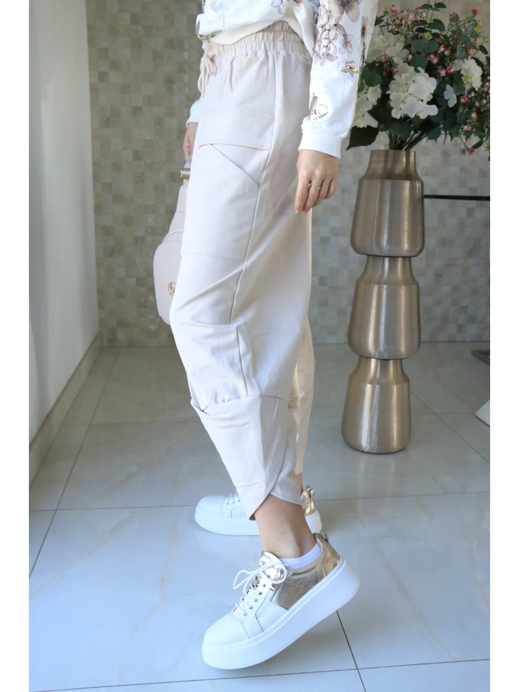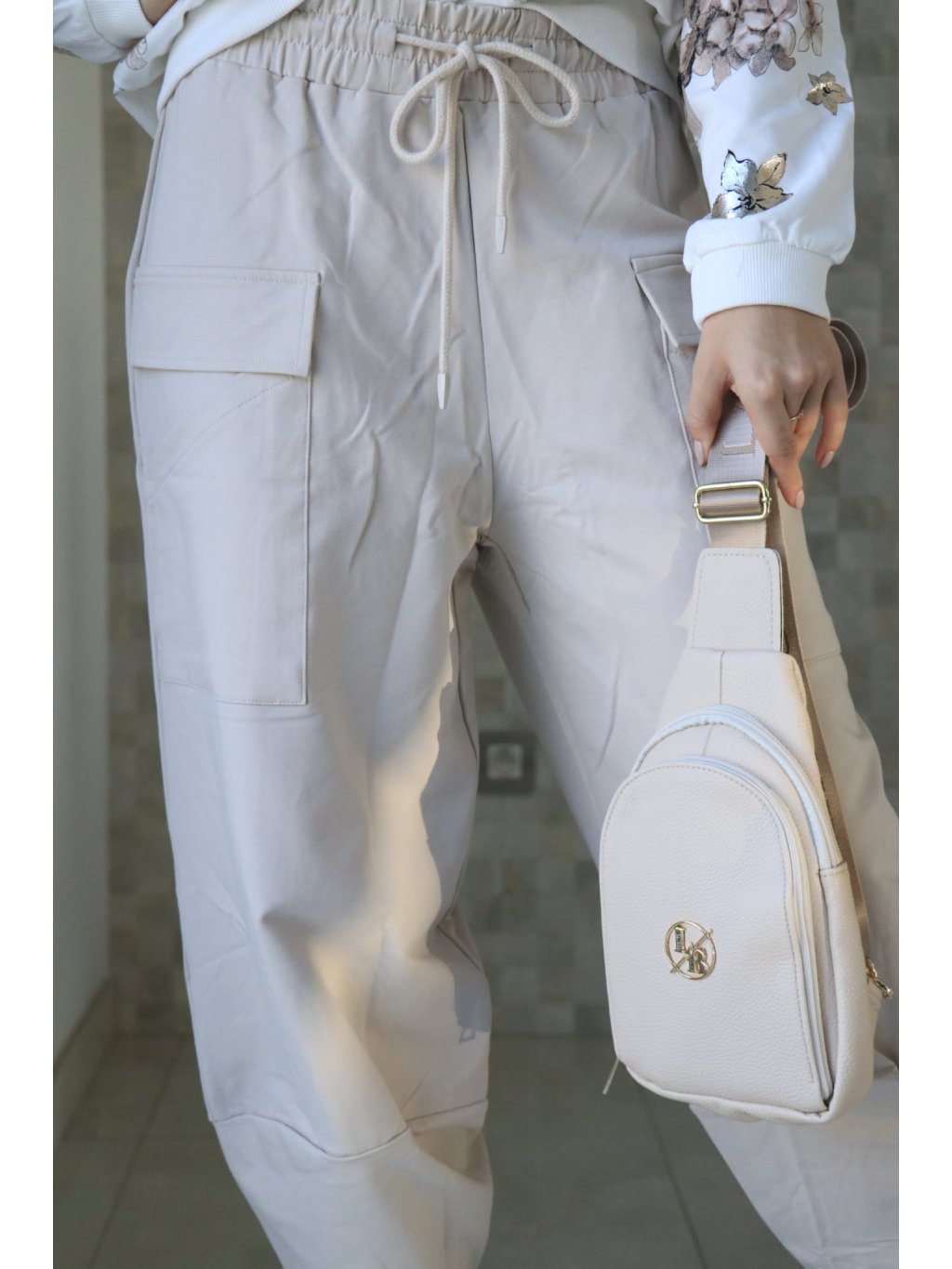 🤍 Béžové teplákové kalhoty s gumou v pase – jarní kolekce 🤍