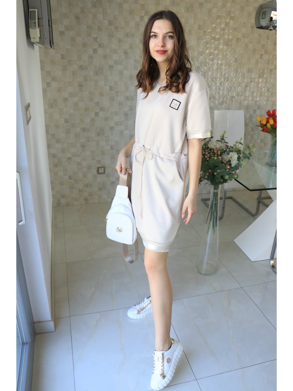 Béžové volnočasové šaty