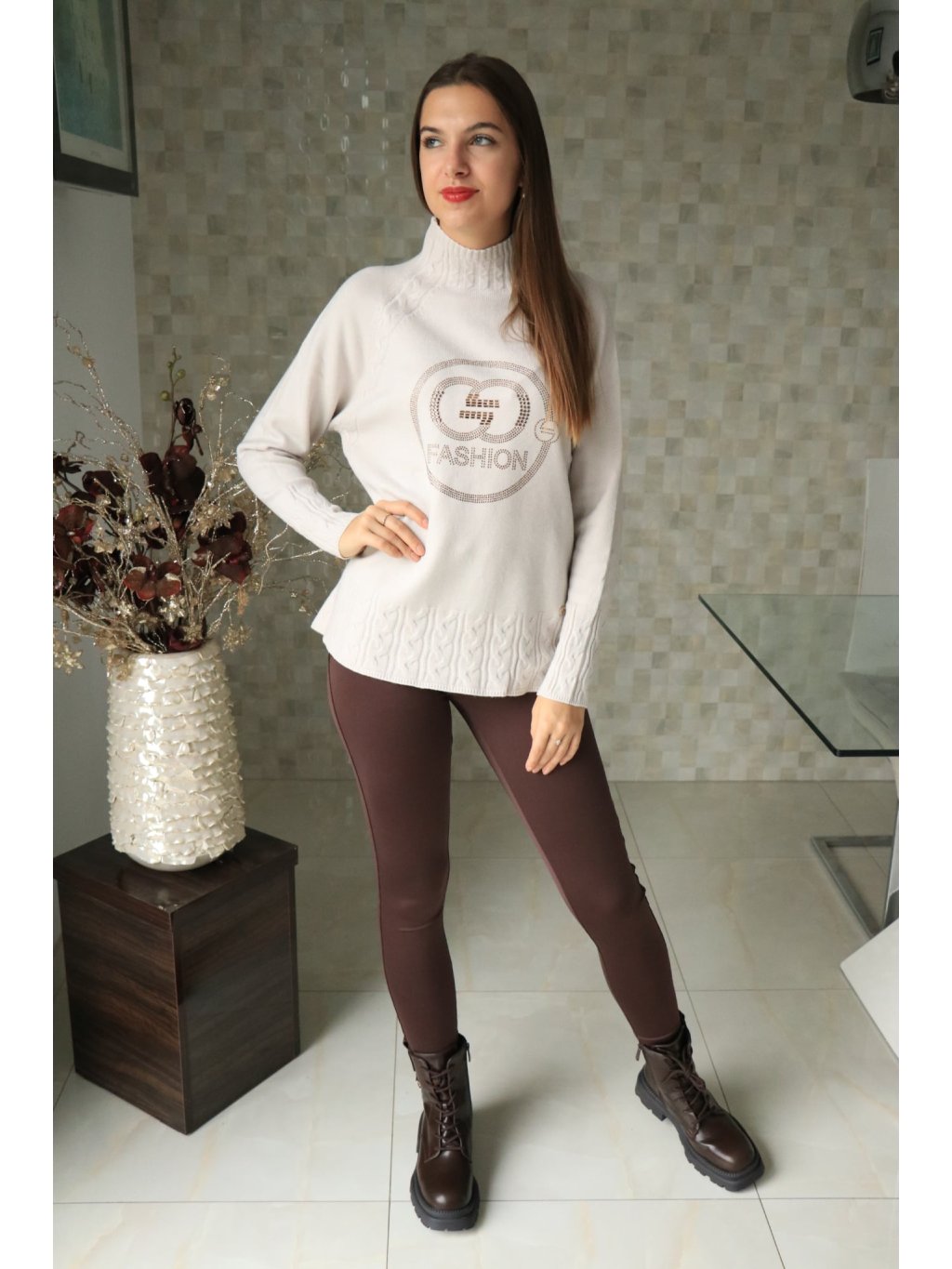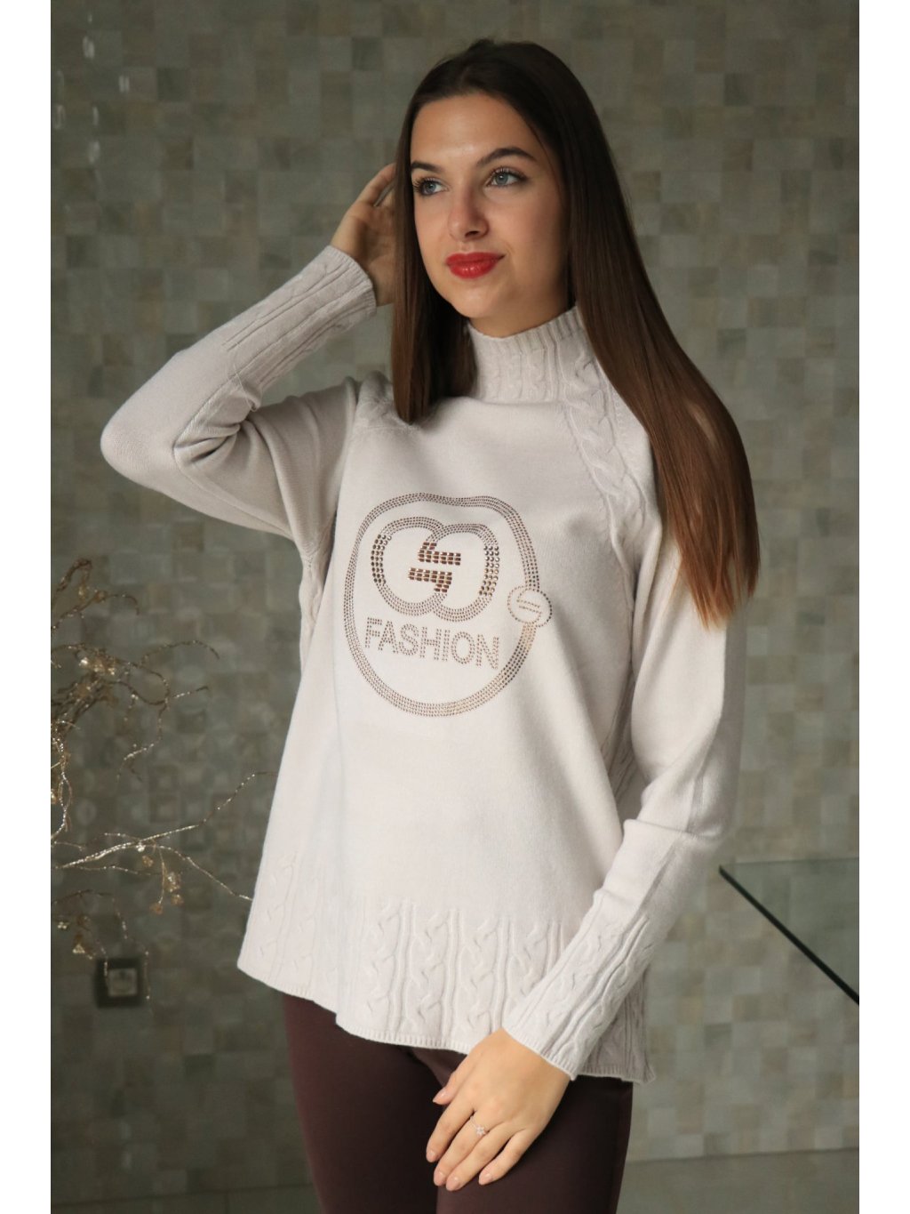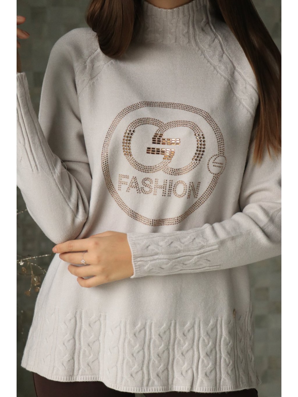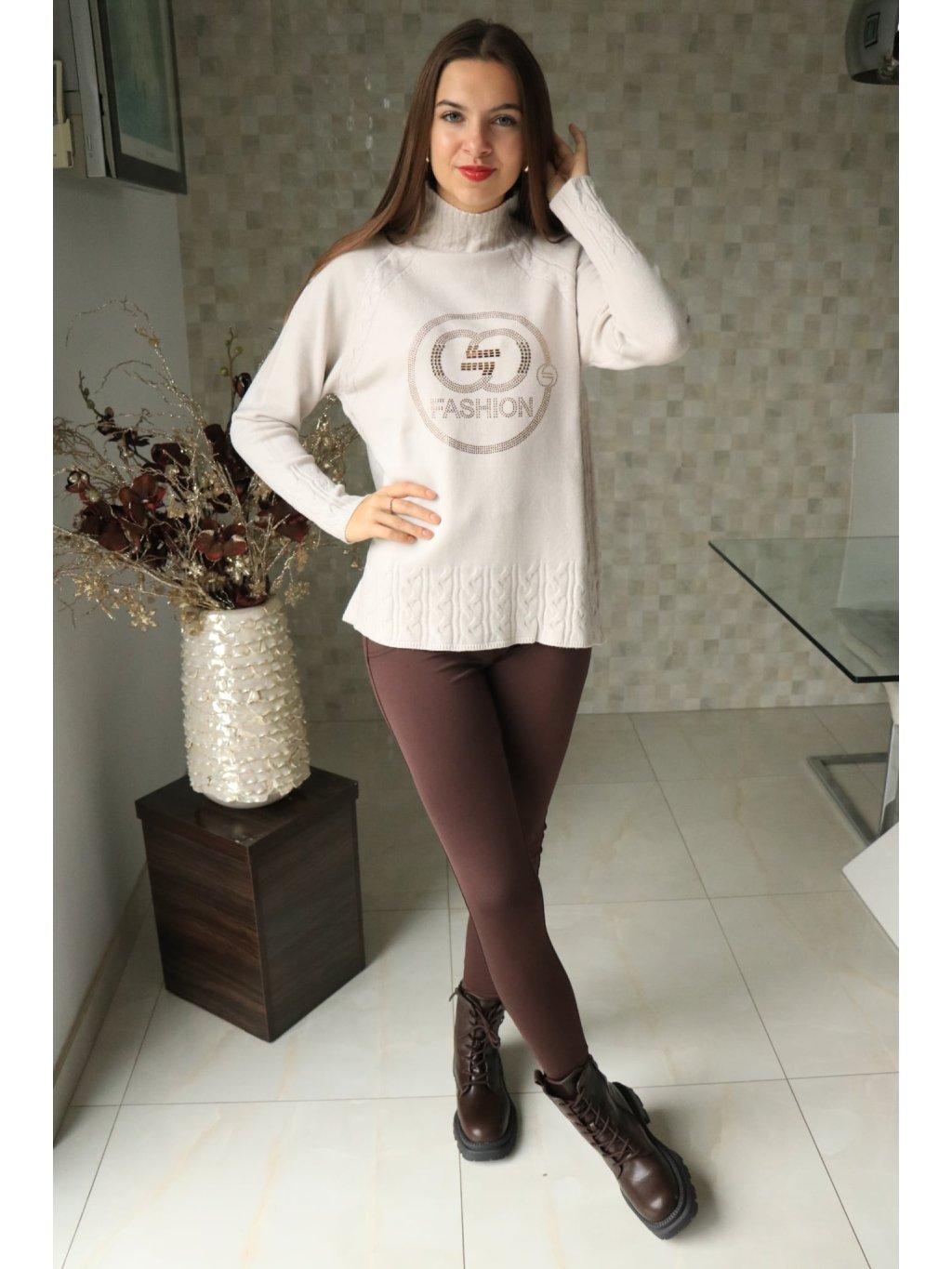 # Béžový svetr se stojáčkem lemovaný GG Fashion