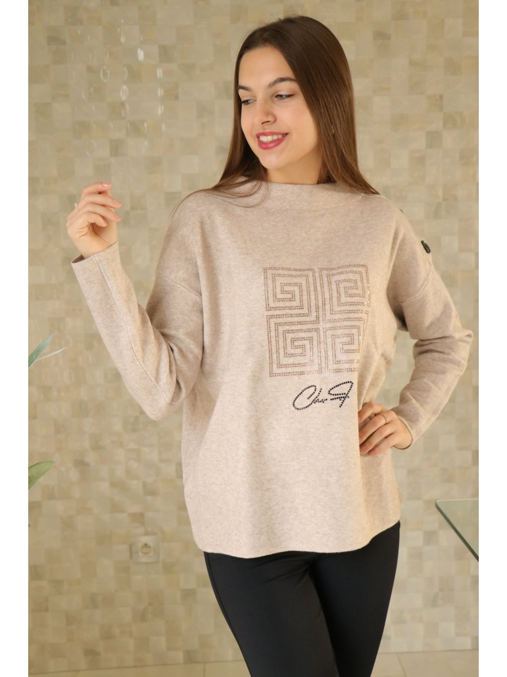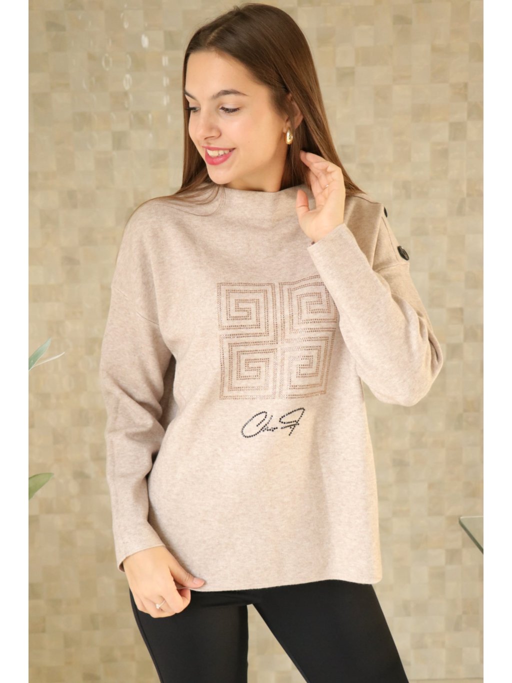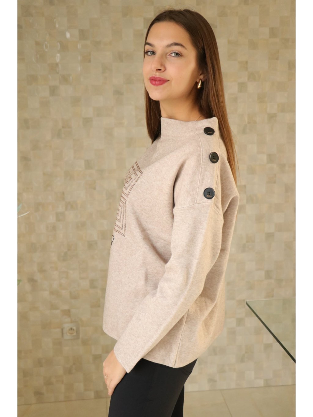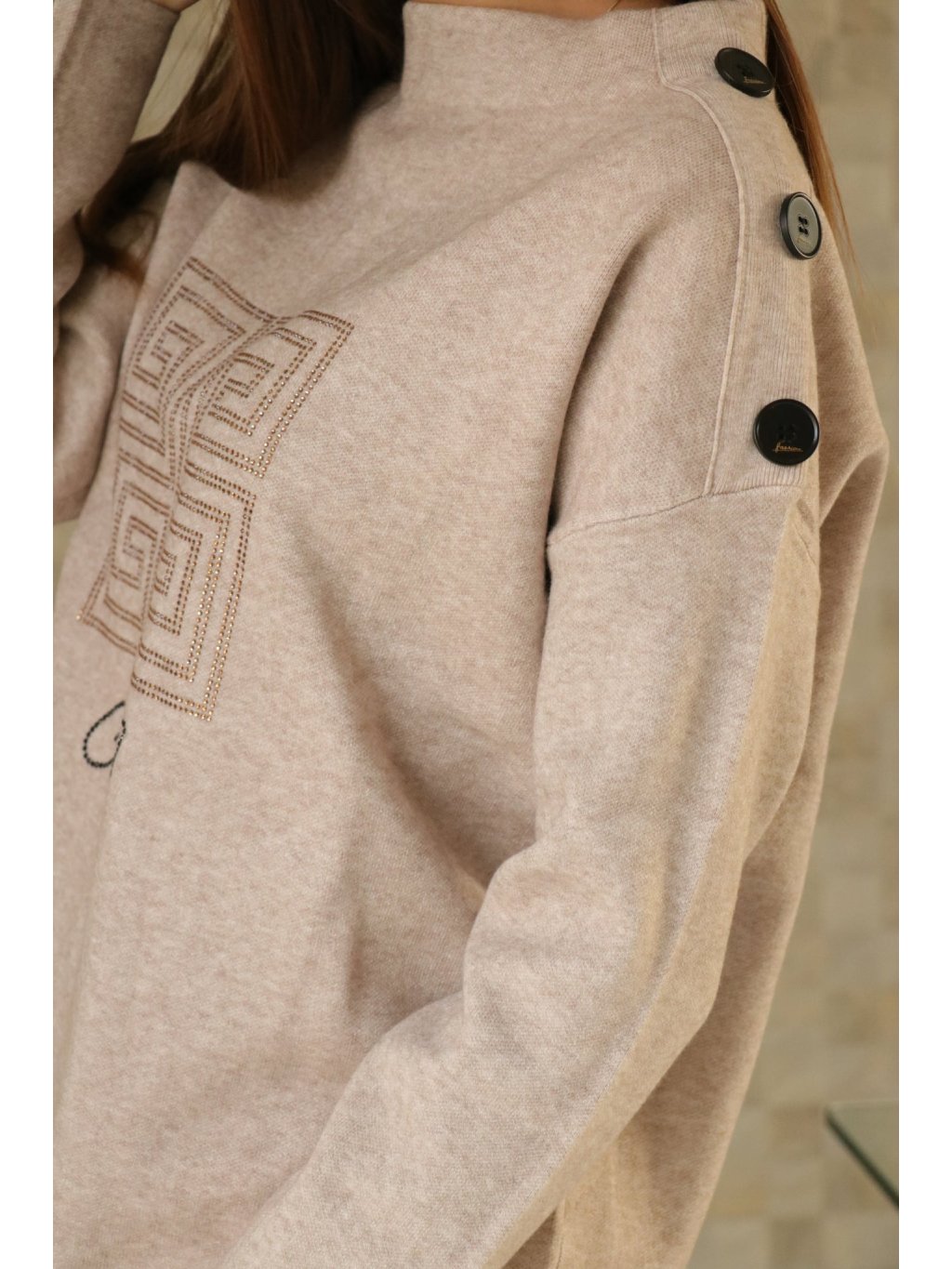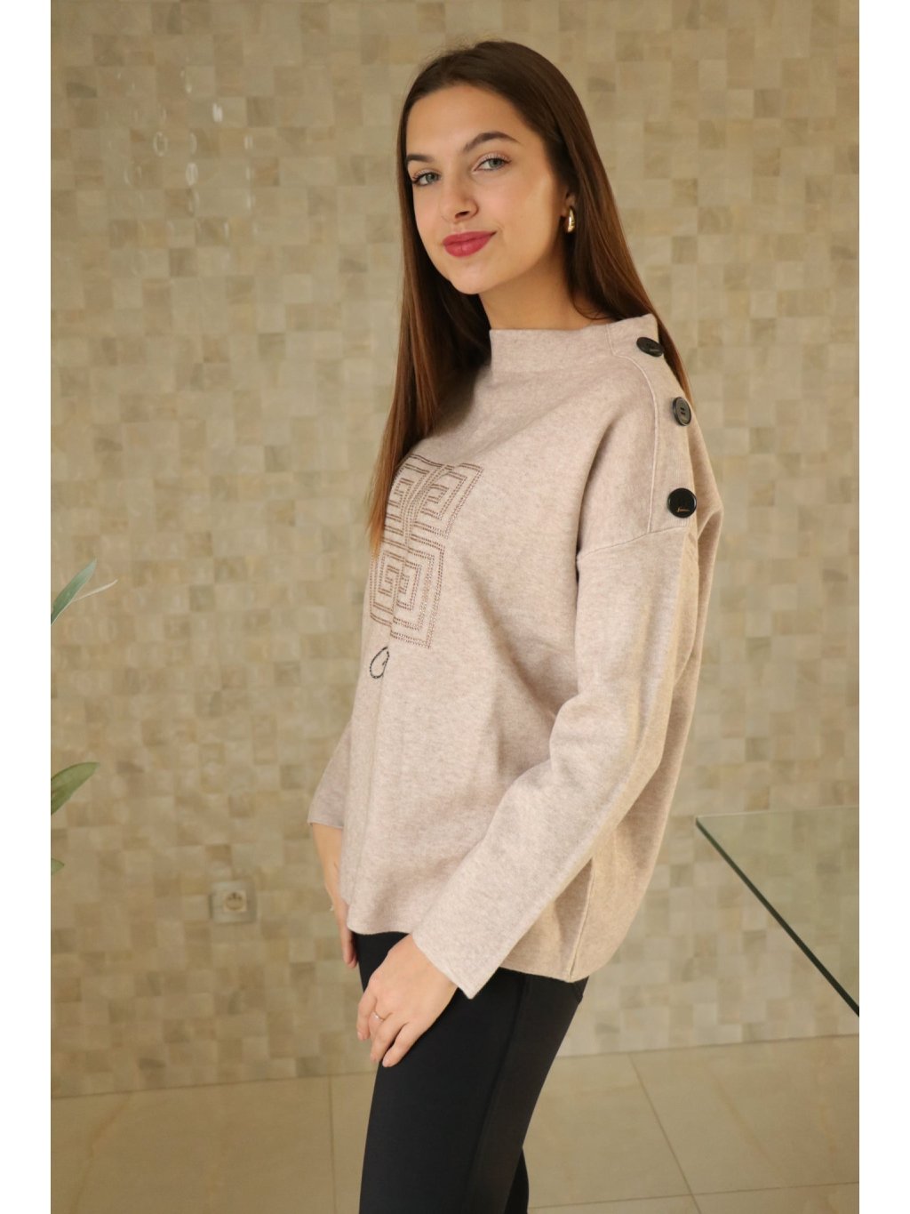 Béžový svetřík s kamínky a knoflíky u krku vel. UNI
