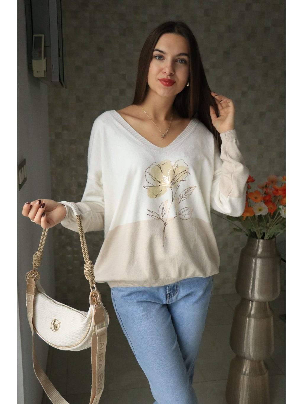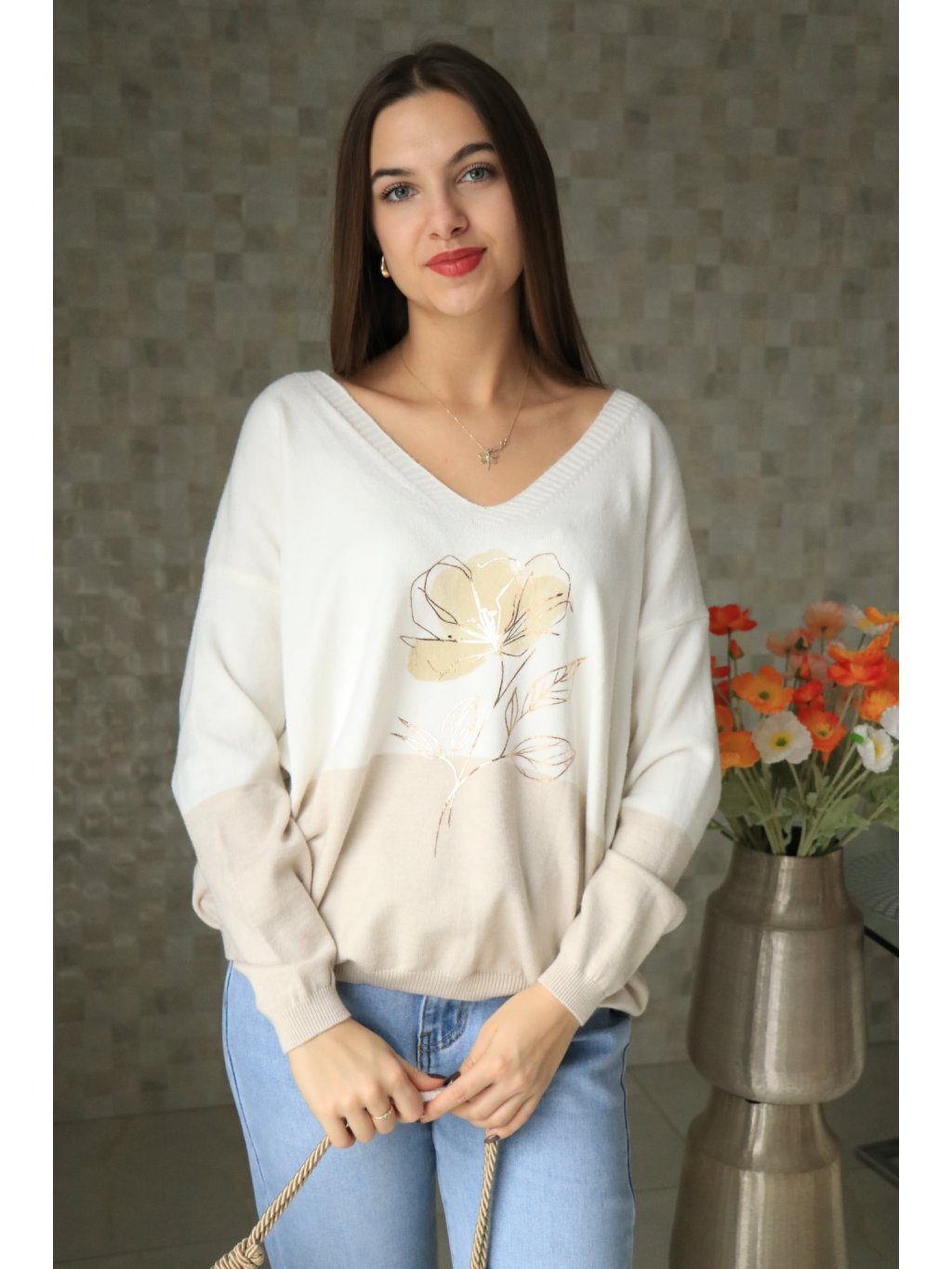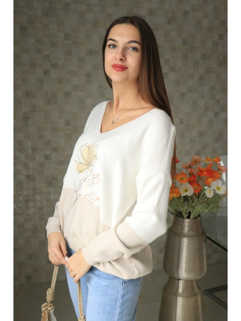 🌸 Květinový motiv dodává svetříku ženský a romantický detail