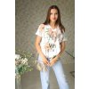 Tato stylová halenka je ozdobena krásným potiskem velkých květů a doplněna nápisem, který dodává dámskému vzhledu originální a ženský nádech. 💐 Krátký rukáv halenky je ideální pro jarní a letní dny, kdy je příjemné teplo, ale nechce se vám mít rukávy dlouhé. 🌞 Halenka je vyrobena z kvalitního materiálu a je vhodná pro každodenní nošení nebo speciální příležitosti.