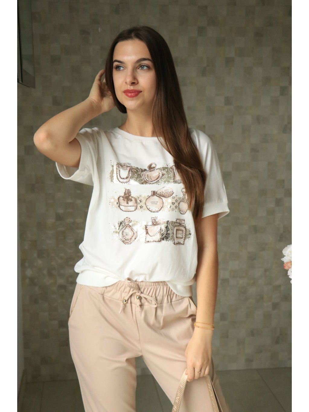 Bílá halenka s potiskem parfému vel. S/M, L/XL