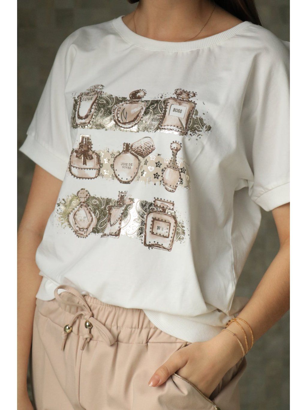 ✨🤍 Bílá halenka s potiskem parfému – elegantní a originální design ✨