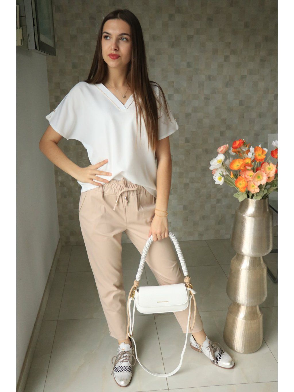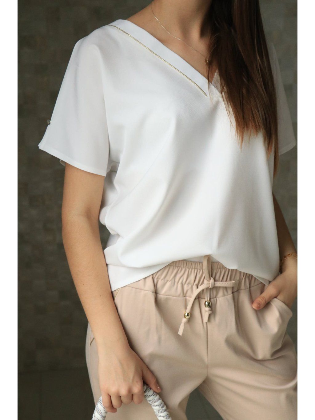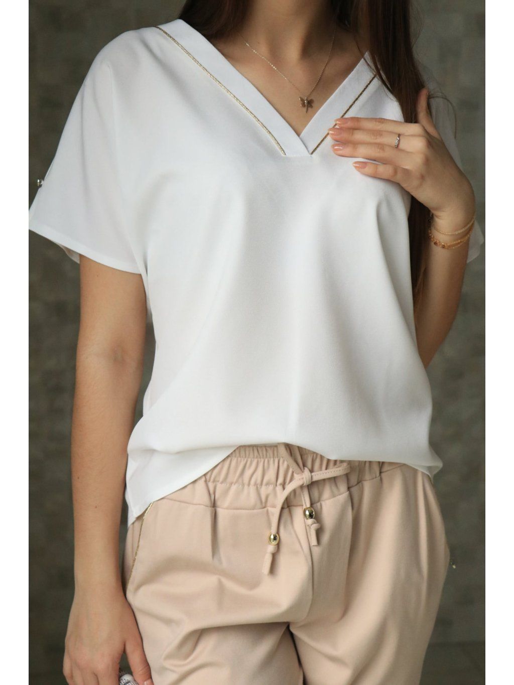 ✨🤍 Bílá halenka s výstřihem do V a zlatým lemováním – elegantní a sofistikovaný styl ✨