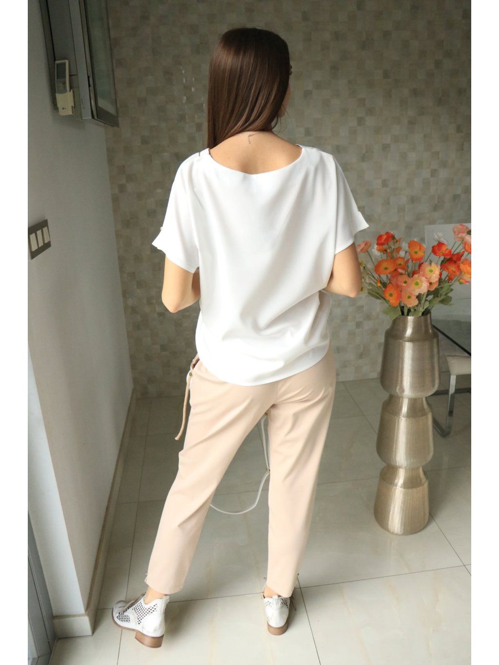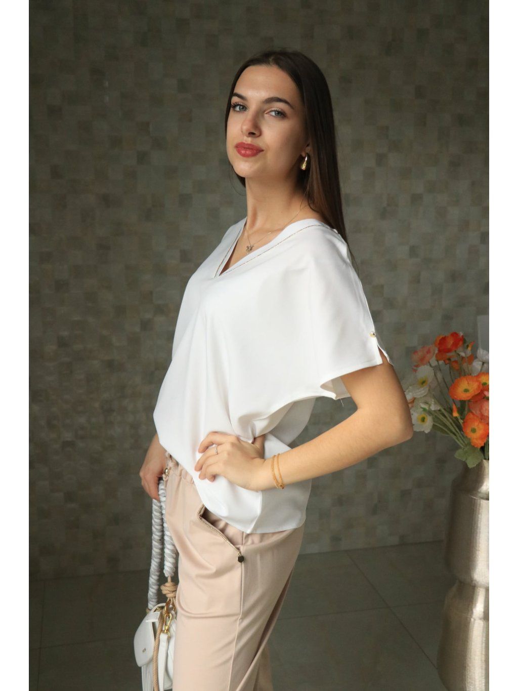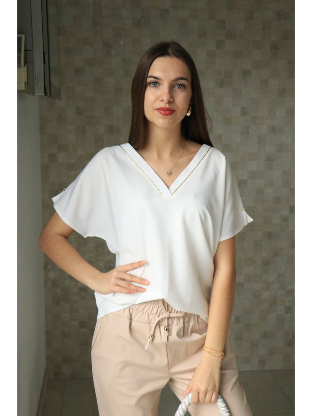 ✨🤍 Bílá halenka s výstřihem do V a zlatým lemováním – elegantní a sofistikovaný styl ✨