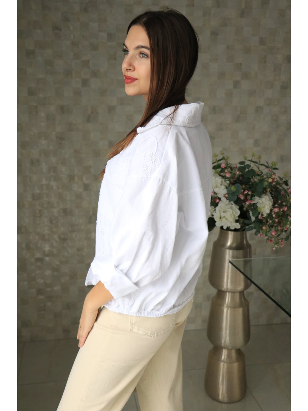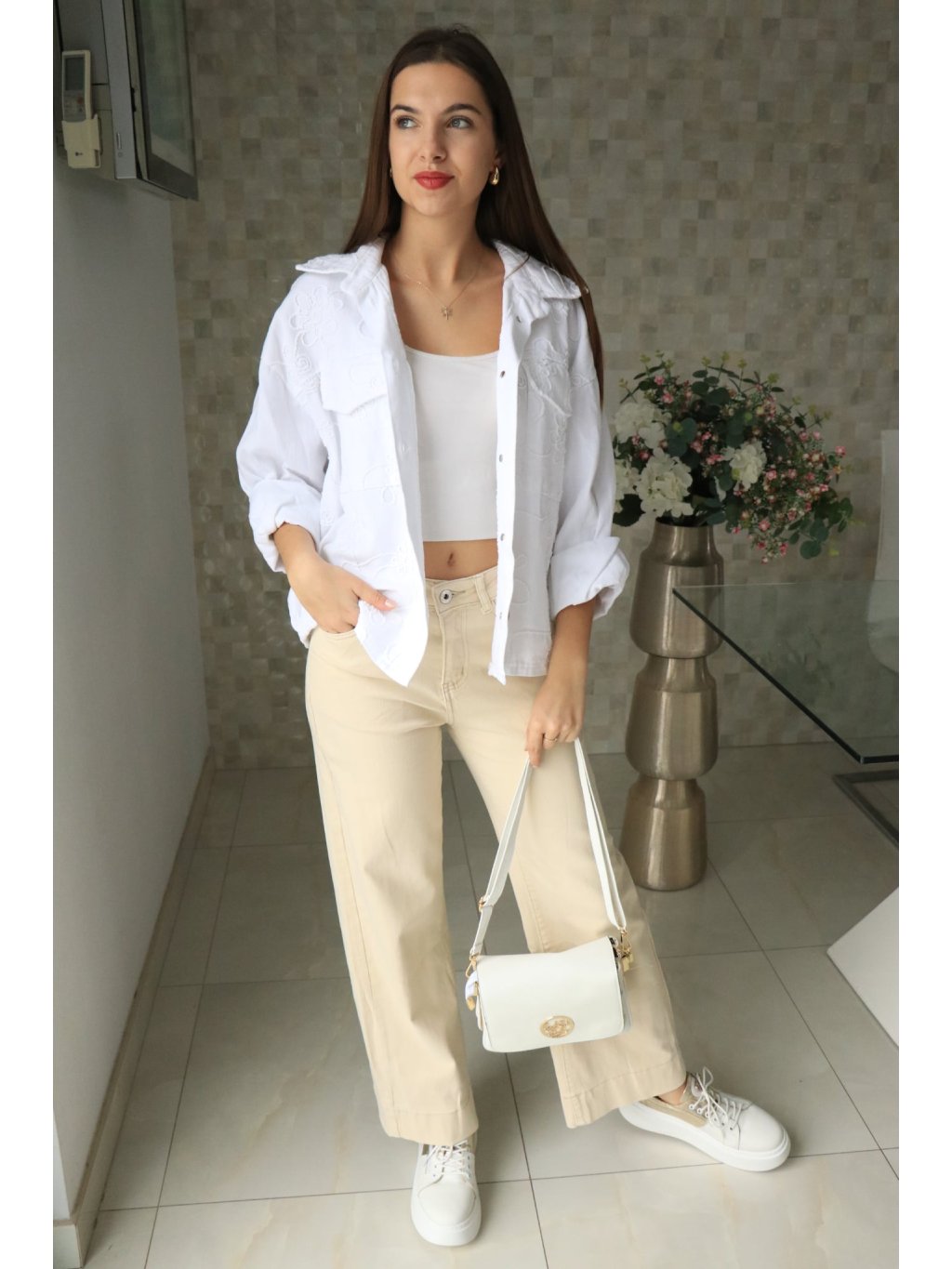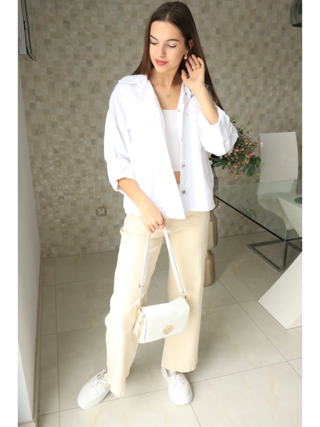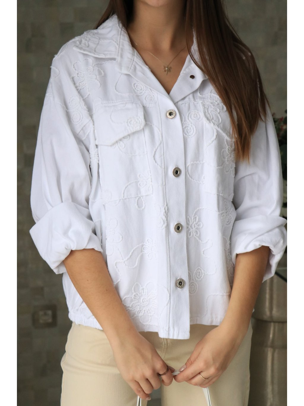 🤍🌼 Bílé riflové sako s vyšitými květy – jarní kolekce 🌼🤍