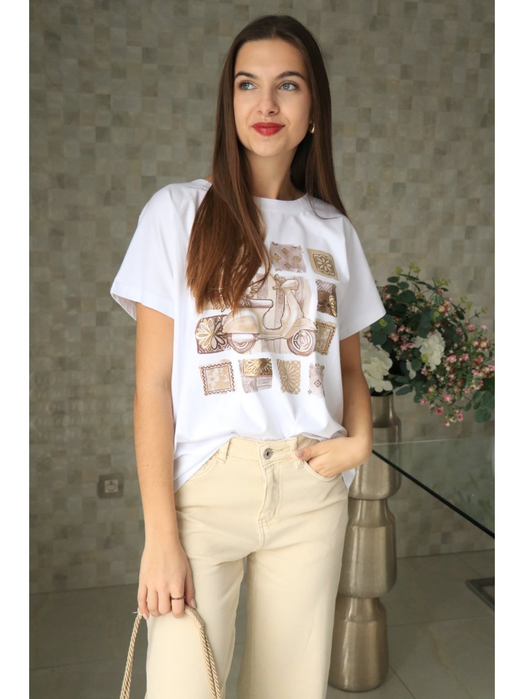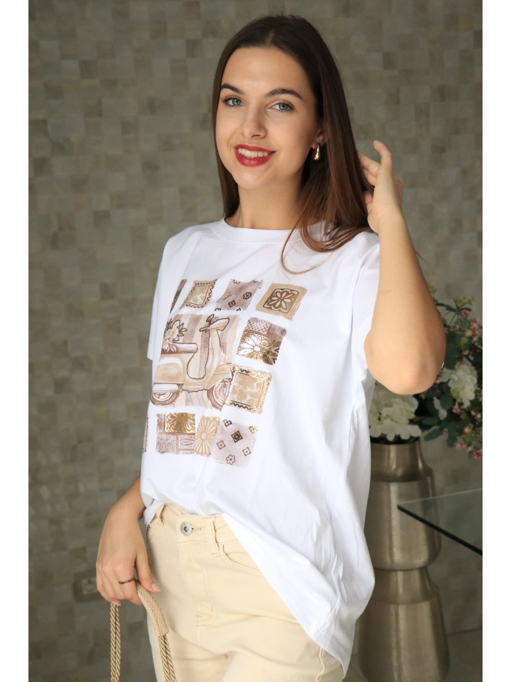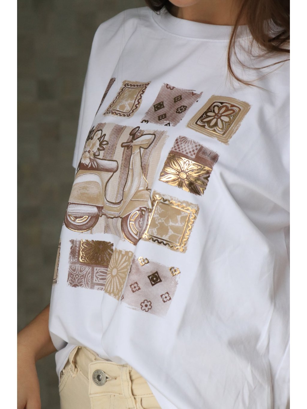 🤍✨ Bílé triko se zlatým potiskem, krátký rukáv – jarní kolekce ✨🤍