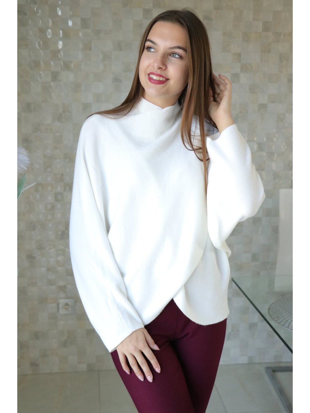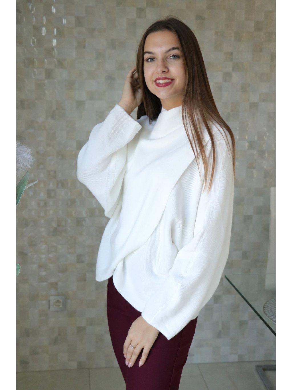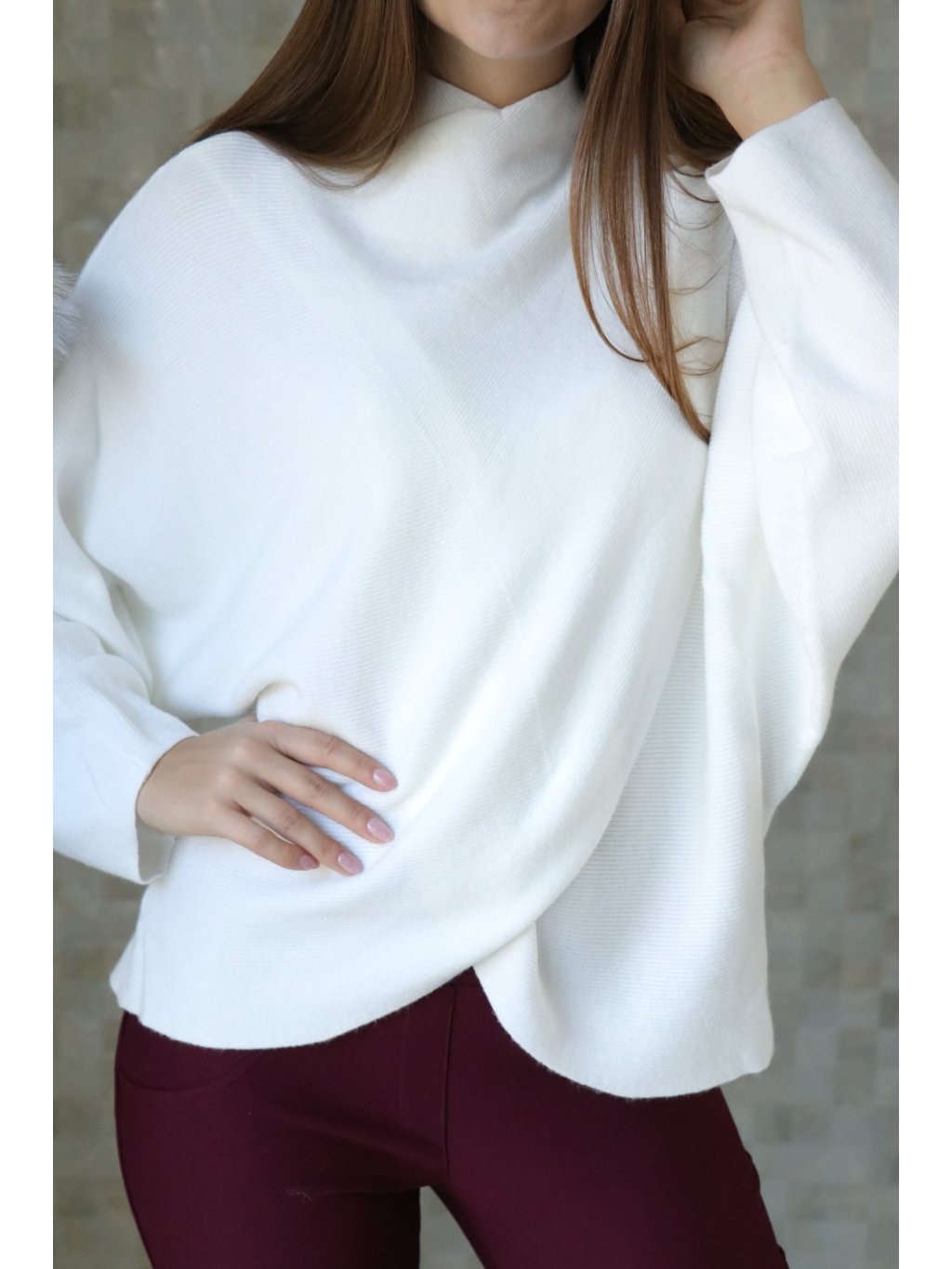 # Bílý svetr překřížený s netopýřím rukávem 🤍