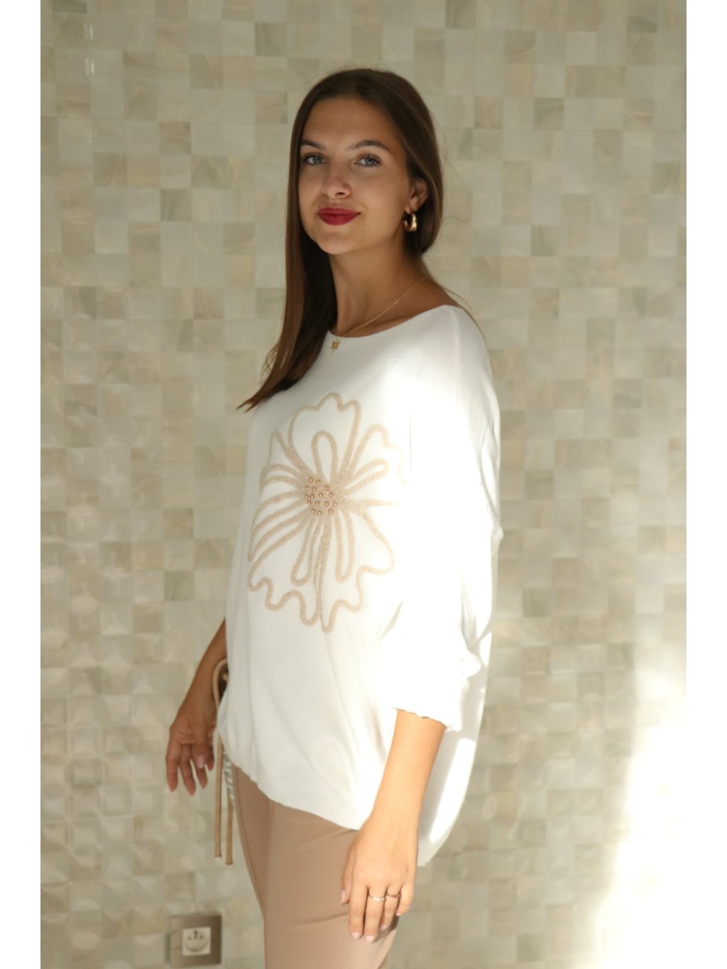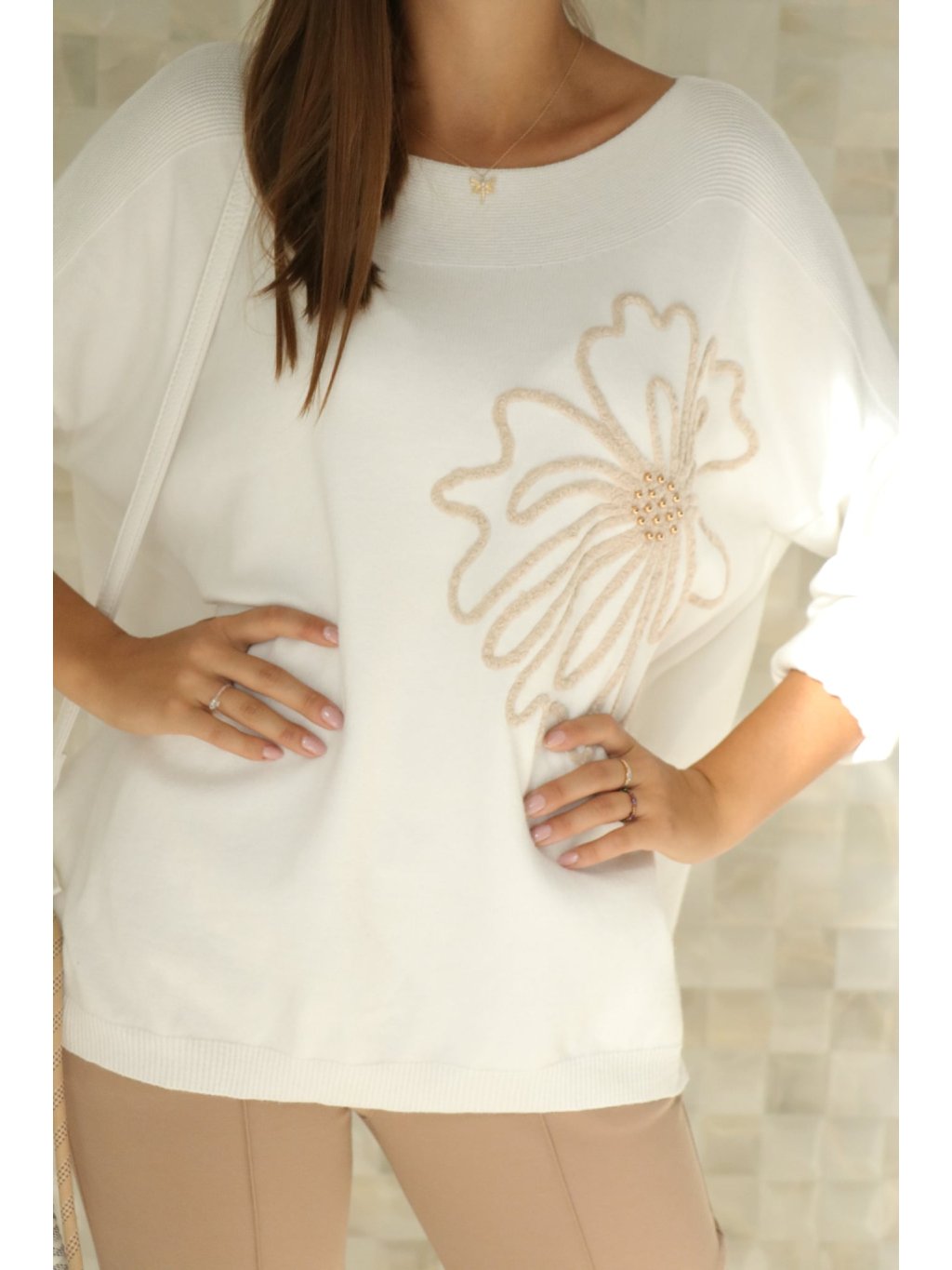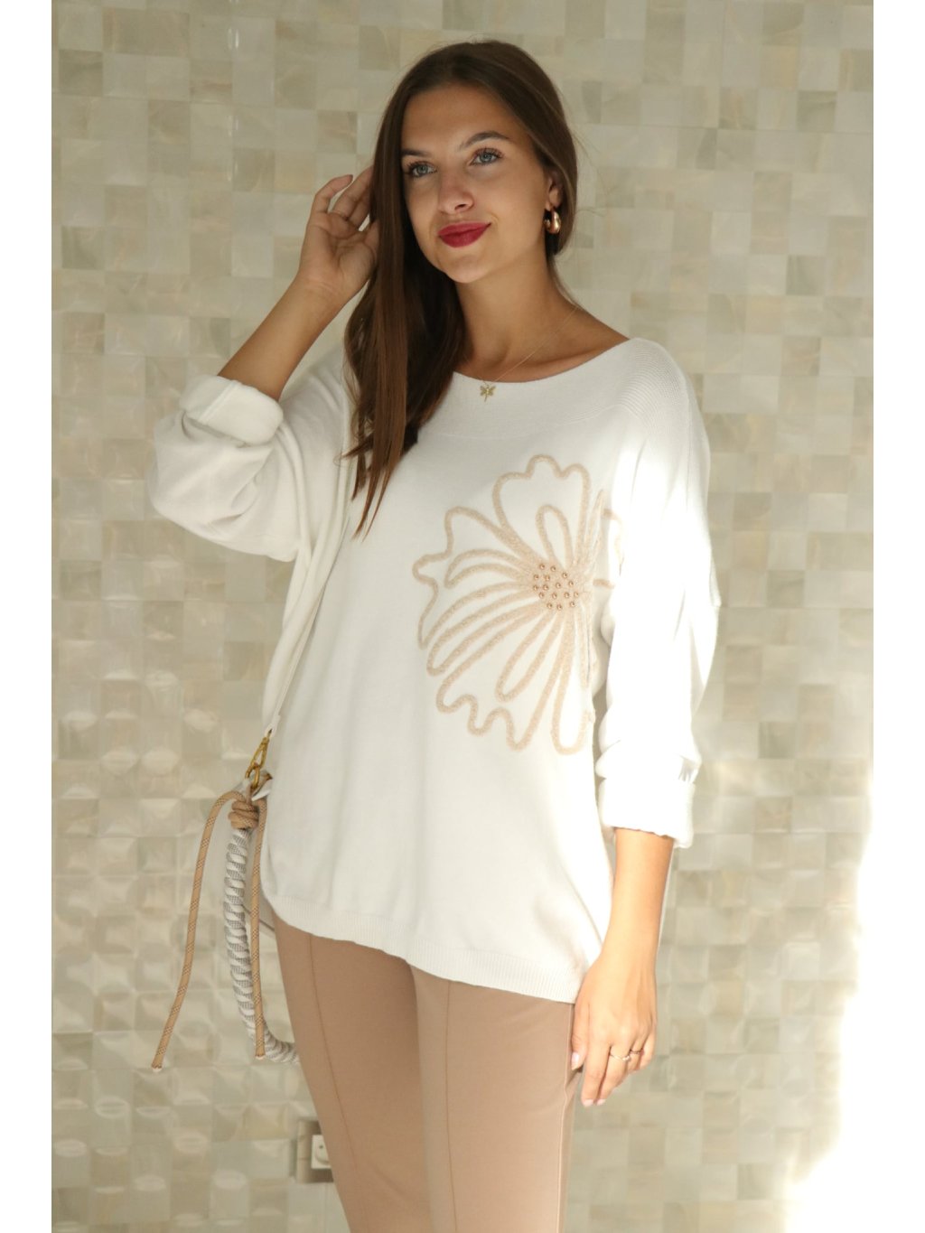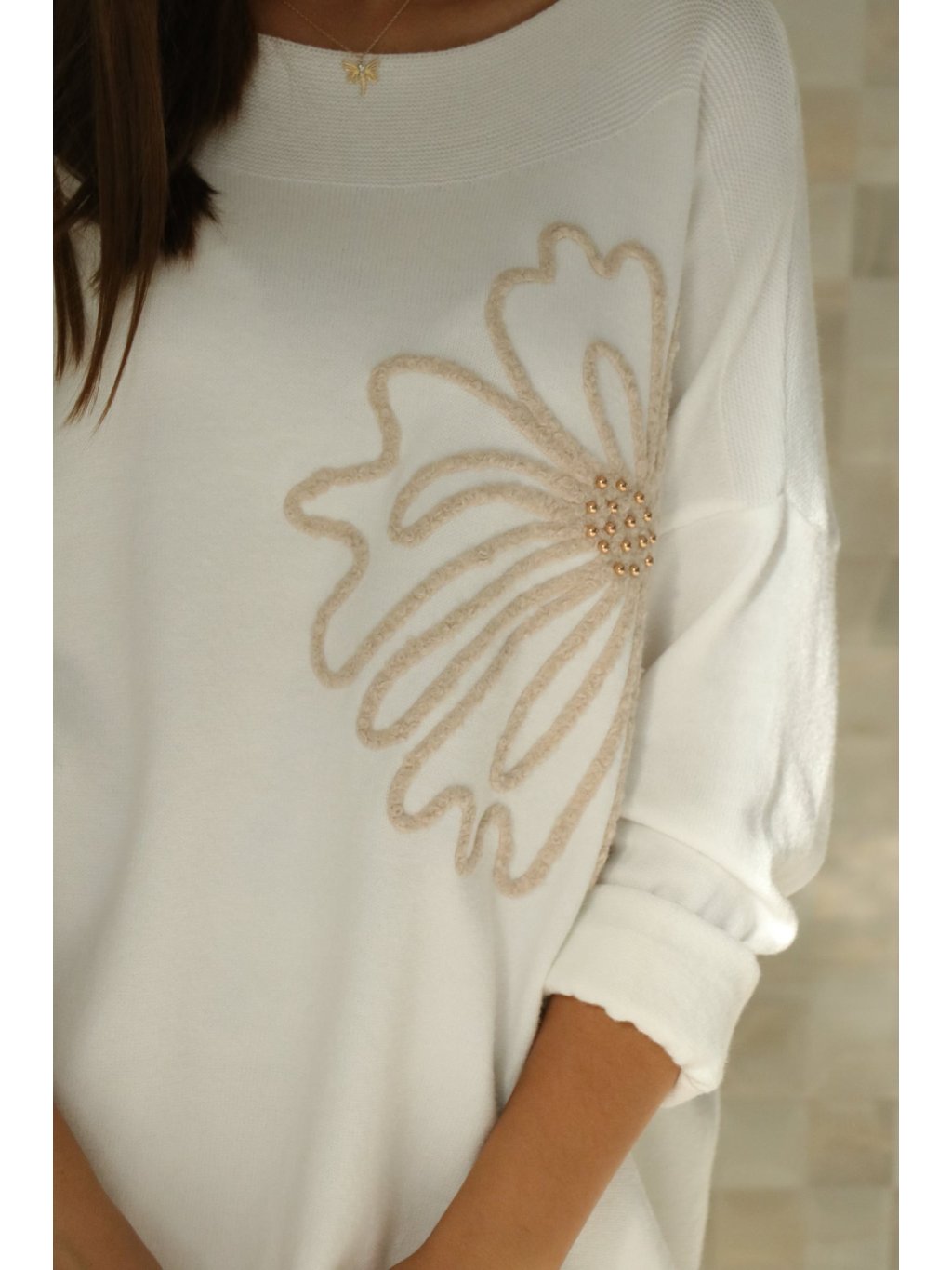 💃 Elegantní dámský svetřík vyrobený z kvalitního materiálu v bílé barvě s kytkou a perličkami. Svetřík má zajímavý design, který dodává nadčasový a stylový vzhled.