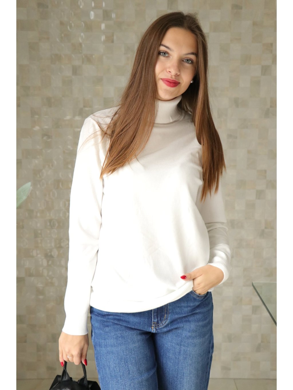 Čistota a elegance v jednom! Bílý svetřík s rolákem je dokonalý základ každého šatníku. Svěží, nadčasový a neuvěřitelně všestranný kousek pro každou sezónu.