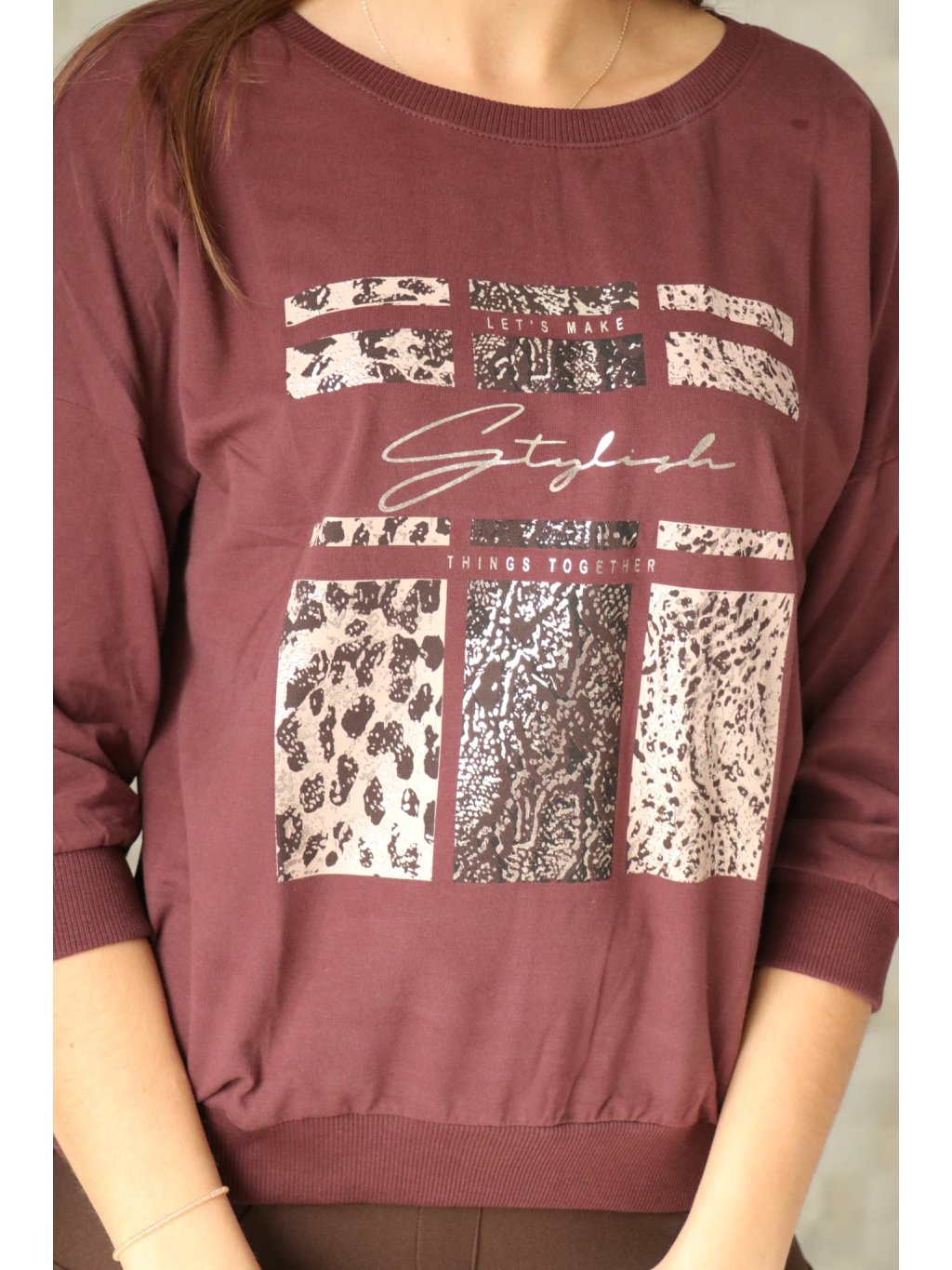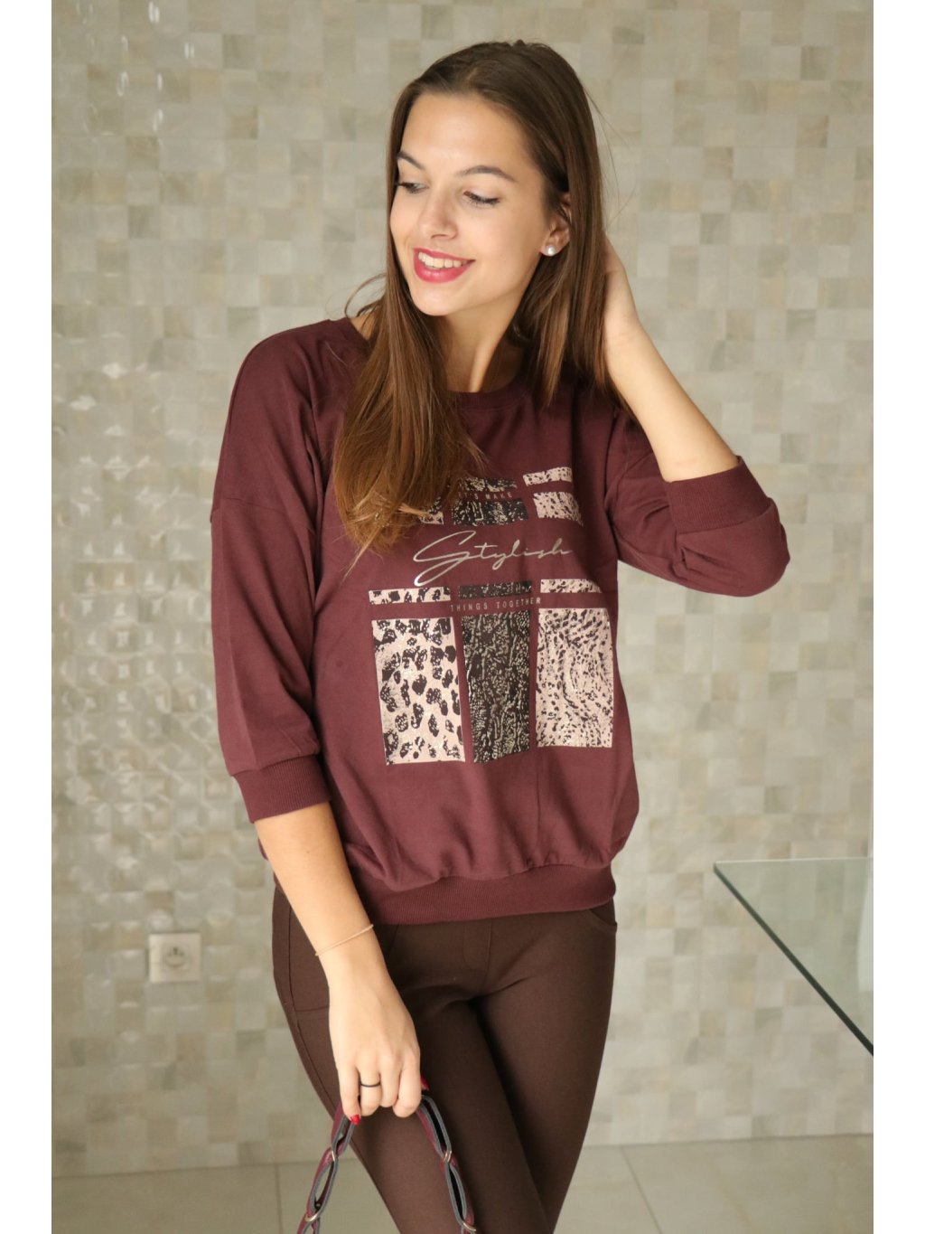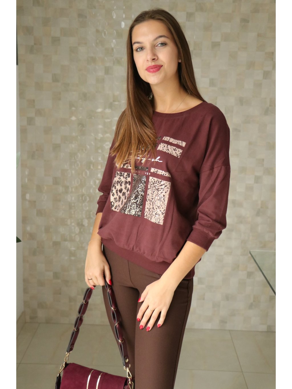 🍷🤎 Bordó halenka s béžovým leopardím vzorem