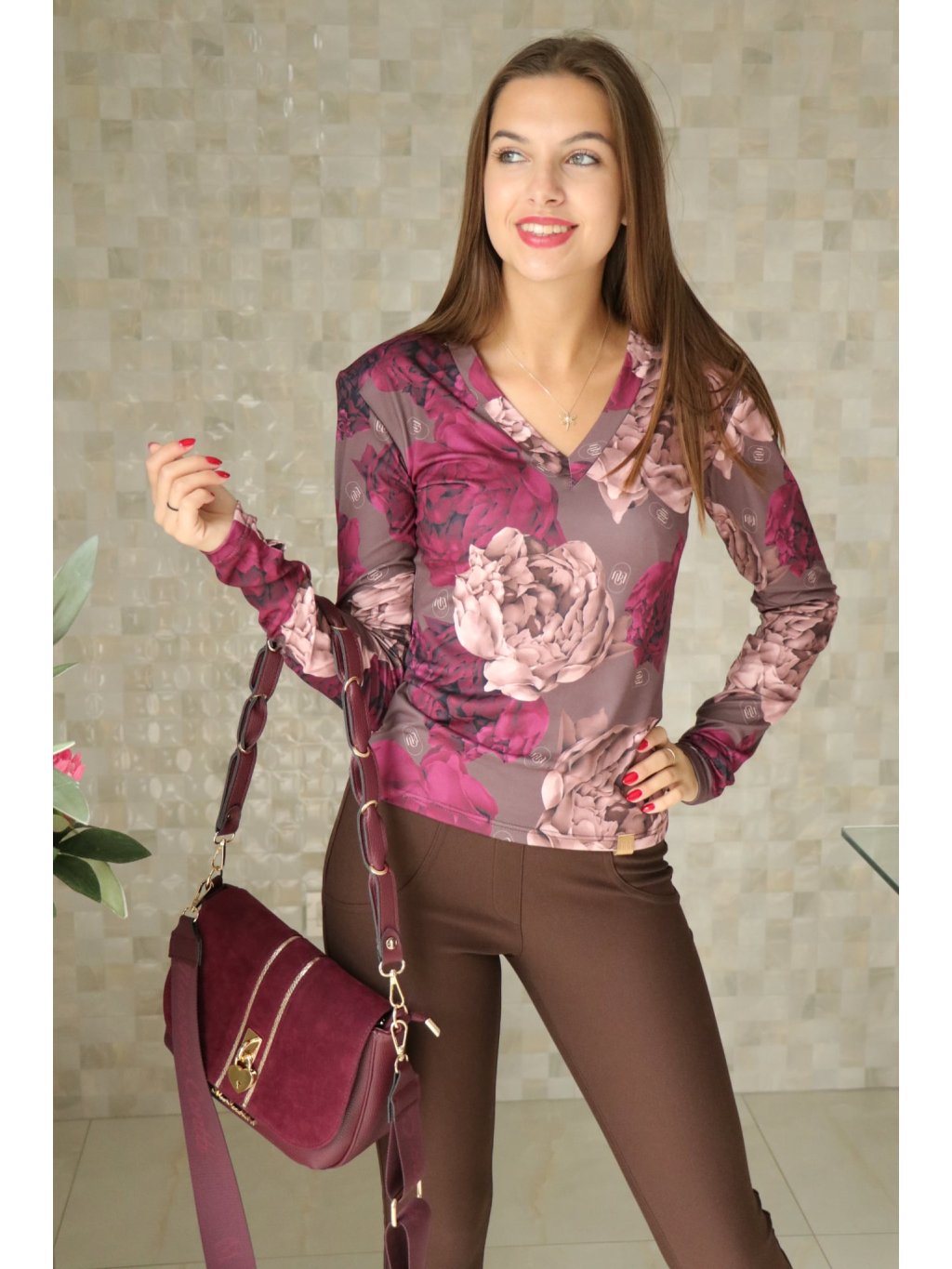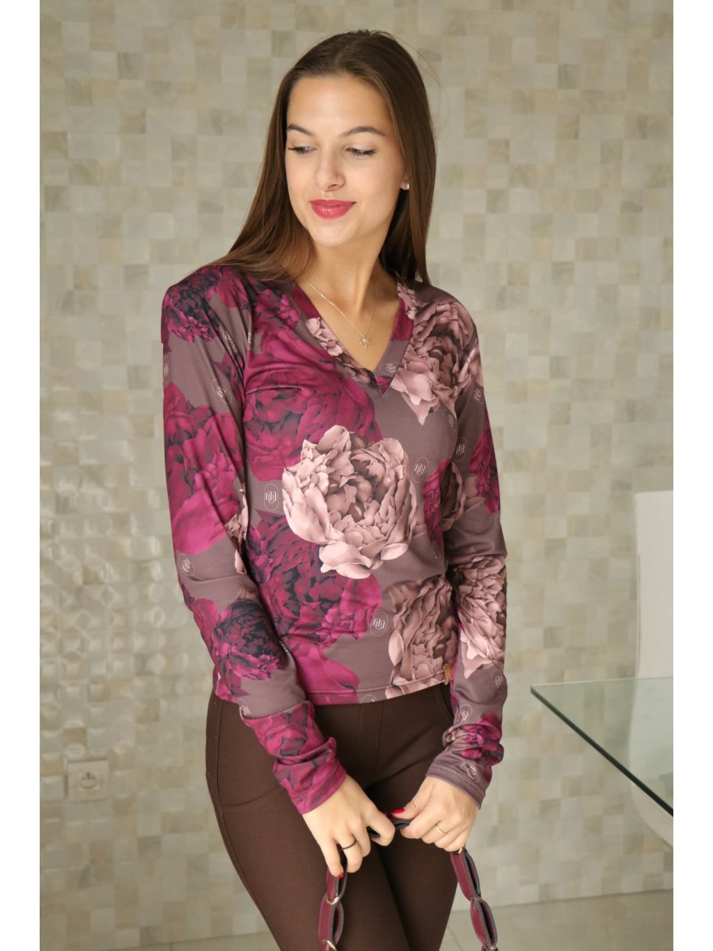 # 🍷🌸 Bordó halenka s květinovým vzorem do V