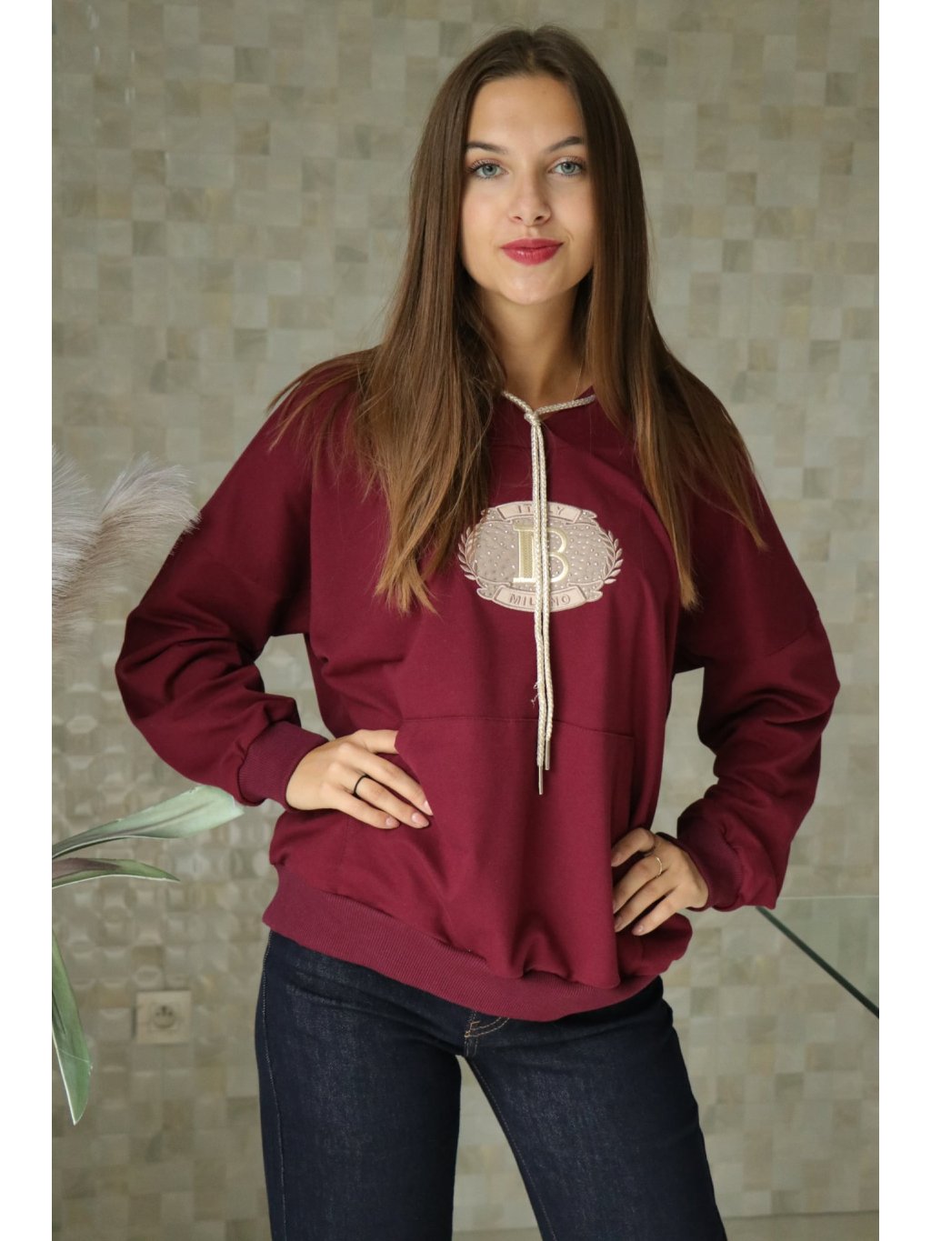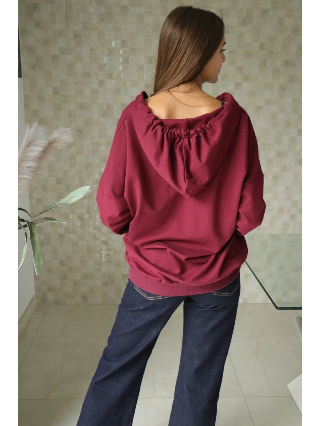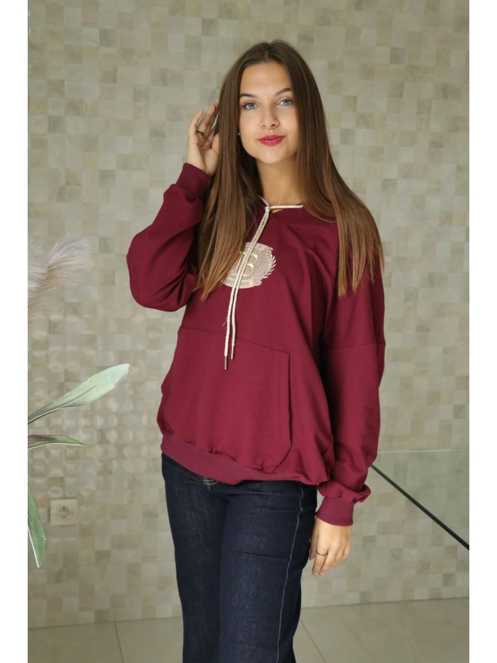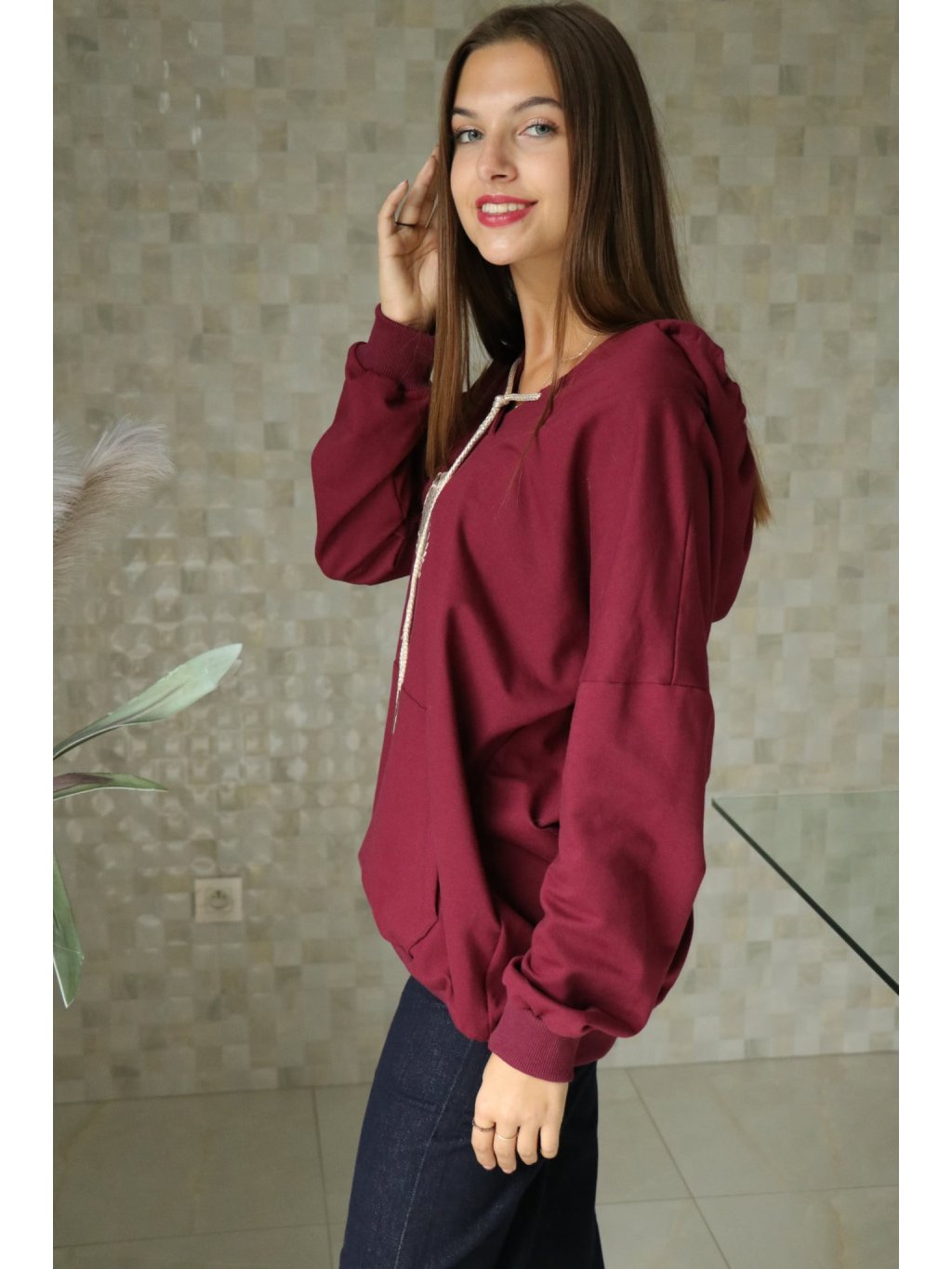 Dámská bordó mikina s kapucí