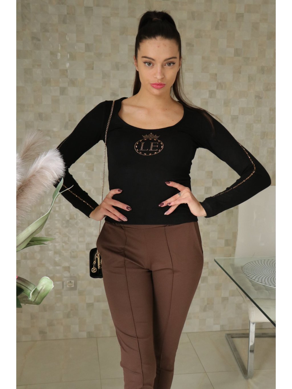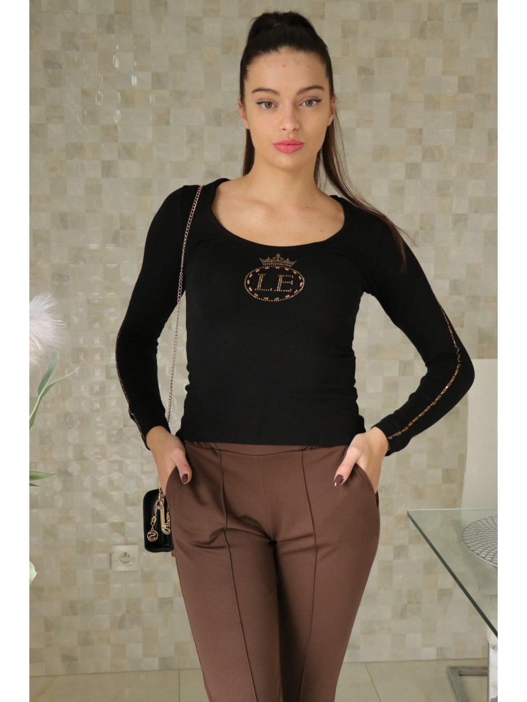 # 🖤 Černá halenka Lady Elite se zlatými kamínky