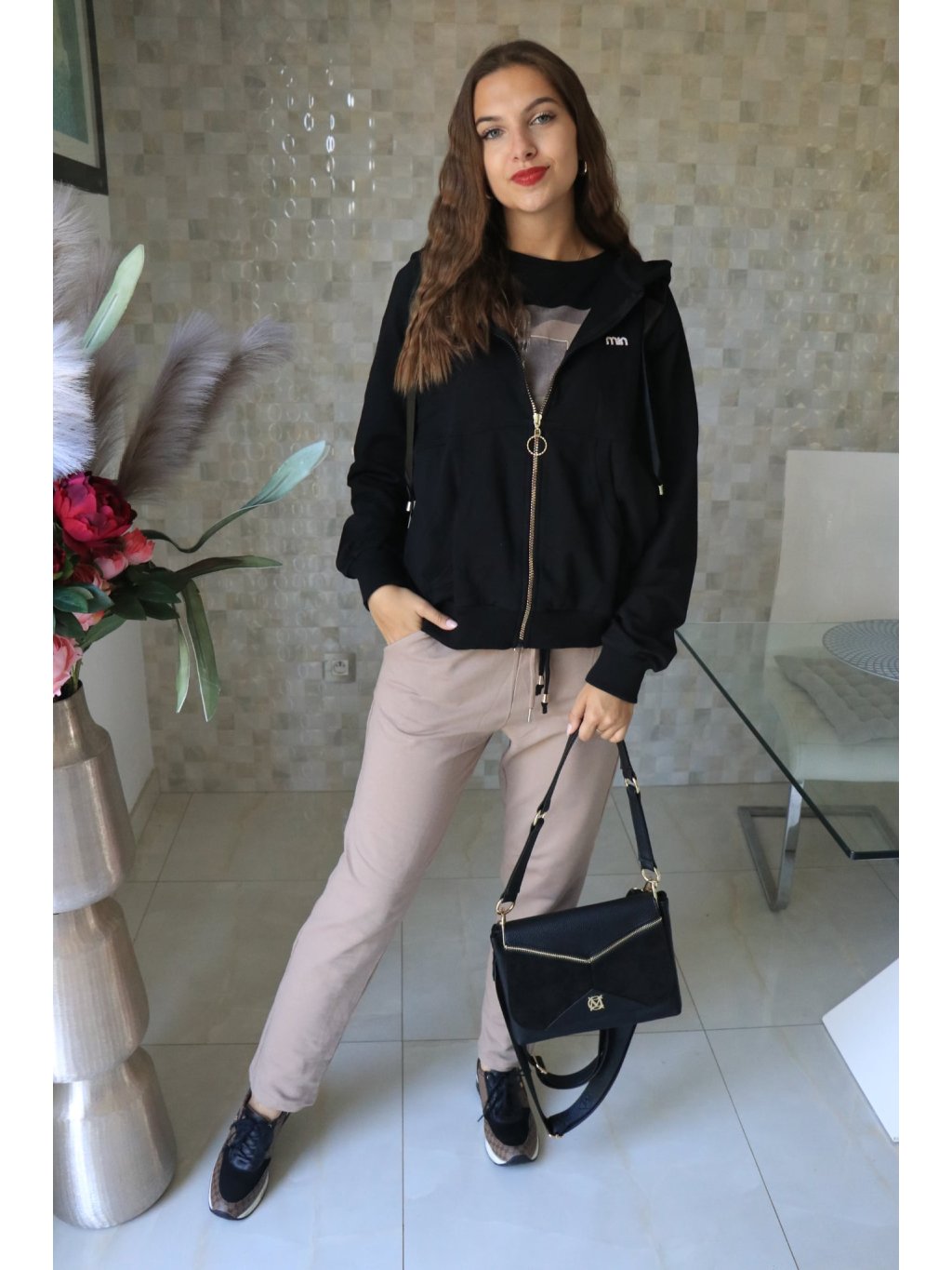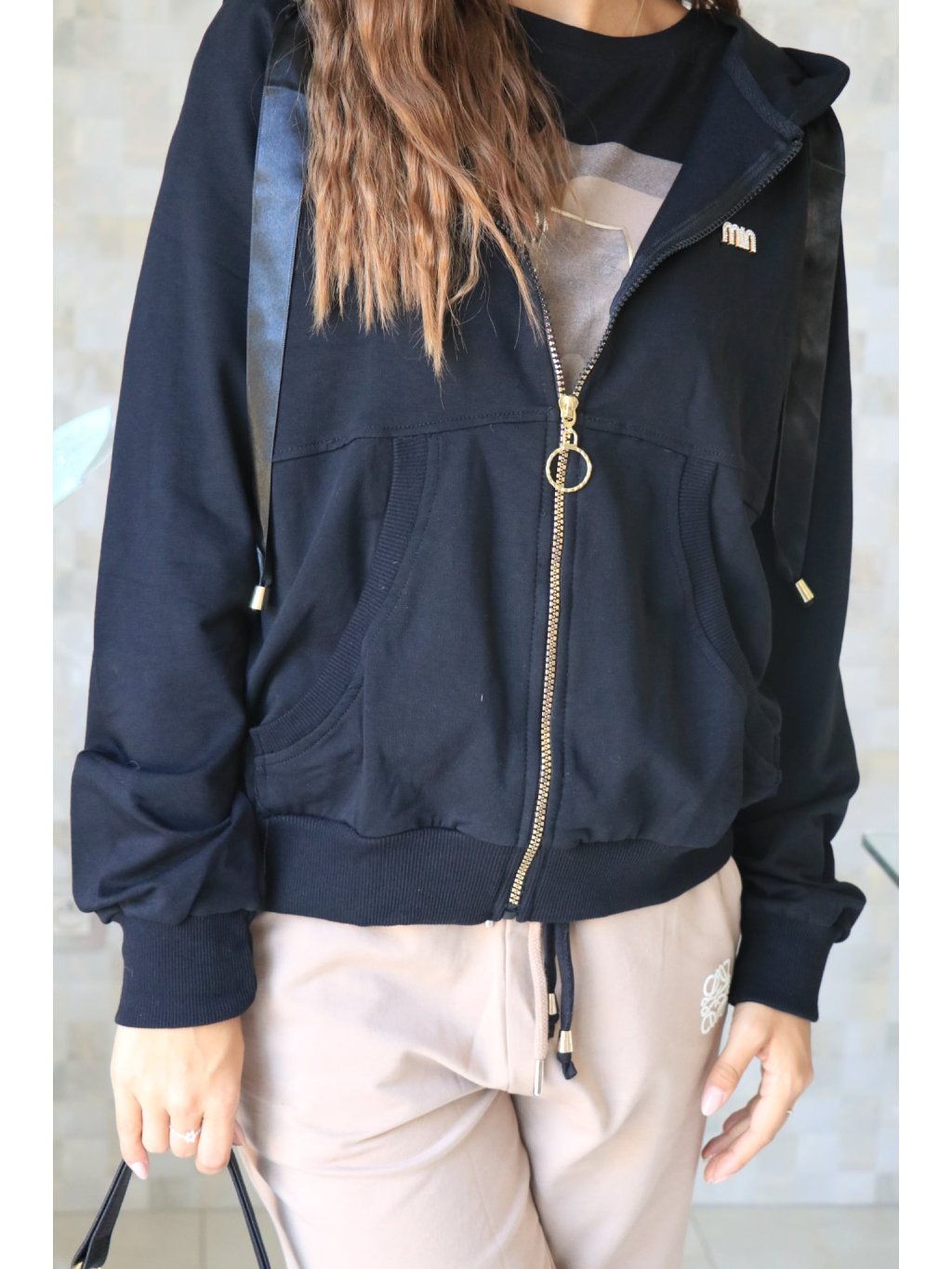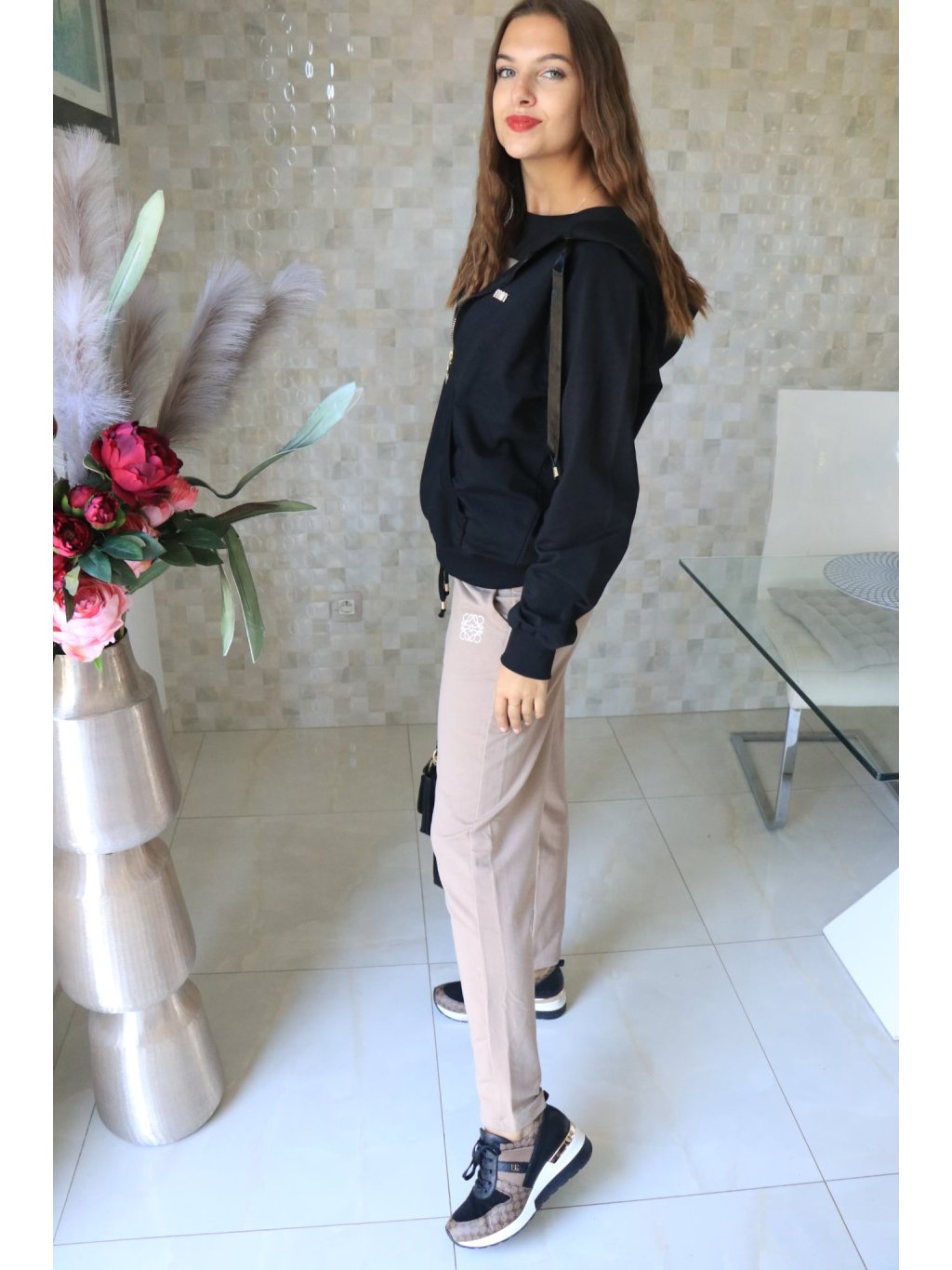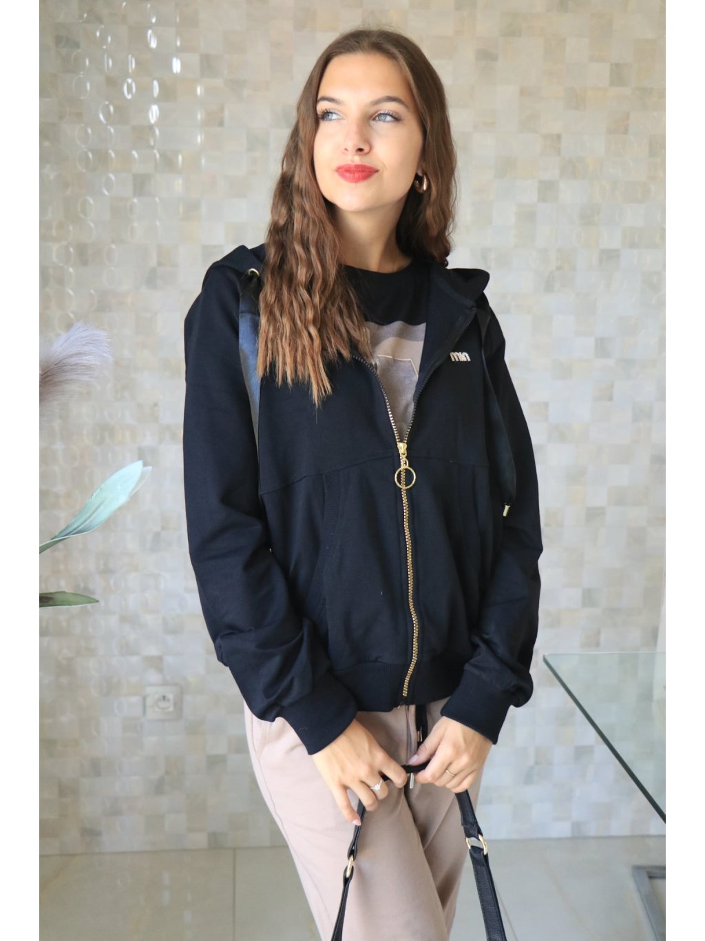Černá podzimní mikina s jemným zlatým kovem — sofistikovaná & pohodlná ✨