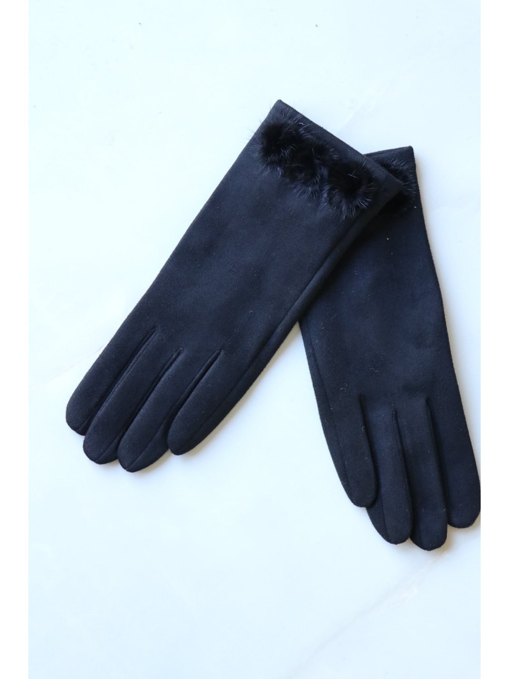 # 🖤 Černé rukavice se třemi bambulkami kožešinky