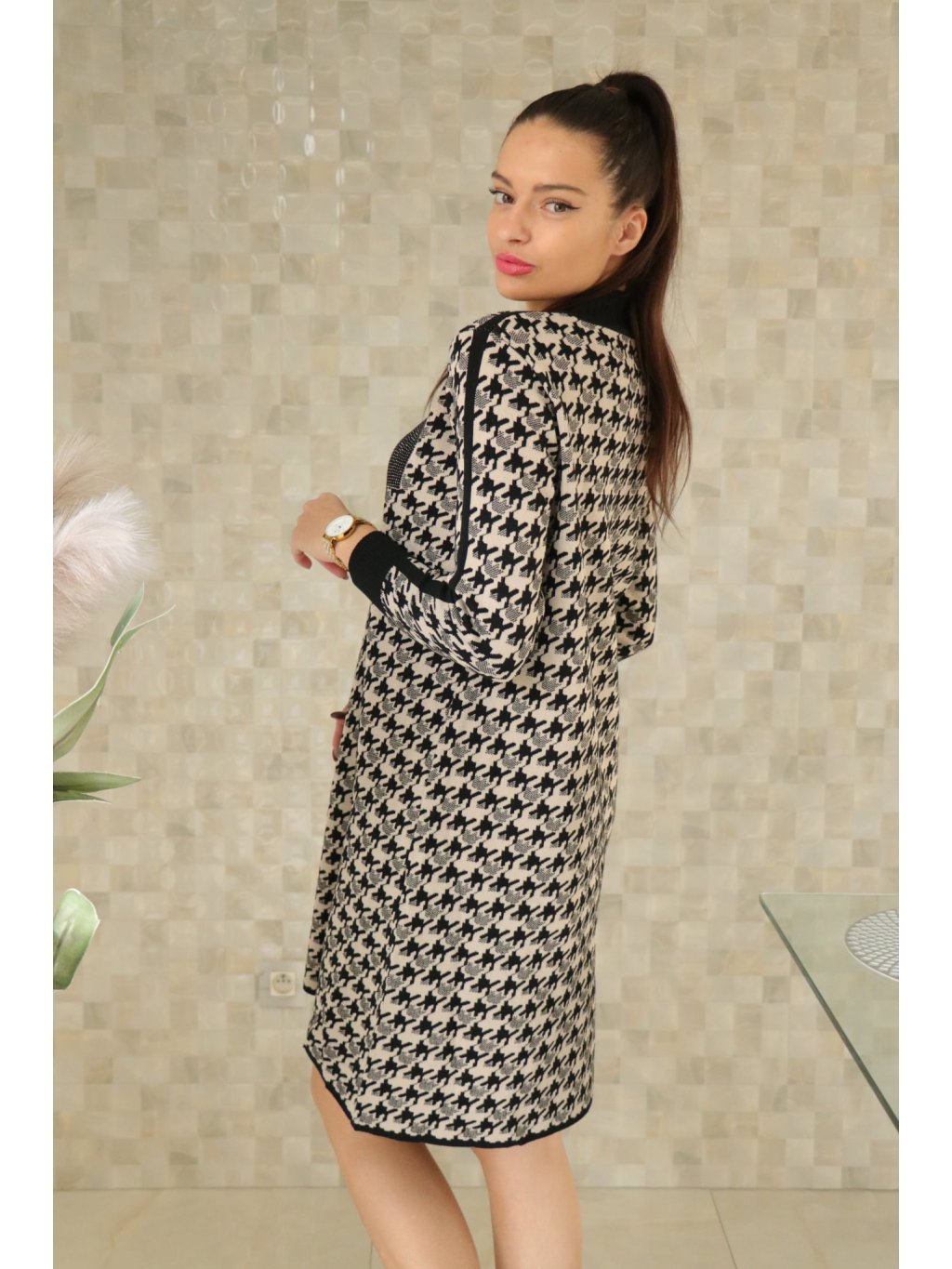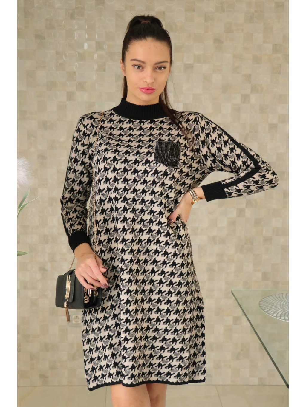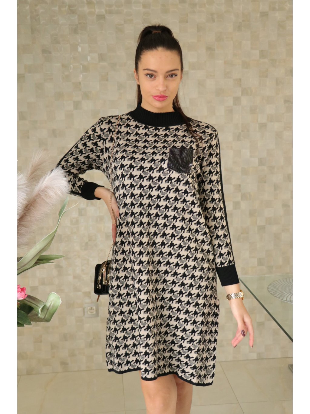 # 🖤 Černé šaty s kamínky a vzorem kohoutí stopa
