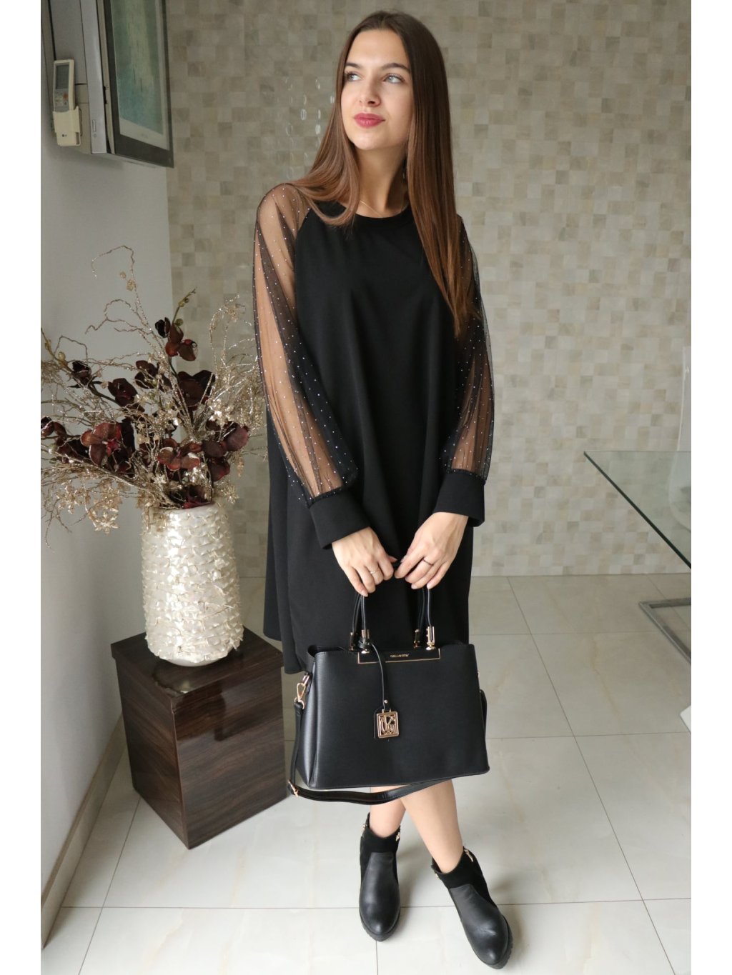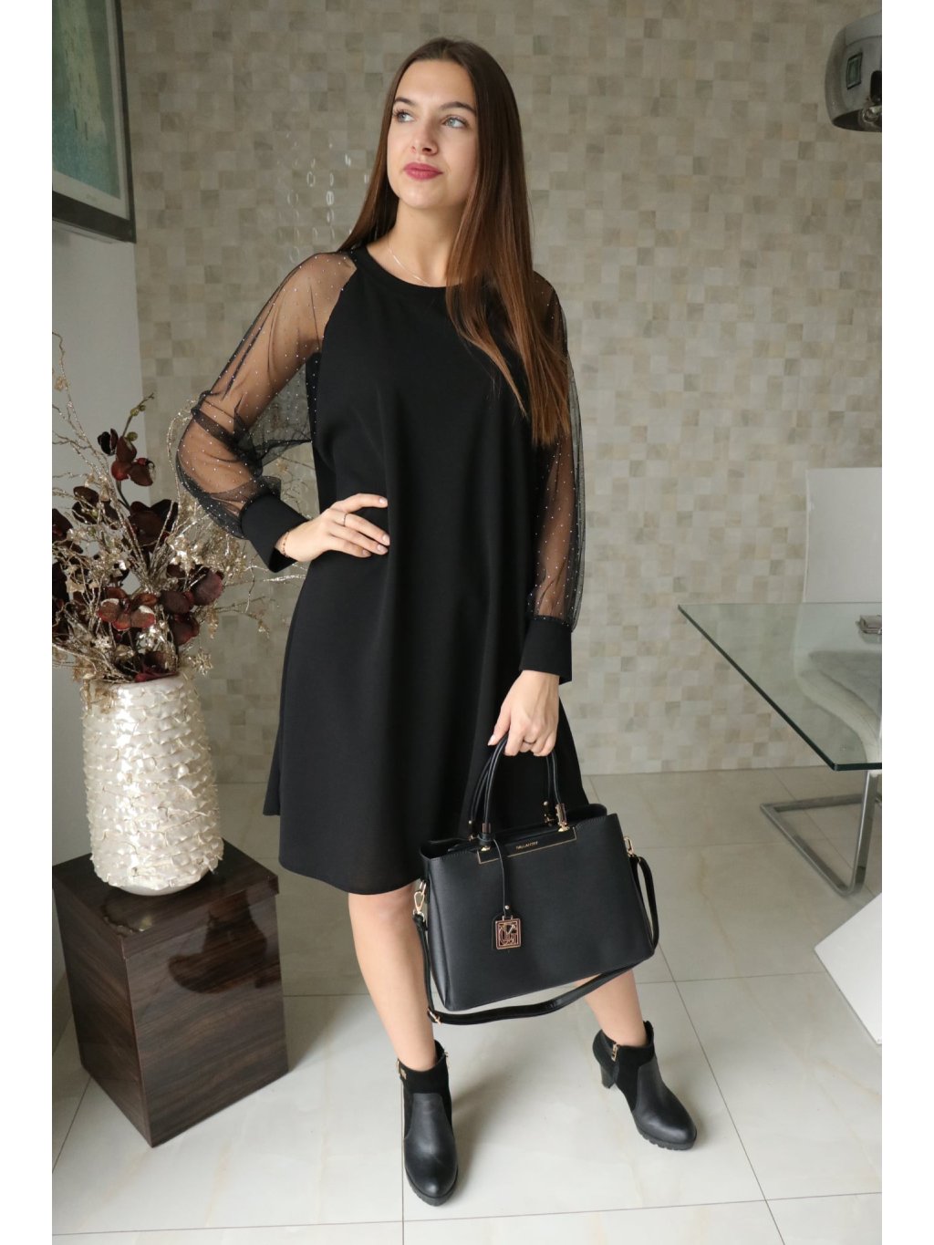 Černé šaty se síťovanými rukávy a kamínky vel. UNI