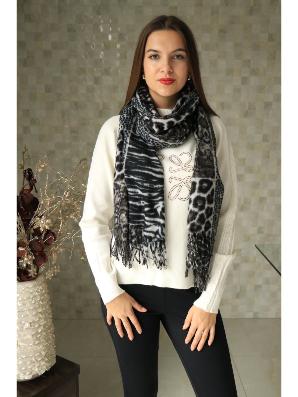 # Černošedý šátek teplý s leopardím vzorem a zebrou