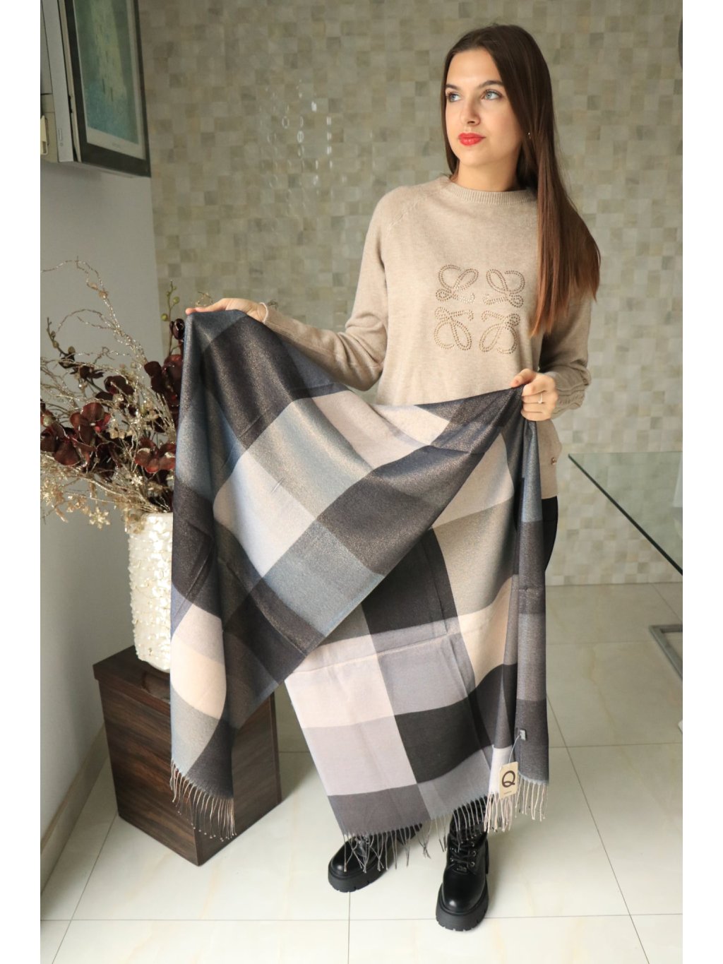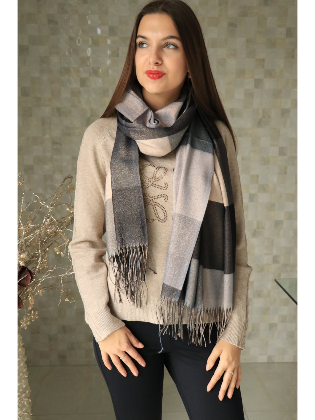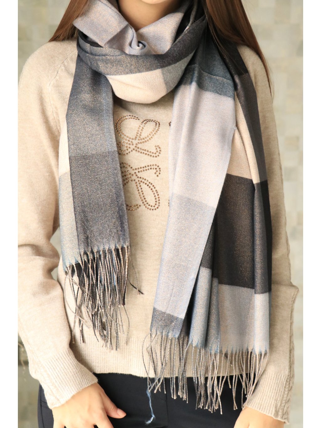 ✨ **Elegantní kostkovaný šátek** v kombinaci černé barvy s třpytivým lurexem