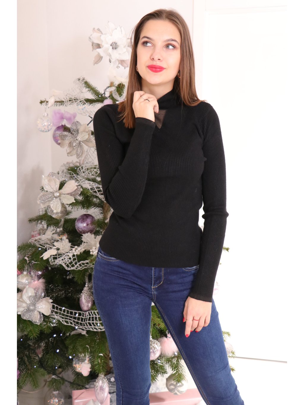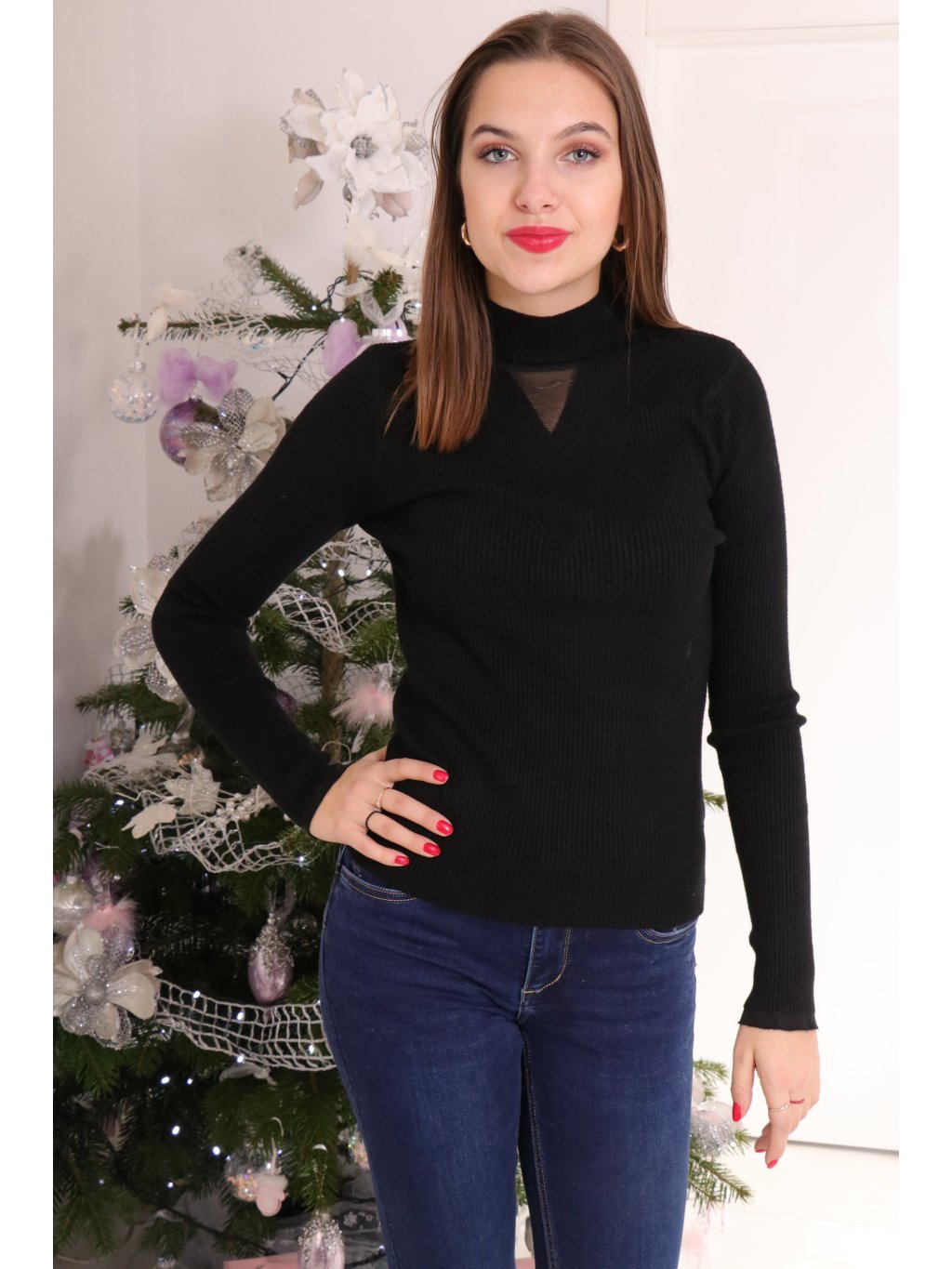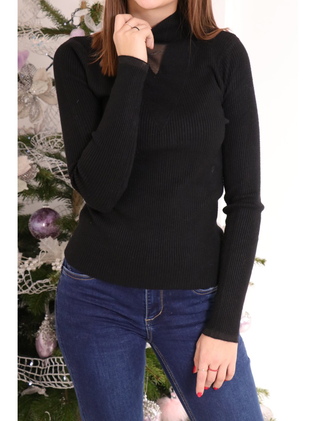 Sofistikovaný černý roláček s módním síťovaným detailem, který dodává klasickému kousku jedinečný nádech.