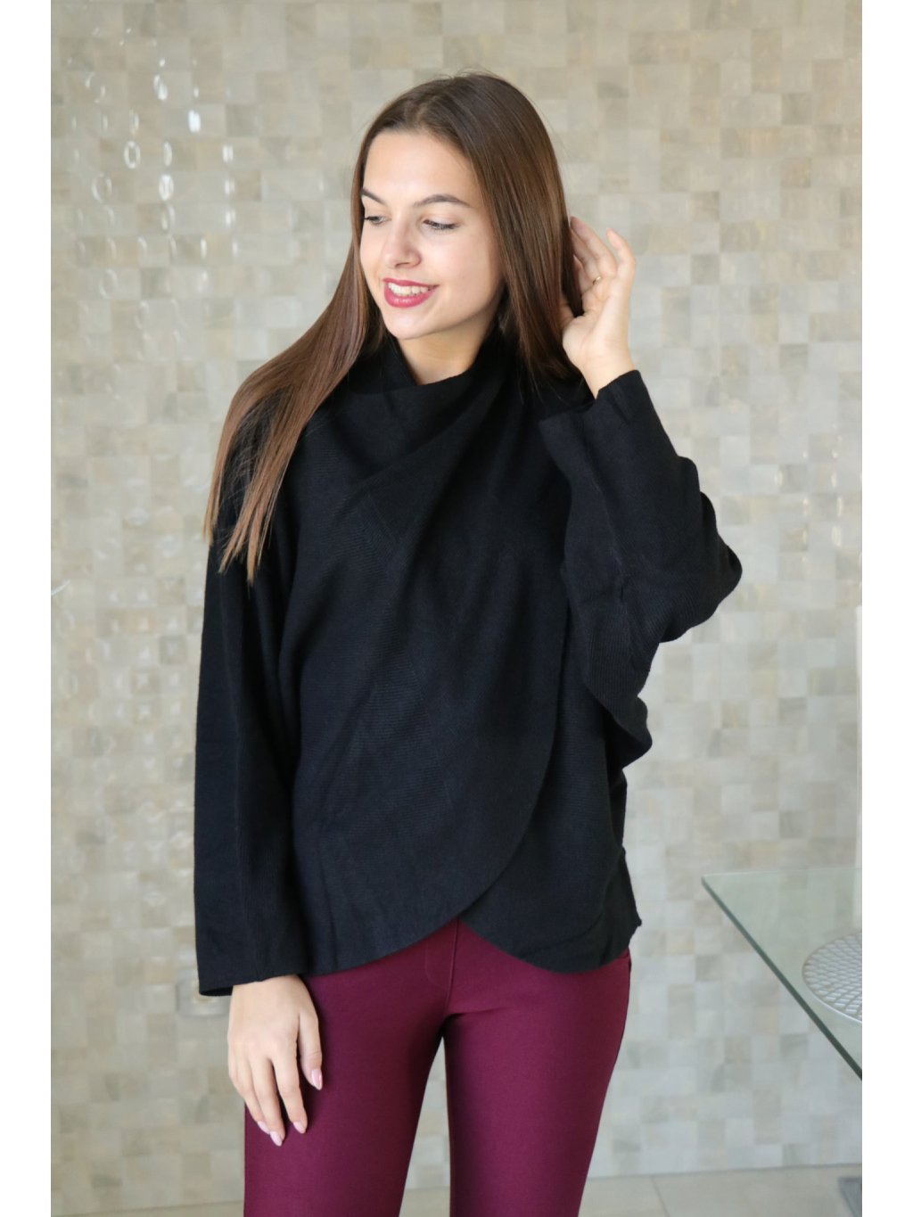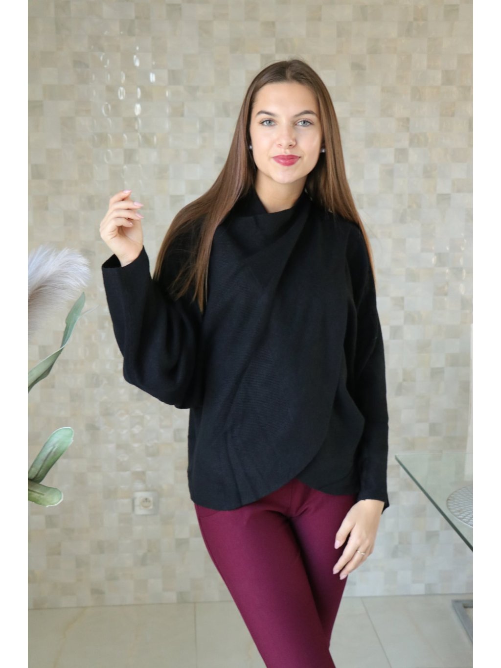 # Černý svetr překřížený s netopýřím rukávem 🖤