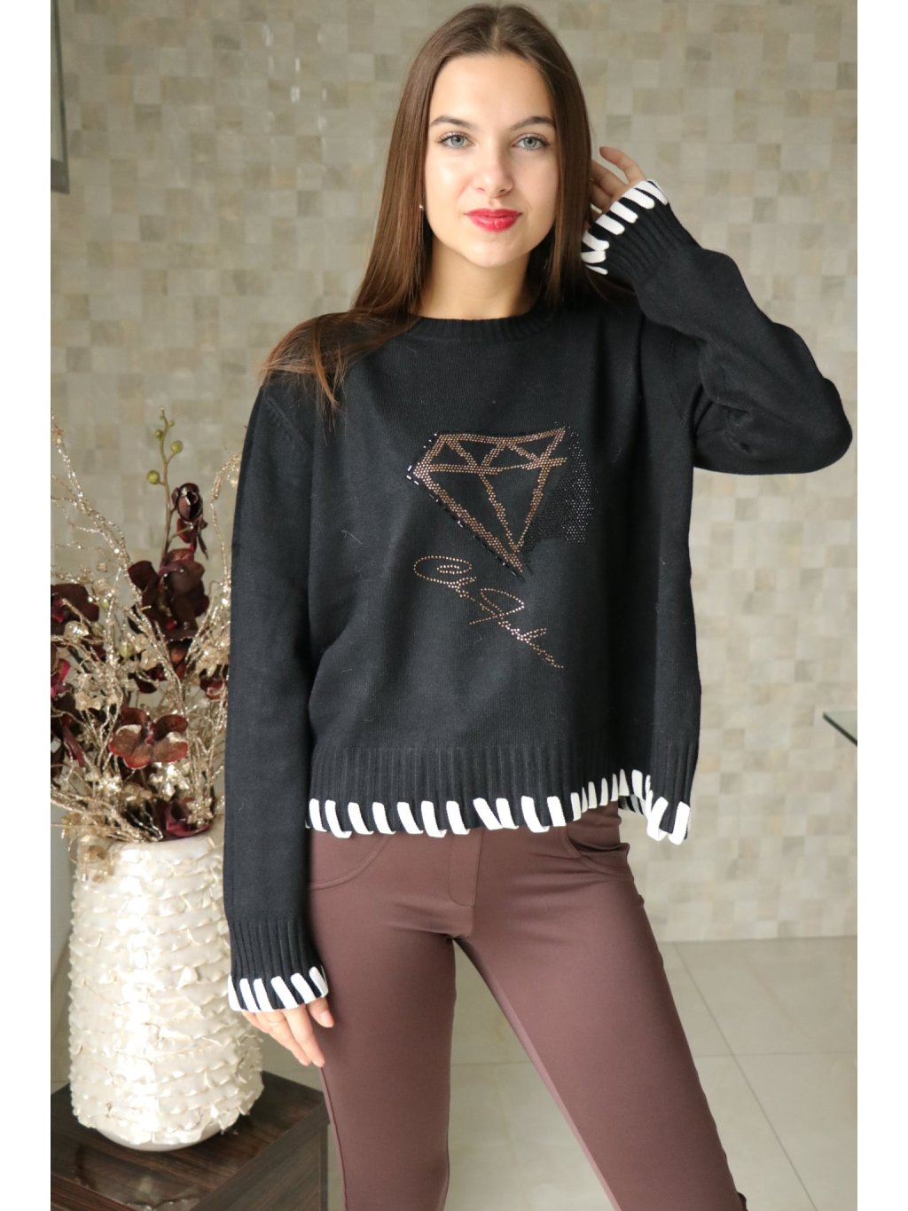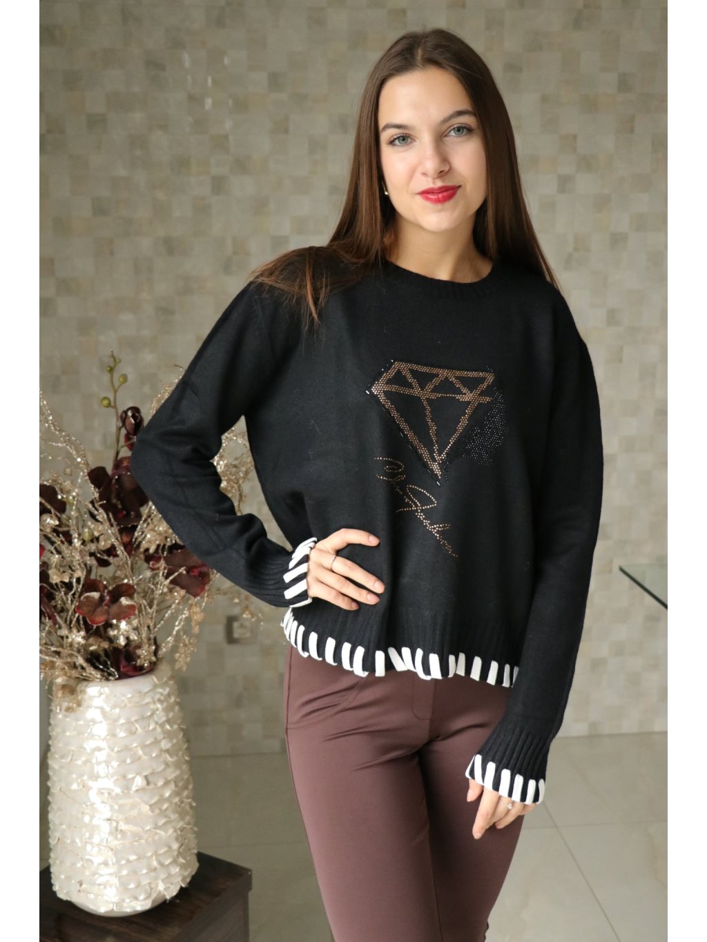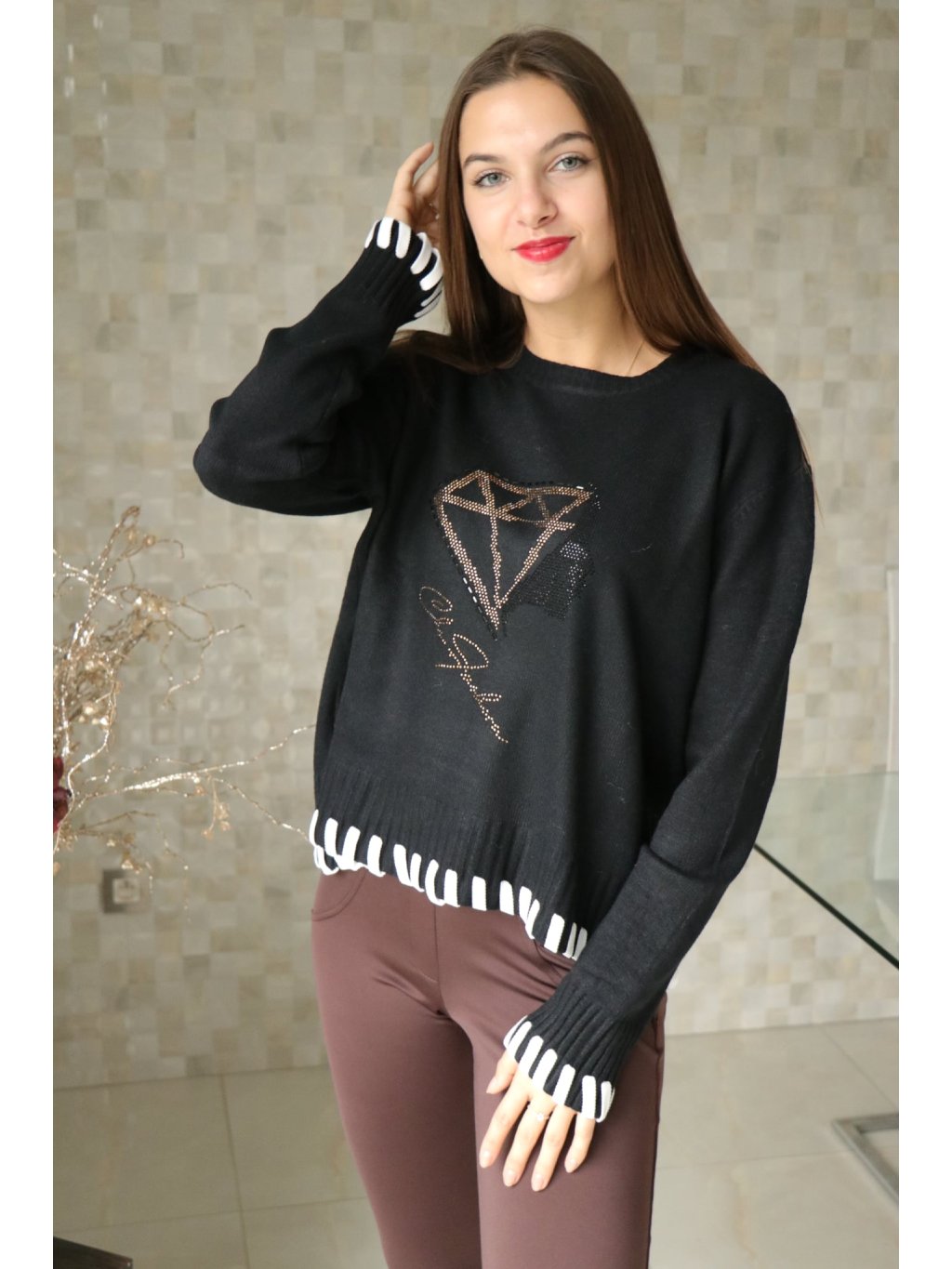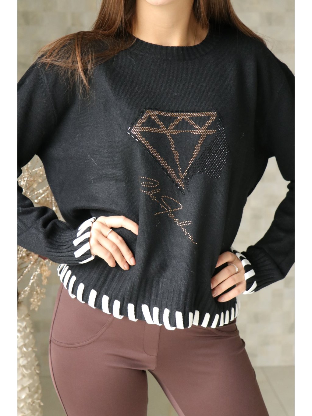 ✨ **Třpytivý diamant** - elegantní aplikace z kamínků ve tvaru diamantu dodává svetru luxusní vzhled