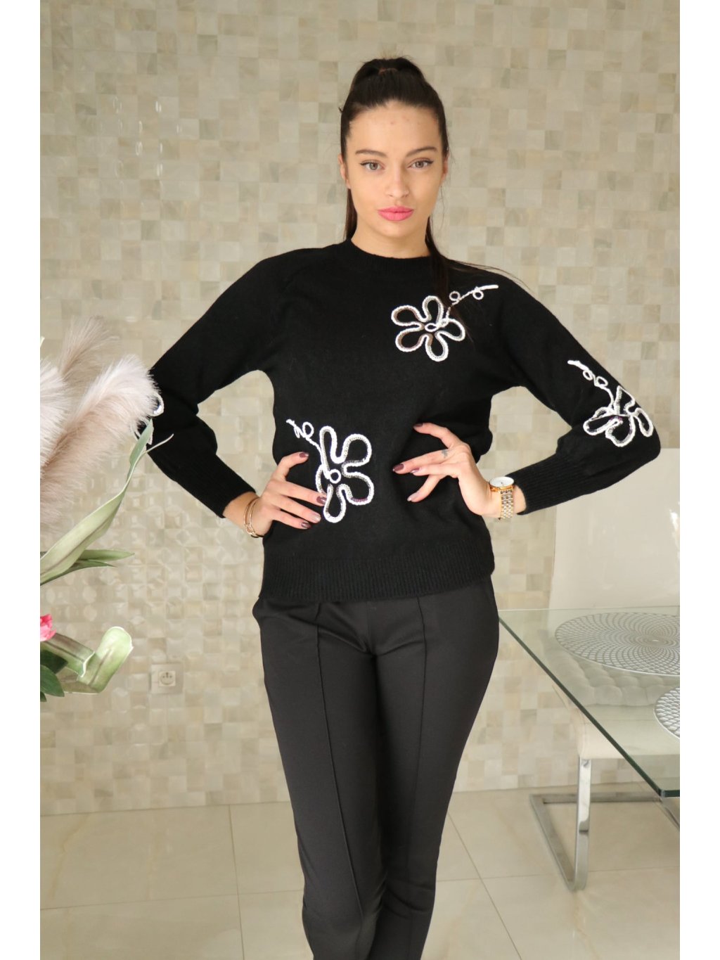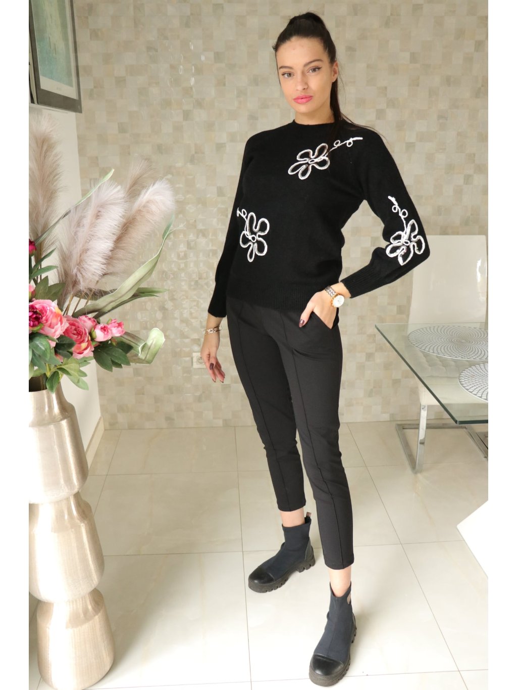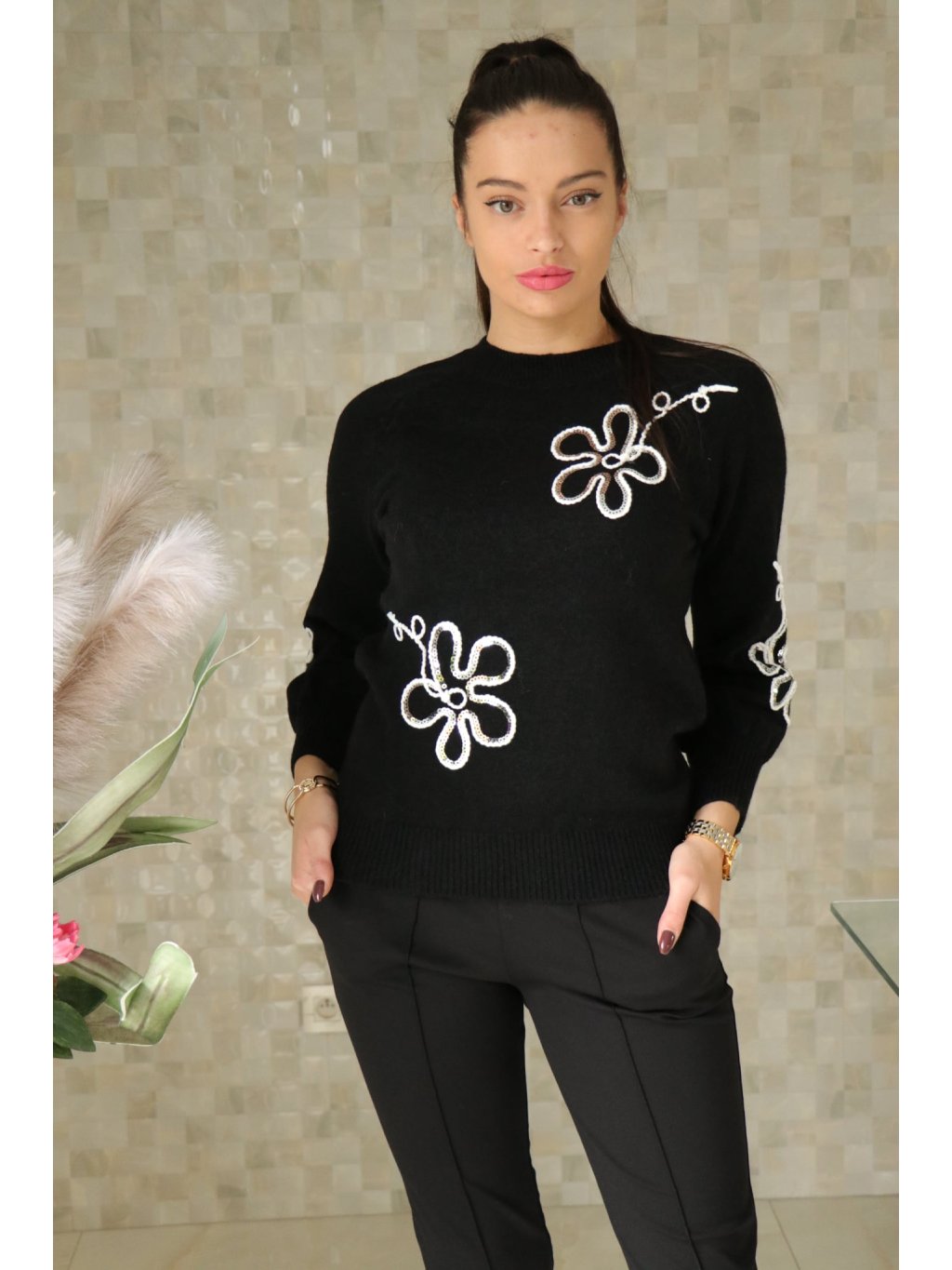 # 🖤 Černý svetr s bílými kytkami a flitry