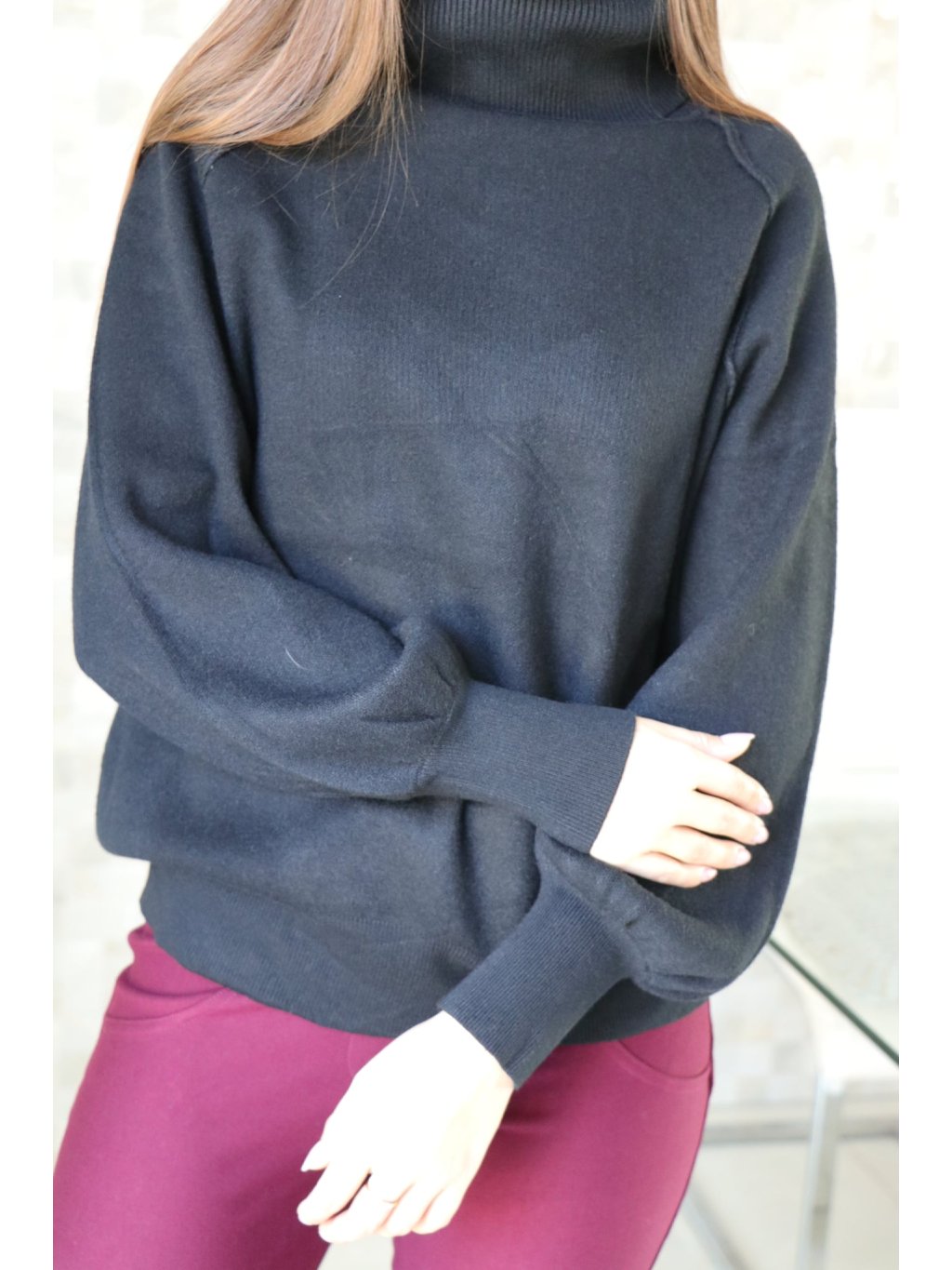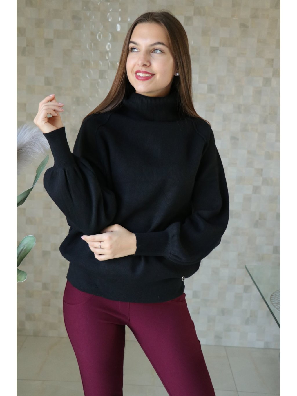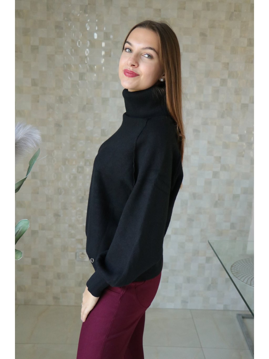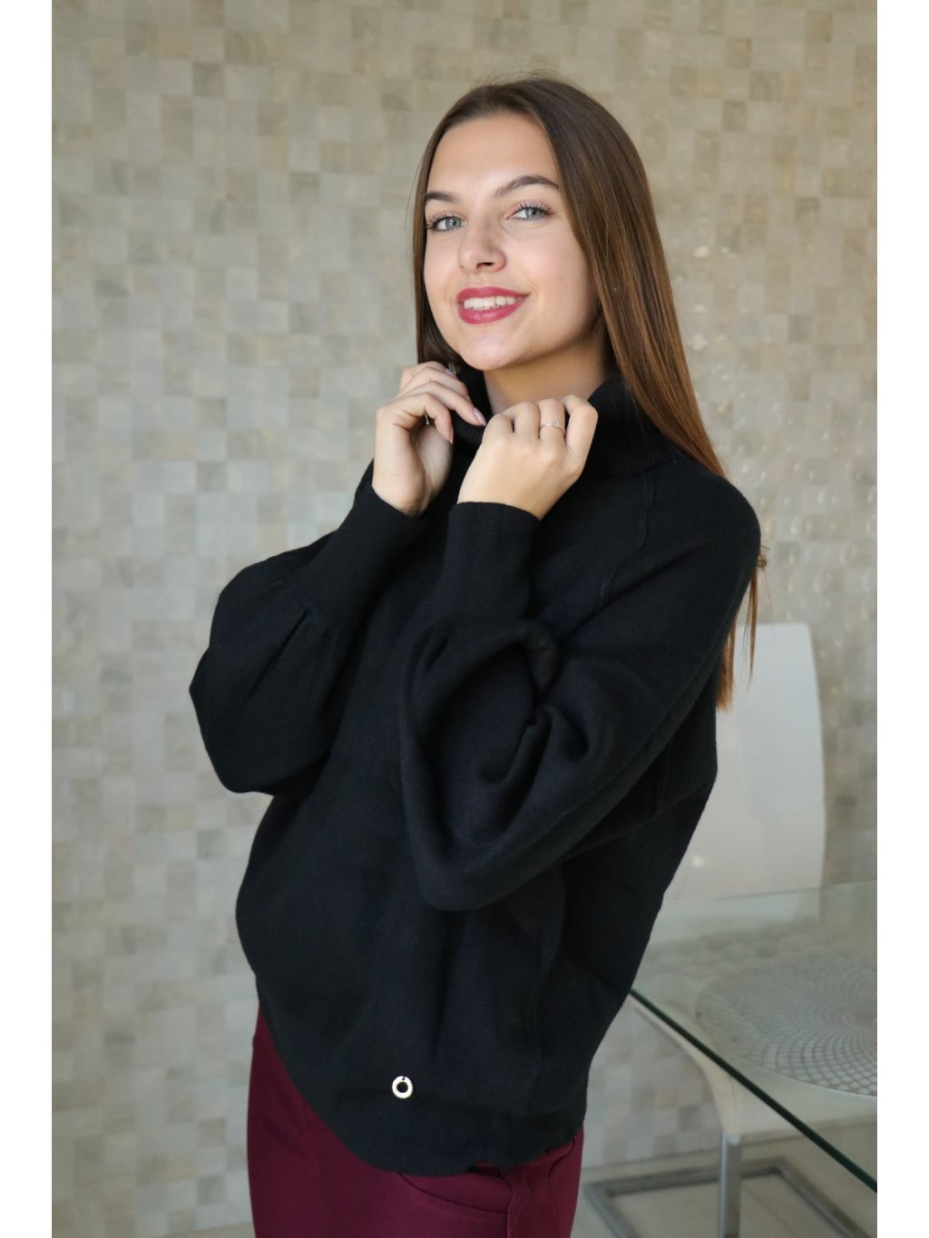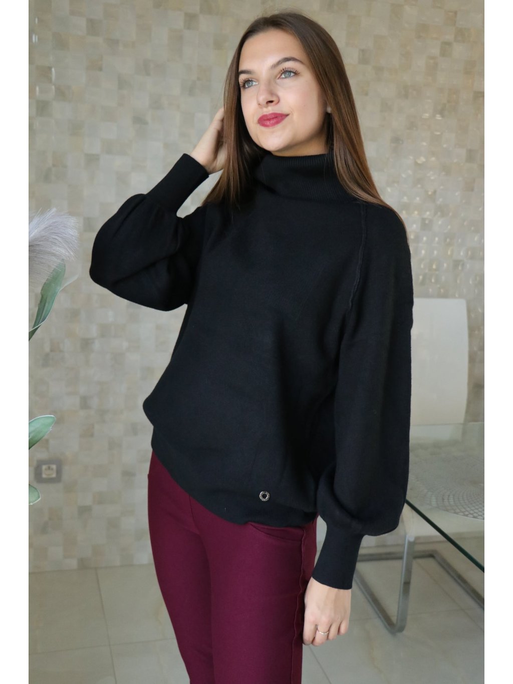 Černý svetr s límcem a spojem u rukávů vel. UNI
