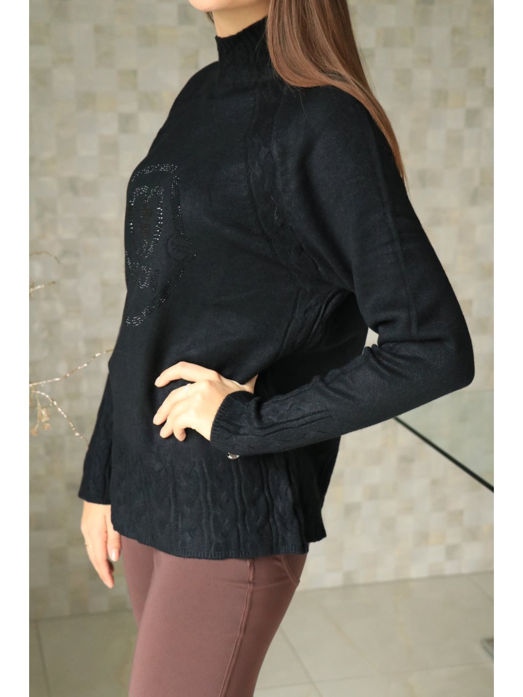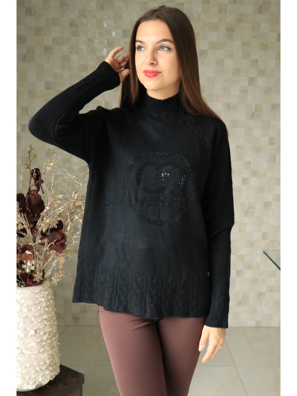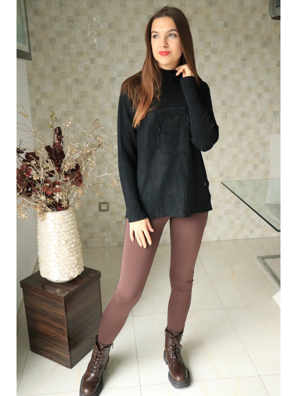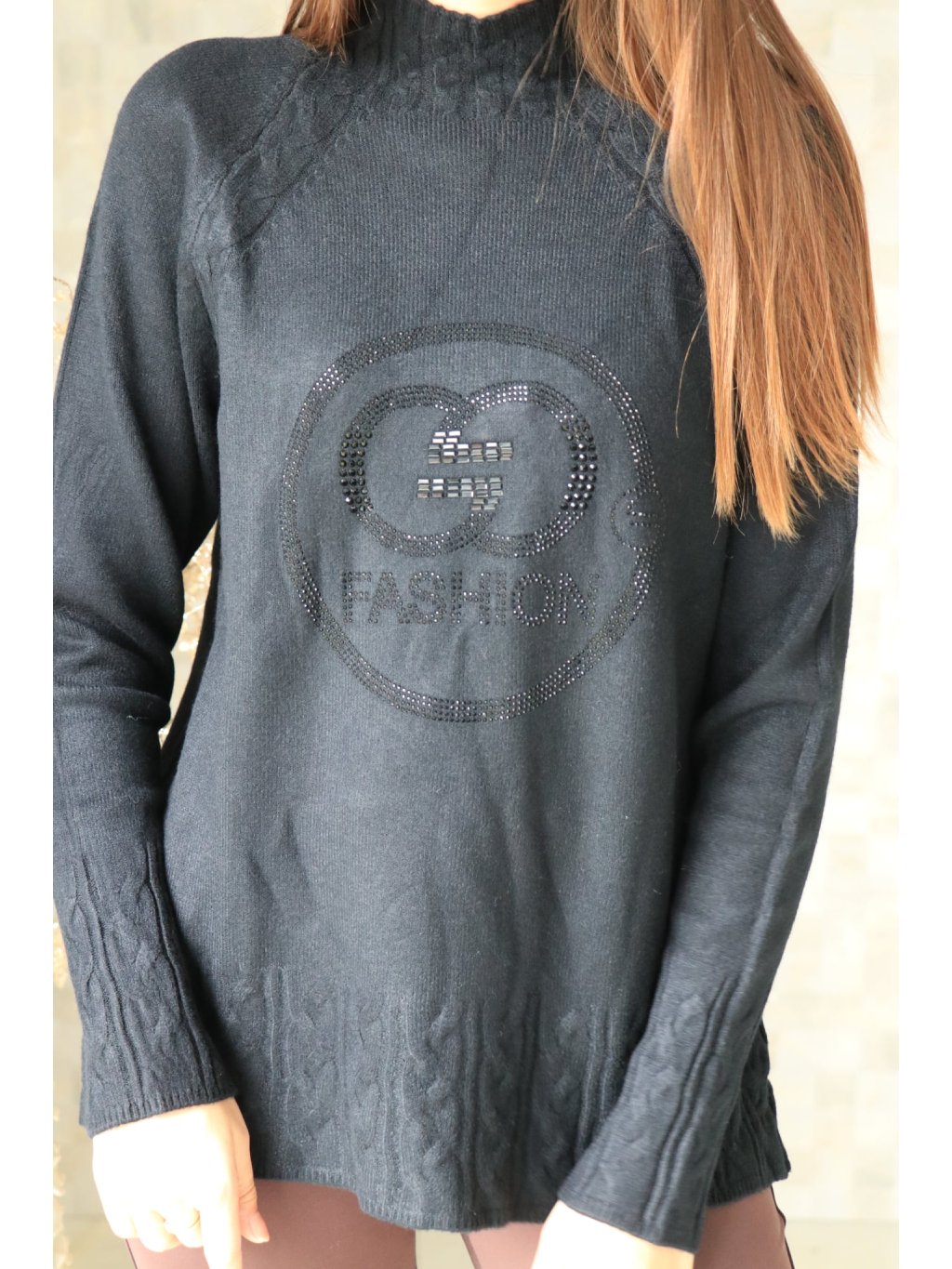 # Černý svetr se stojáčkem lemovaný GG Fashion