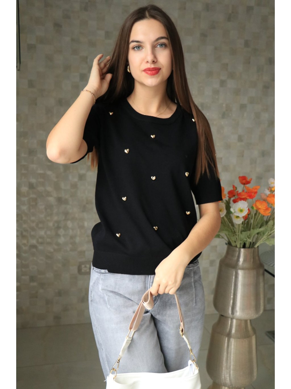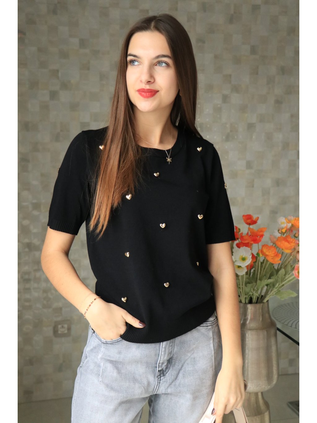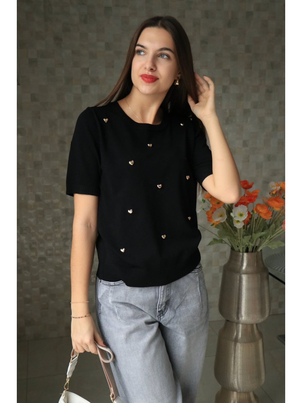 🖤✨ Černý svetřík se srdíčky – hravý a elegantní ✨🖤