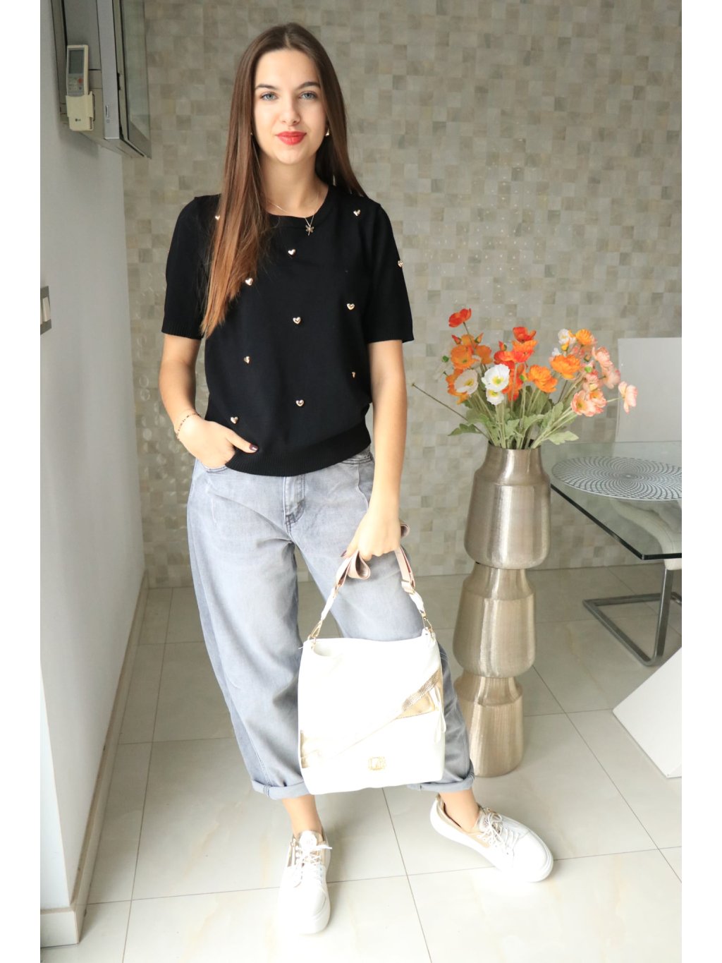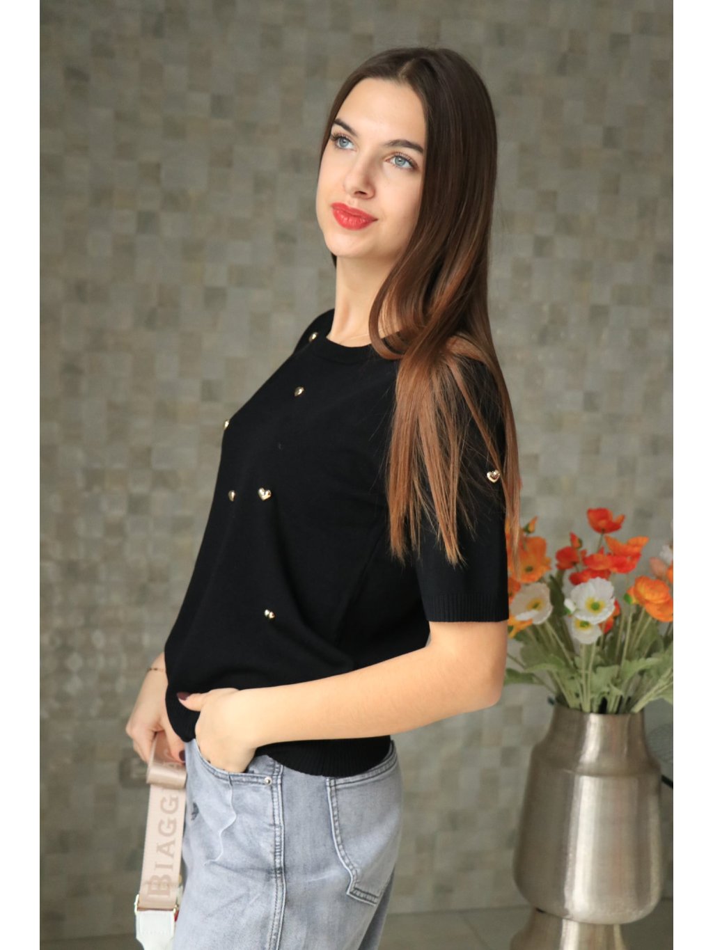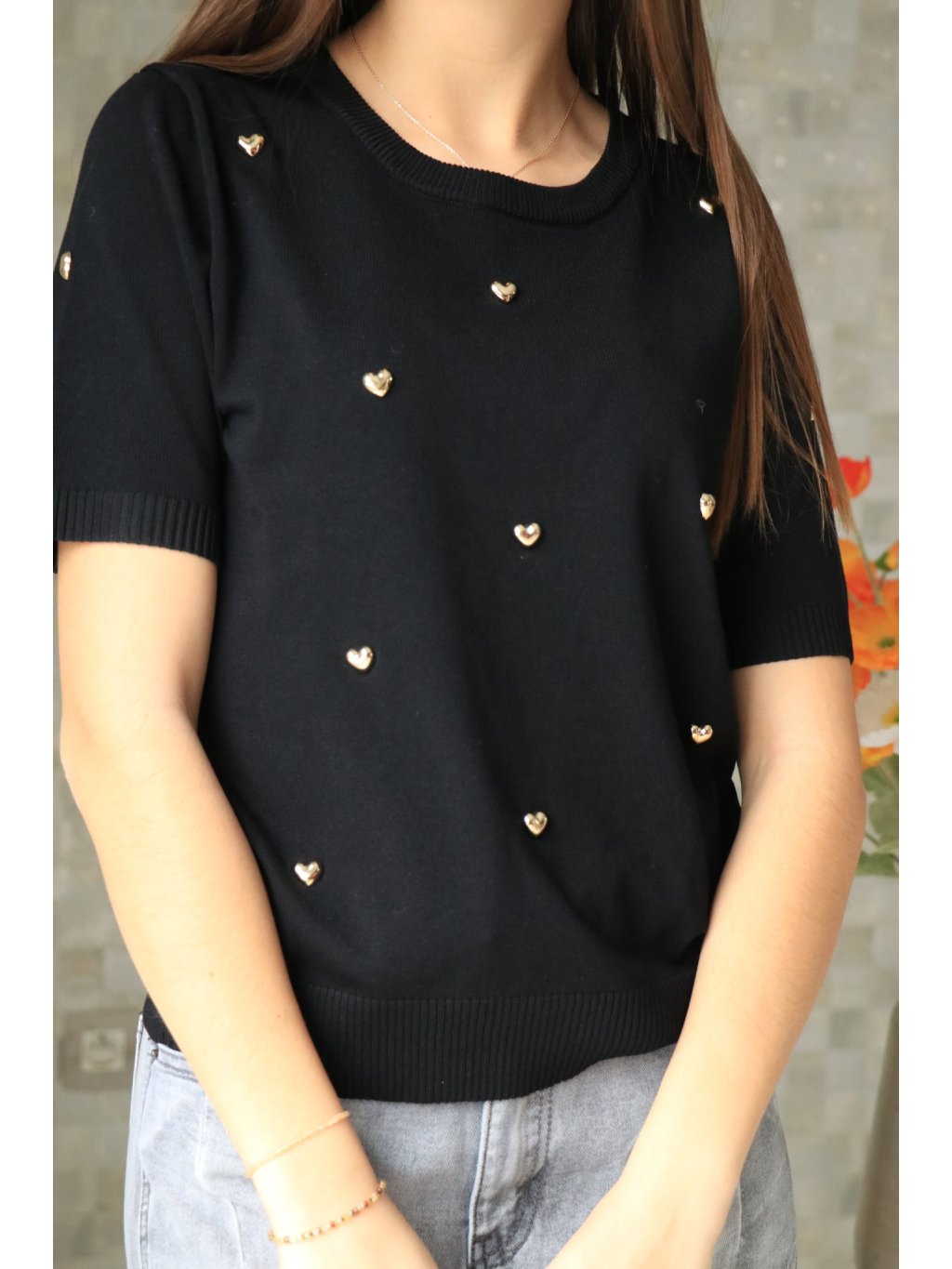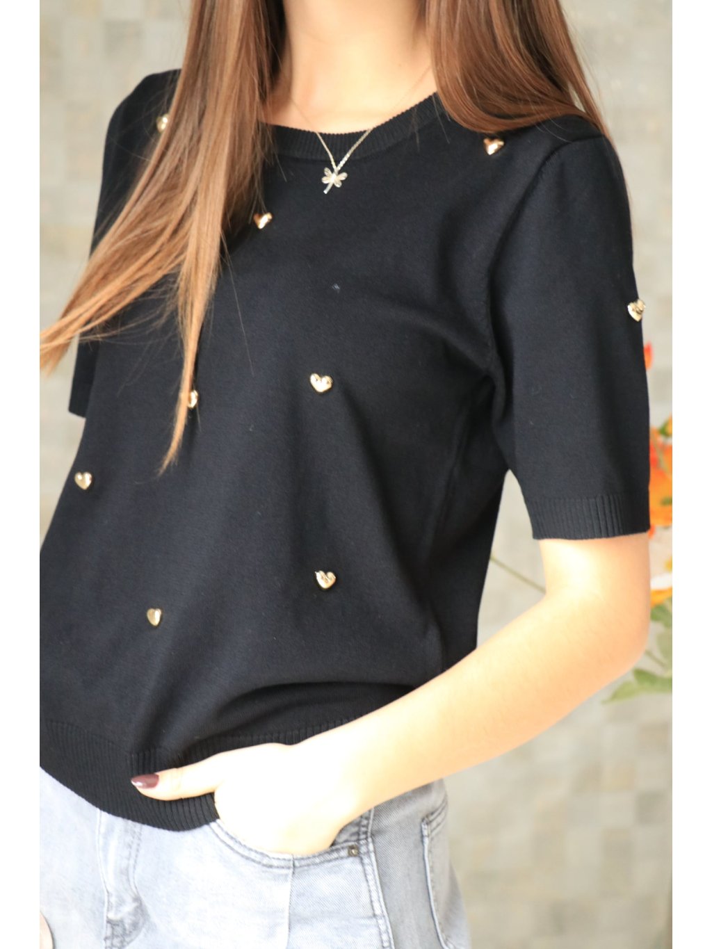 🖤✨ Černý svetřík se srdíčky – hravý a elegantní ✨🖤