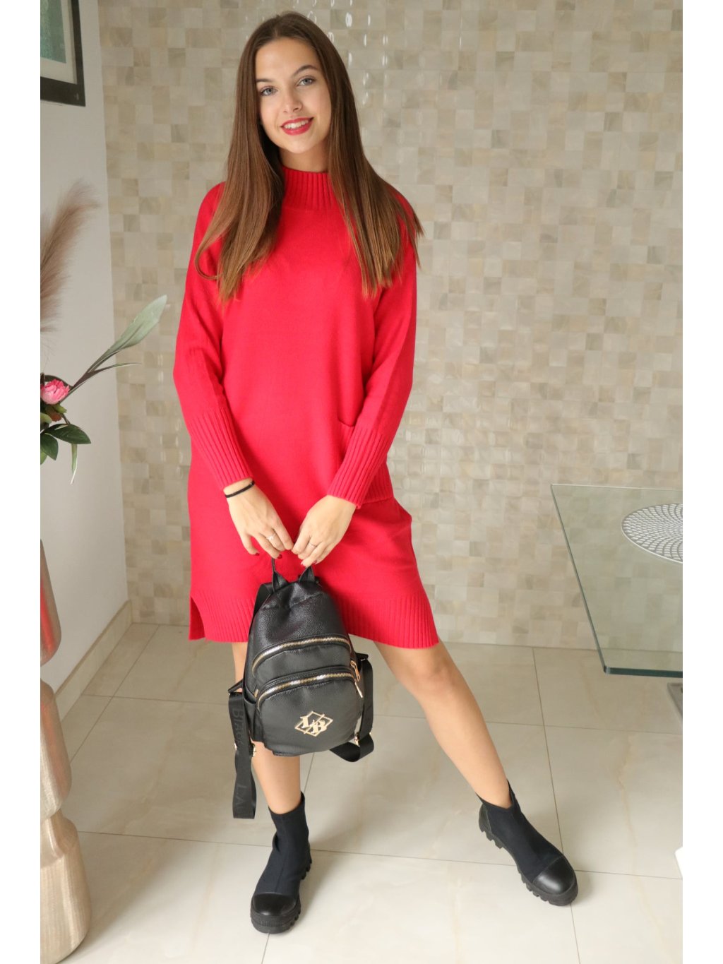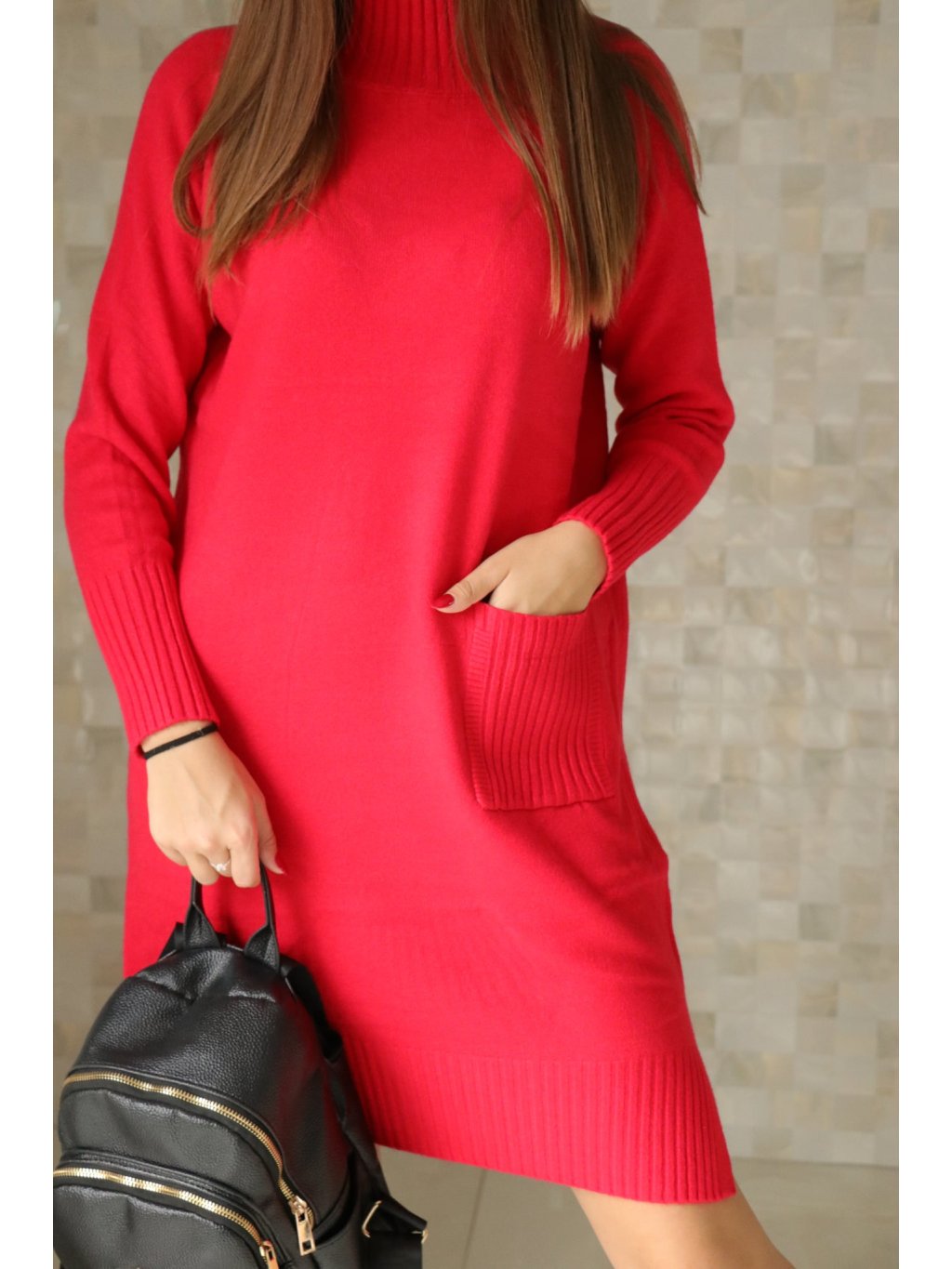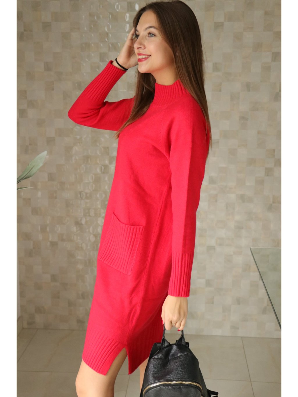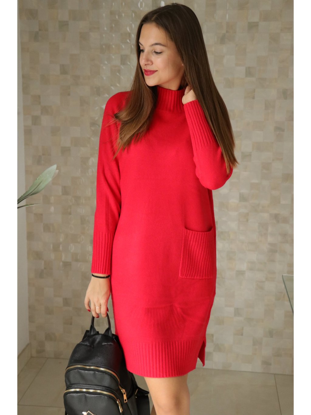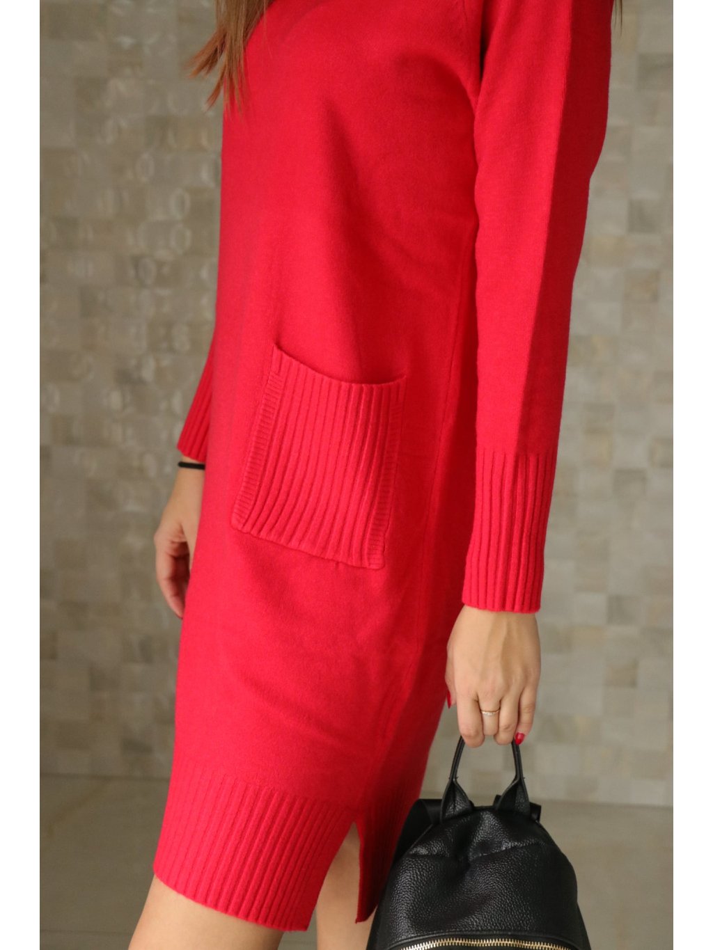 Červené svetrové šaty s kapsičkou s rozparky vel. UNI